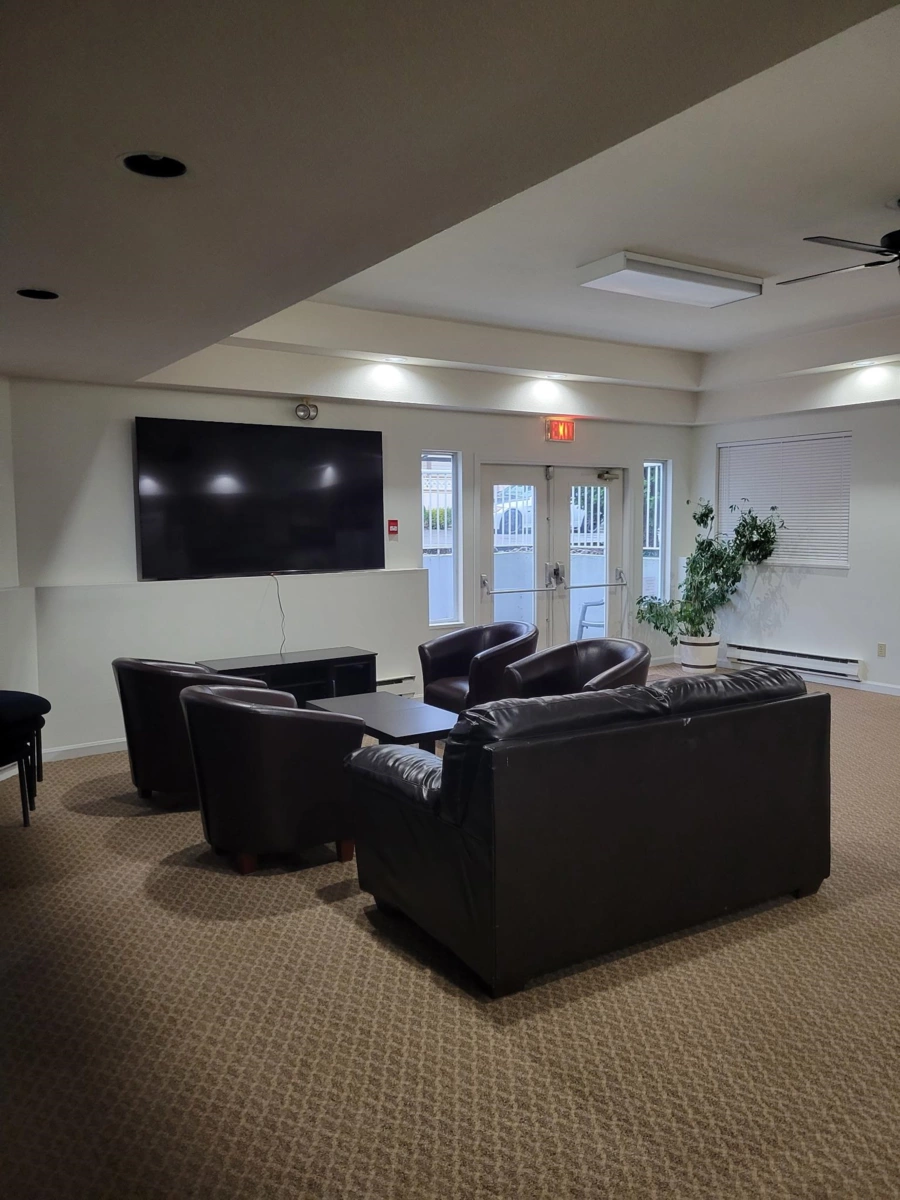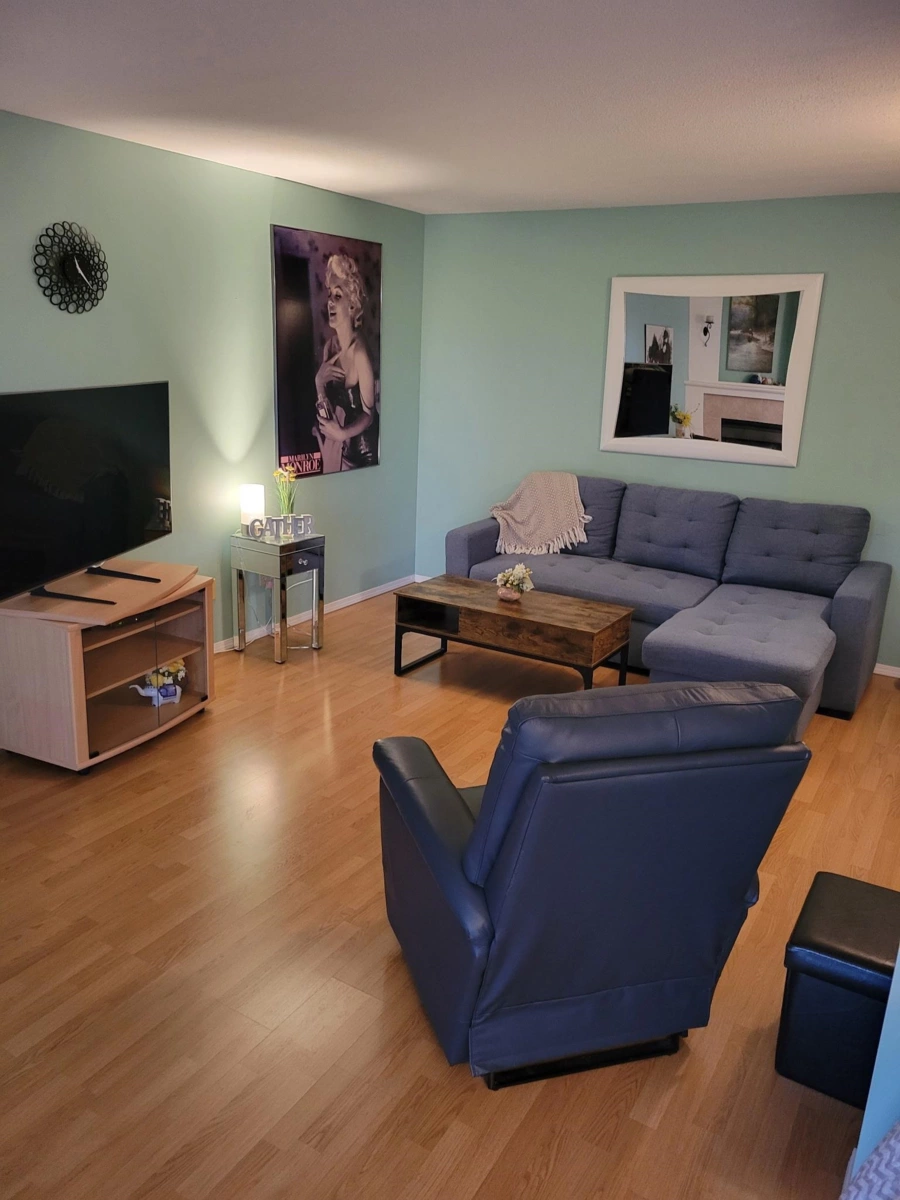 Top Floor Mountain View Bright Very spacious open plan one bed and den with new flooring, ensuite laundry, large main bed with semi ensuite full bathroom. Gated complex with common rec room, hot tub, outdoor pool and lots visitor parking. Central location close to shopping and transit.