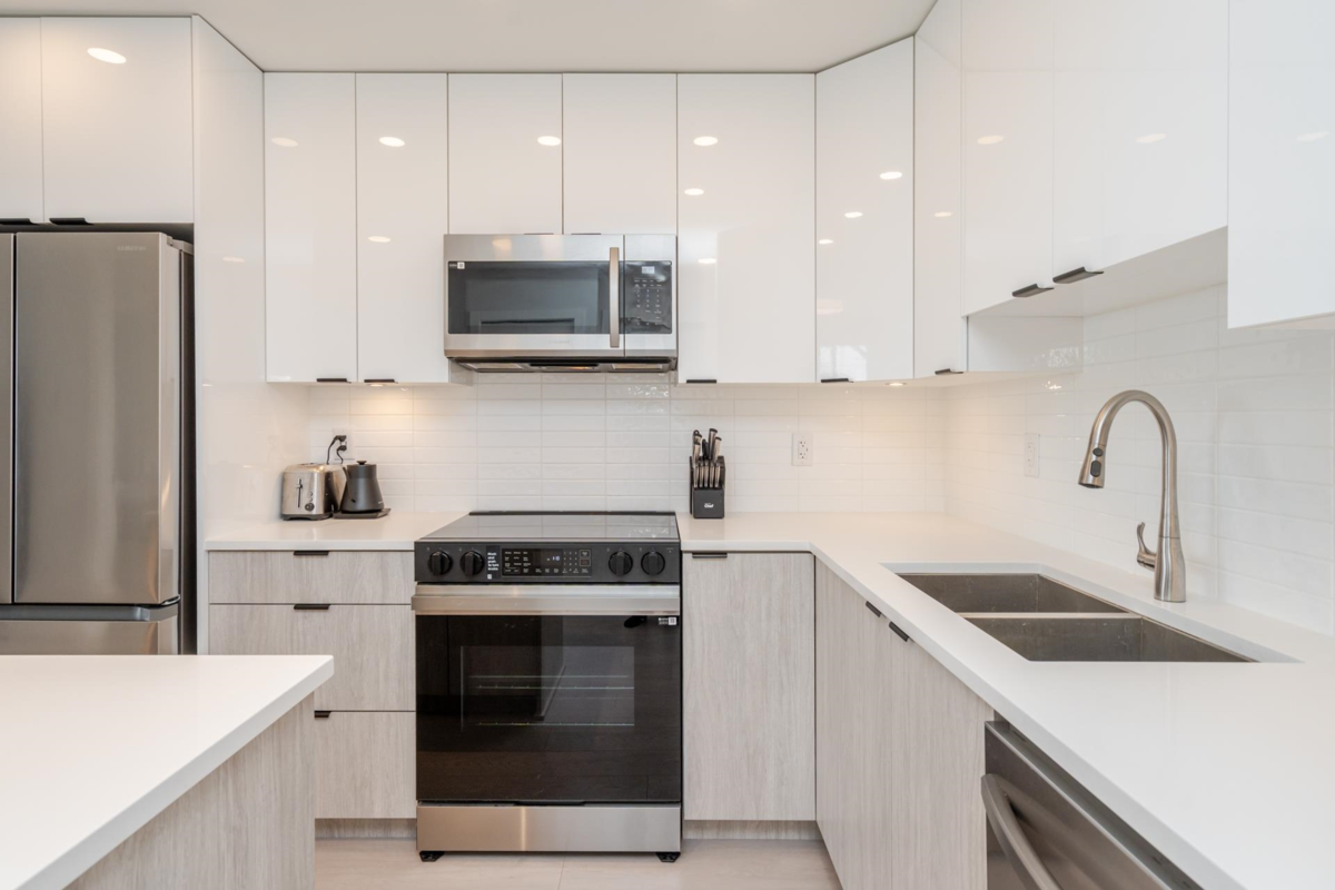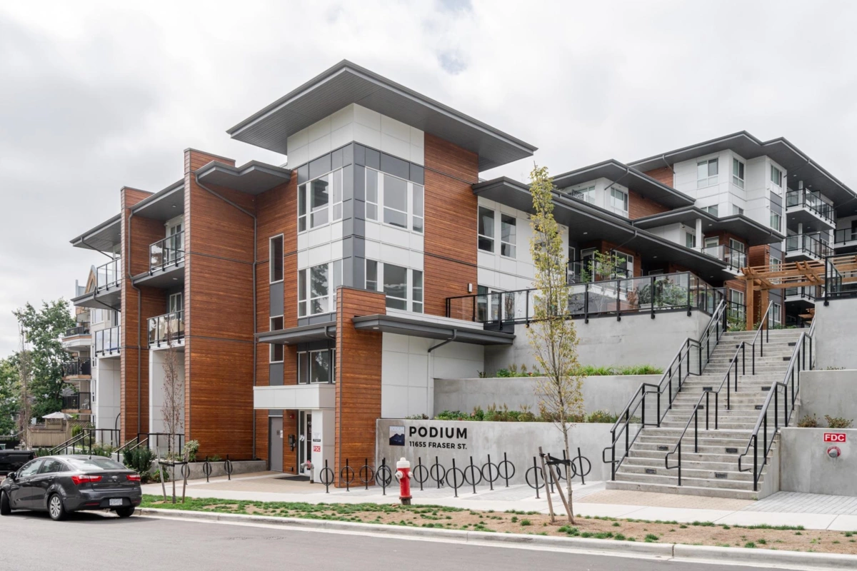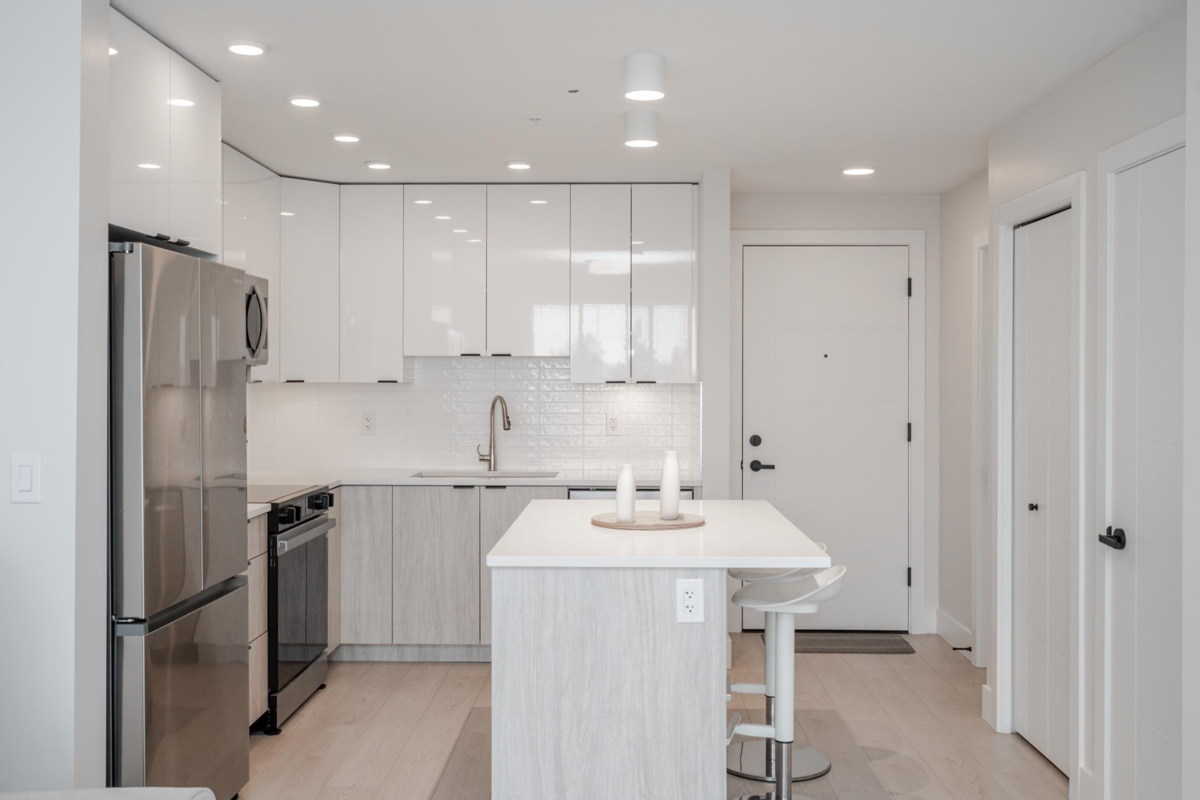 Welcome to PODIUM in Maple Ridge, built in 2024 by Whitetail Homes. This modern 1 bed, 1 bath home features a stylish two-tone kitchen with ceiling-height cabinets, quartz counters, sleek stainless-steel appliances, and an eat-up island. The light-filled living and dining area opens to a south-facing balcony, perfect for relaxing or entertaining. The bedroom includes a walk-through closet with custom shelving and access to a cheater ensuite. Amenities include a fully equipped gym, playground, 1 secure parking spot, and storage locker. Fantastic location close to the Fraser River, scenic walks, parks, restaurants, shopping, and all the essentials right at your doorstep.