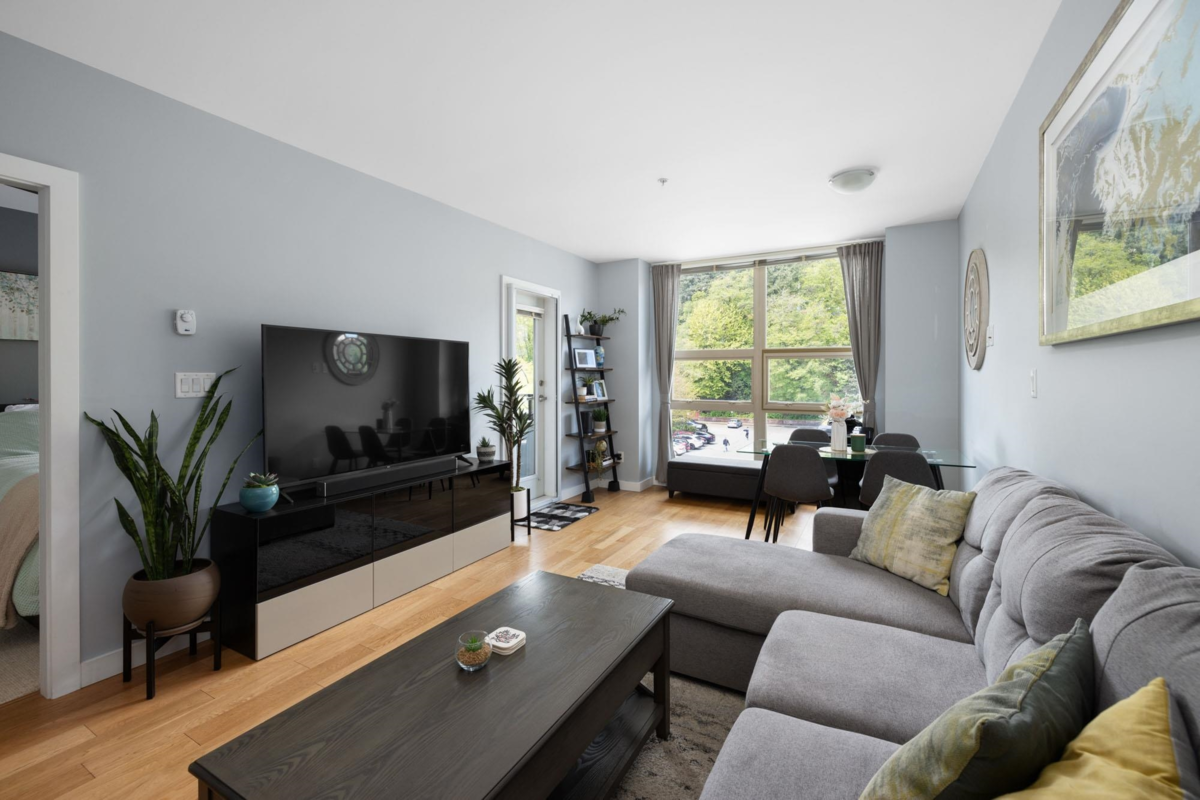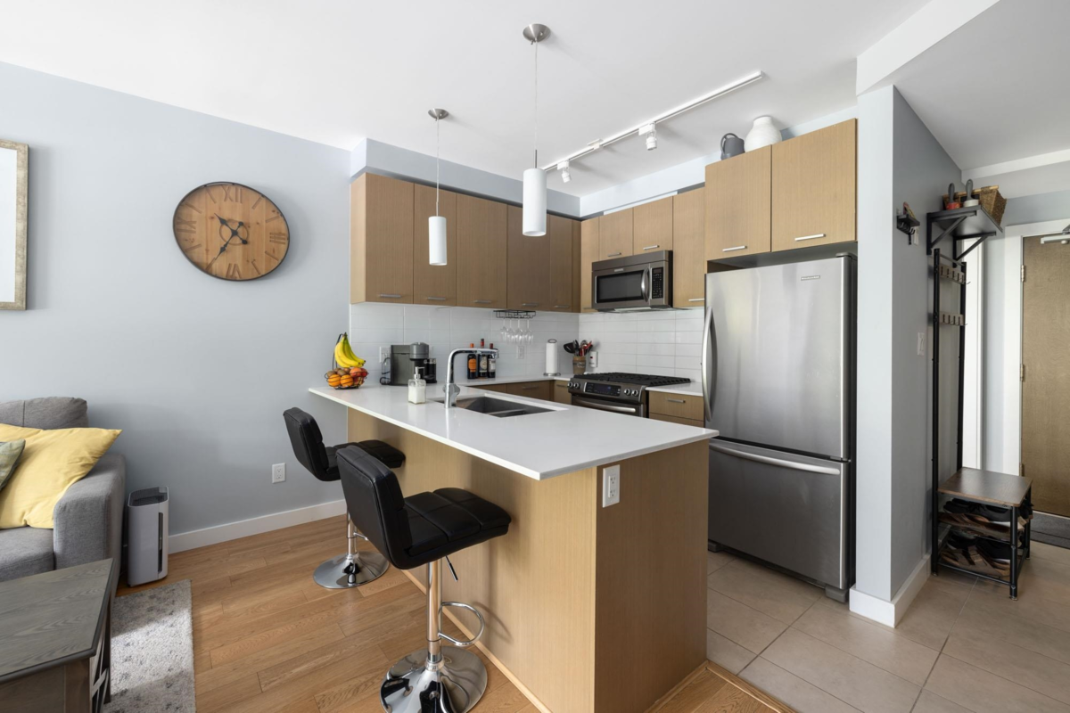 This unique home, influenced by the charm of the West Coast is situated in the heart of North Vancouver, featuring one bedroom plus a den and an expansive balcony, perfect for entertaining. With a smart layout spanning over 685 square feet indoors and 124 square feet outdoors, it offers ample space. Highlights include engineered oak hardwood floors, durable stone countertops, high-quality KitchenAid stainless steel appliances including a gas range, a spacious den, and a sizable walk-in closet. The Drive complex provides fantastic amenities such as a fully-equipped gym, a welcoming guest lounge, an outdoor area with a generous deck, and a children’s play zone. Conveniently located near public transit, shopping malls, grocery stores, coffee shops, restaurants, parks. 2 cats or dogs OK.
