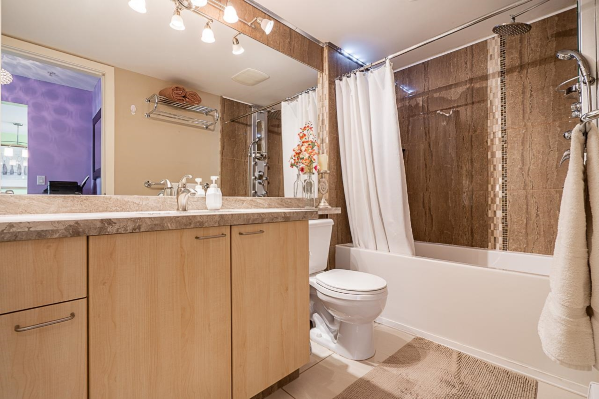 THE TAMARON. HUGE 1 BEDROOM CORNER UNIT W/ TONS OF RECENT UPDATES & NATURAL LIGHT! The OPEN kitchen, dining & living room are perfect. The bedroom is LARGE & can fit a king bed w/end tables. Recent renos include NEW GRANITE COUNTERTOPS IN KITCHEN & BATHROOM, NEW SINK & FAUCET + BACKSPLASH IN KITCHEN, EXTENDED COUNTERSPACE for breakfast chairs, NEW STONE for counter area, LIGHT FXTURES, SS APPLIANCES, NEW BATH FIXTURES & SHOWER TILES. The entry has BUILT IN ORGANIZER UNIT perfect for shoes & everyday items. The balcony is EXTREMELY PRIVATE W/NO UNIT FACING DIRECTLY TO THIS UNIT. The LOCATION IS CLOSE to all amenities, schools and transit!. Unit has in suite laundry, 1 parking stall & 1 storage unit. Strata fee $545.00 incls heat, hot water, water & gas