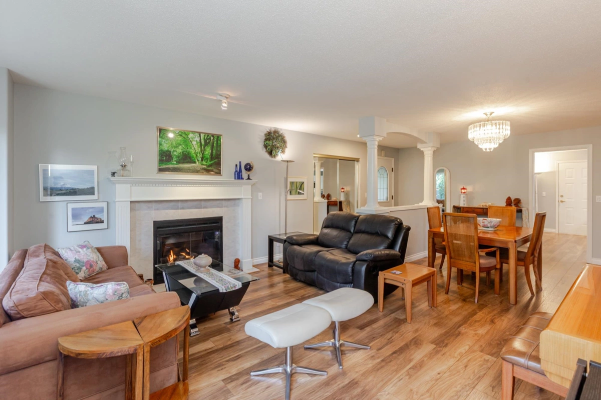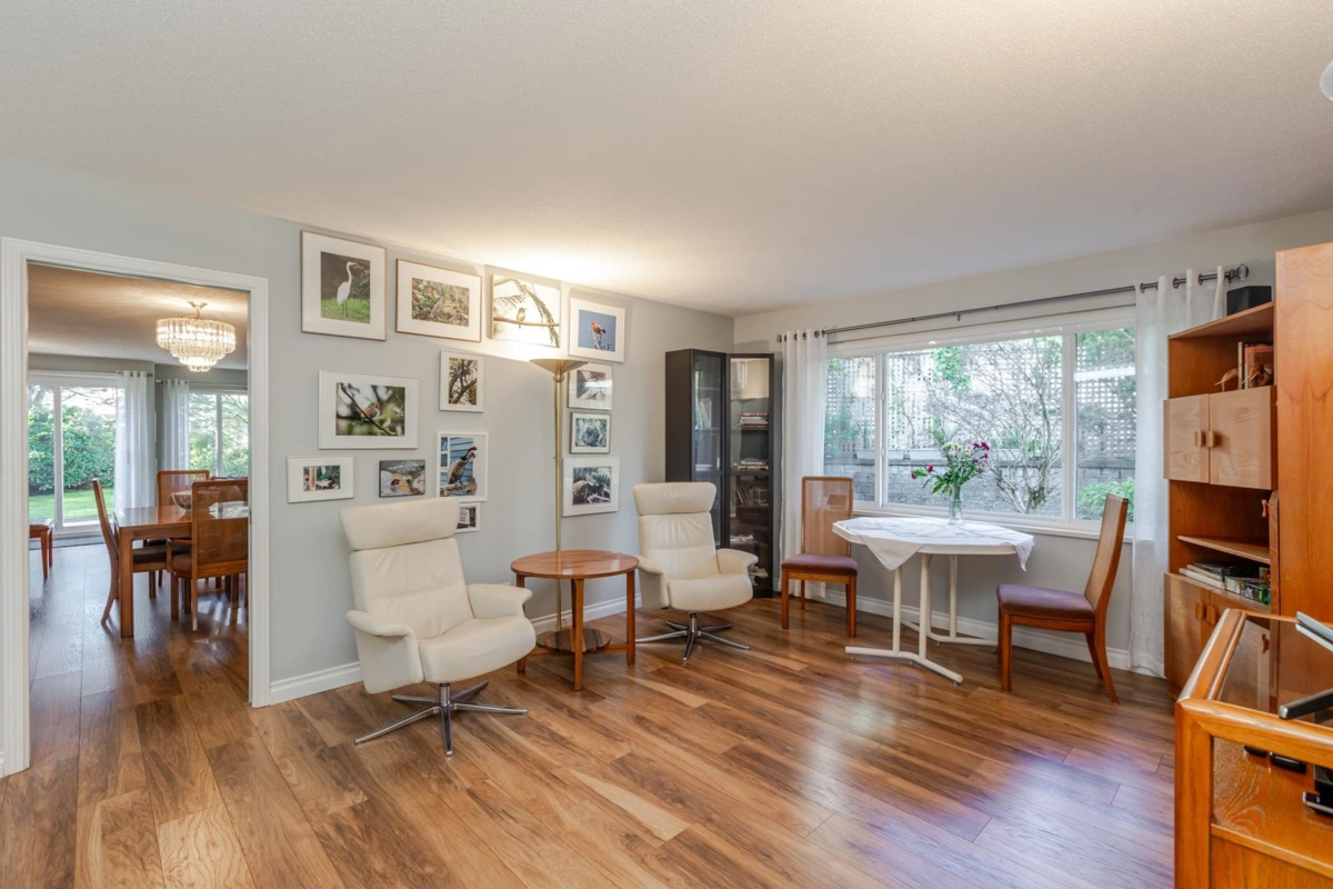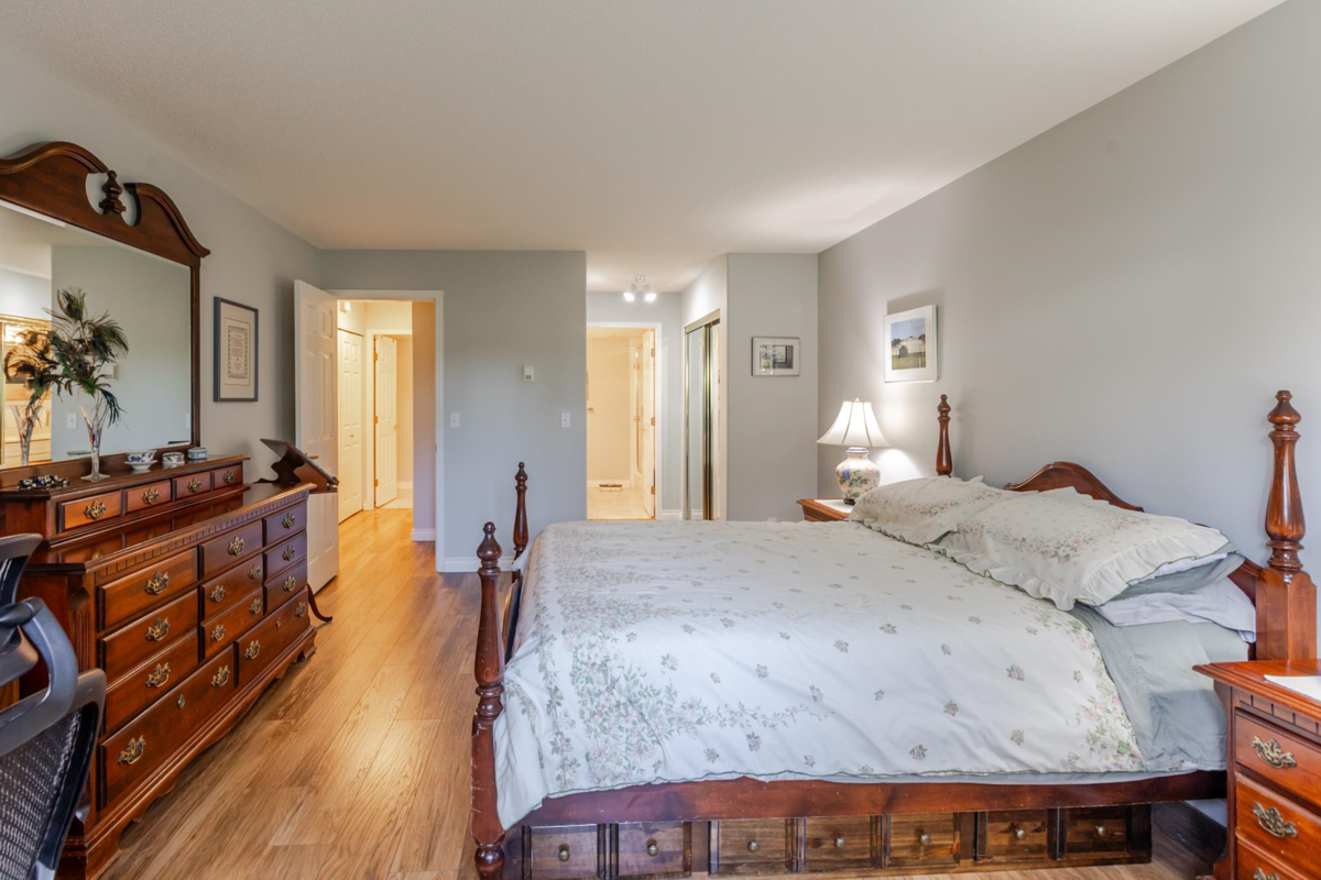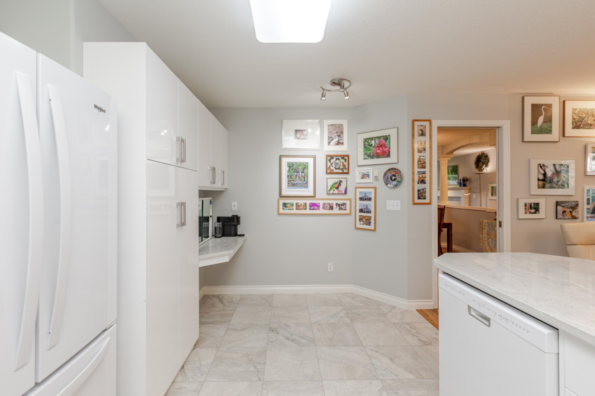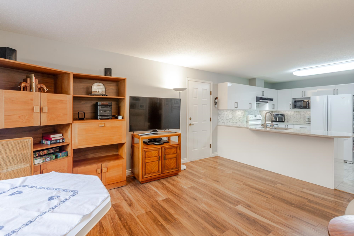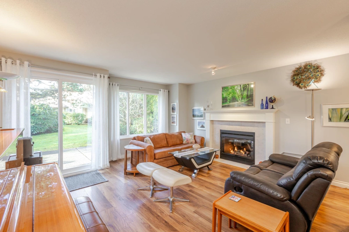 END UNIT! DOUBLE GARAGE! NO STAIRS! over 1550 SQ FT of Light airy living space. NEW WHITE KITCHEN CABINET DOORS,with QUARTZ COUNTERS, NEW TILE, SINK, TAPS,and Armstrong CUSHIONSTEP, HIGH END VINYL FLOORING in KITCHEN, BATHS AND LAUNDRY. BEAUTIFUL "APPALACHIAN HEMLOCK" LAMINATE FLOORING,in the MAIN AREAS, NEWER PAINTING and BLINDS.HOT WATER ON DEMAND, ECO KING COMBI BOILER in 2023."3" ZONE IN FLOOR HOT WATER HEATING KEEPS YOUR FEET WARM IN WINTER, and COOL IN THE SUMMER. 2 HUGE BEDROOMS, 2 FULL BATHS,FORMAL LIVING AND DININGROOMS OVERLOOKING GREEN SPACE a QUICK 2 SECOND WALK TO THE CLUBHOUSE, LUXURY LIVING at an AFFORDABLE PRICE! POOL,HOTTUB, GYM,PUB, PARTY ROOMS, 3 GUEST SUITES, RV PARKING FOR YOUR TOYS. Age restriction one owner must be 55+, 2 dogs or cats, 15" high at the shoulder.