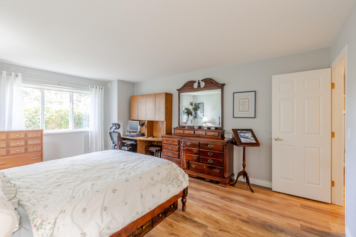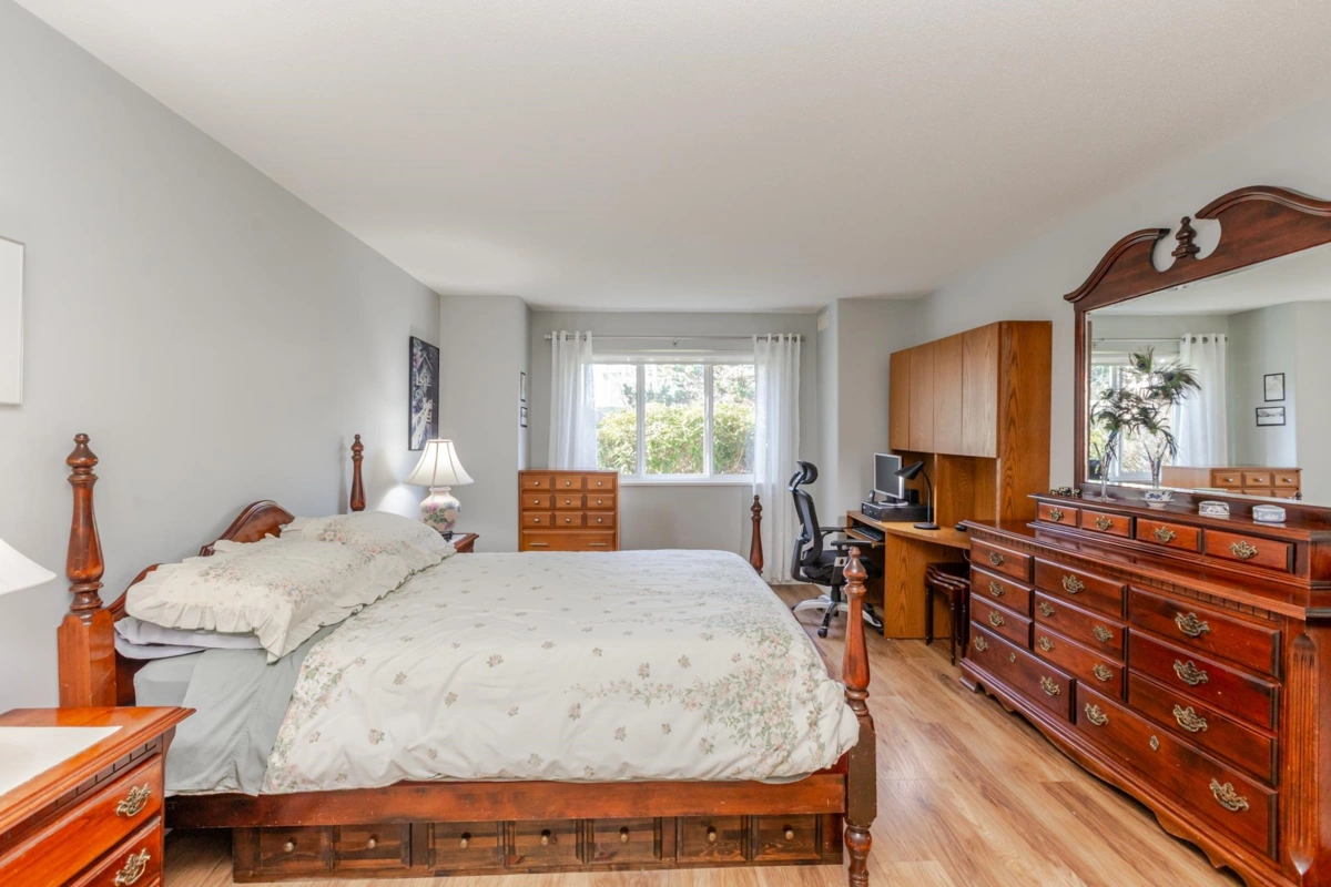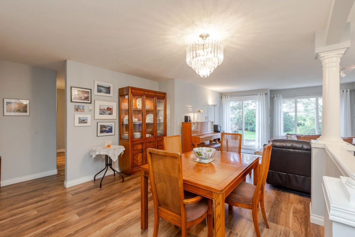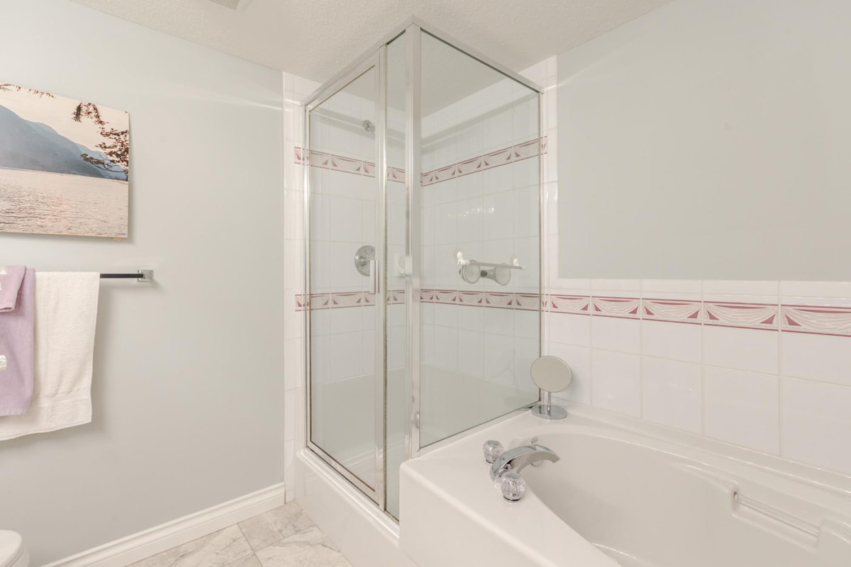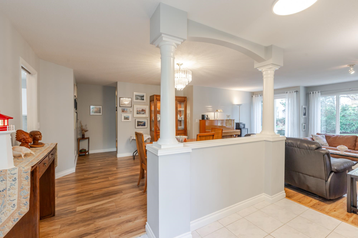 END UNIT! DOUBLE GARAGE! NO STAIRS! over 1550 SQ FT of Light airy living space. NEW WHITE KITCHEN CABINET DOORS,with QUARTZ COUNTERS, NEW TILE, SINK, TAPS,and Armstrong CUSHIONSTEP, HIGH END VINYL FLOORING in KITCHEN, BATHS AND LAUNDRY. BEAUTIFUL "APPALACHIAN HEMLOCK" LAMINATE FLOORING,in the MAIN AREAS, NEWER PAINTING and BLINDS.HOT WATER ON DEMAND, ECO KING COMBI BOILER in 2023."3" ZONE IN FLOOR HOT WATER HEATING KEEPS YOUR FEET WARM IN WINTER, and COOL IN THE SUMMER. 2 HUGE BEDROOMS, 2 FULL BATHS,FORMAL LIVING AND DININGROOMS OVERLOOKING GREEN SPACE a QUICK 2 SECOND WALK TO THE CLUBHOUSE, LUXURY LIVING at an AFFORDABLE PRICE! POOL,HOTTUB, GYM,PUB, PARTY ROOMS, 3 GUEST SUITES, RV PARKING FOR YOUR TOYS. Age restriction one owner must be 55+, 2 dogs or cats, 15" high at the shoulder.
