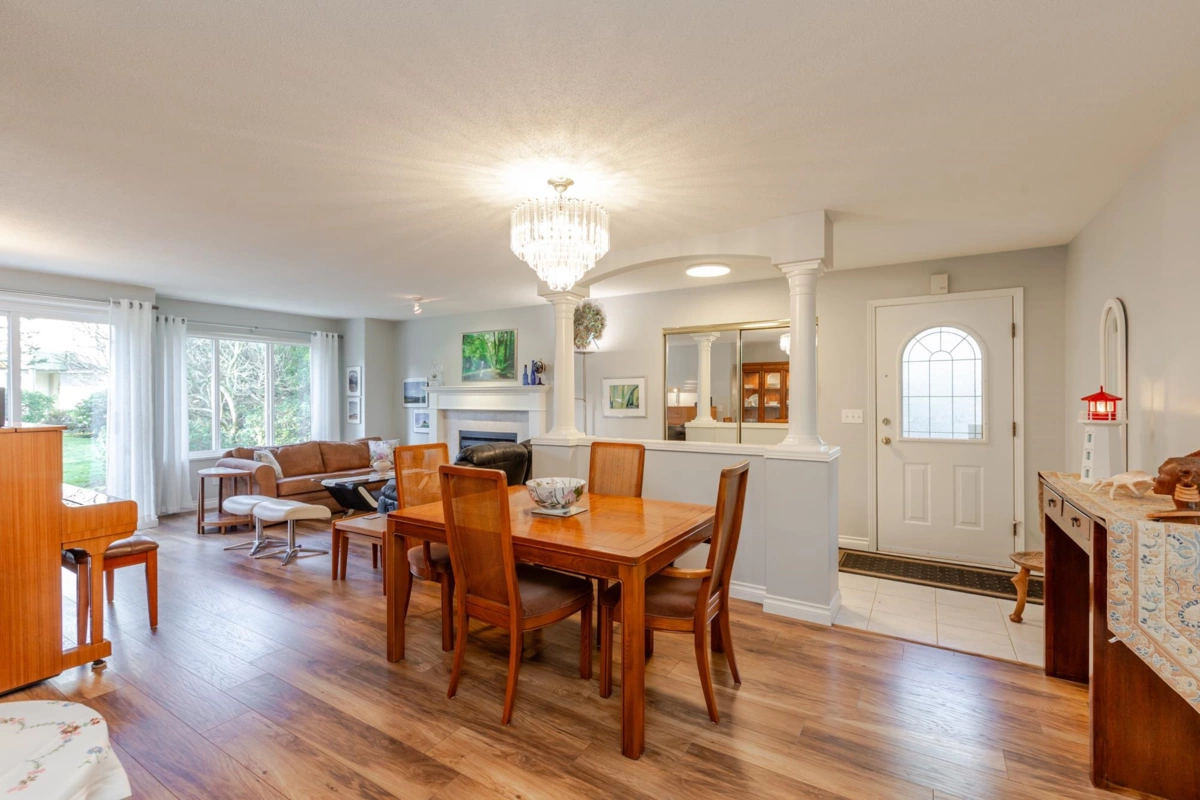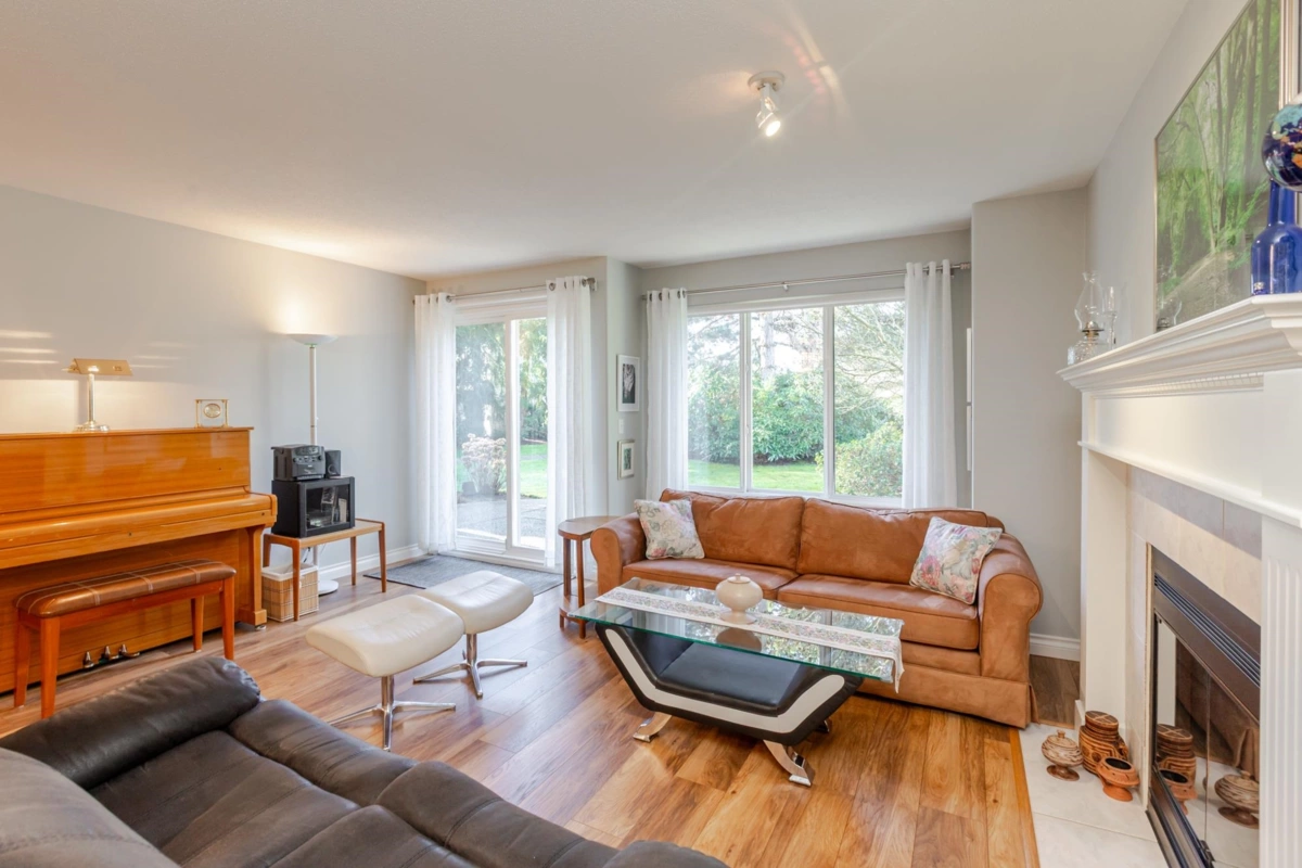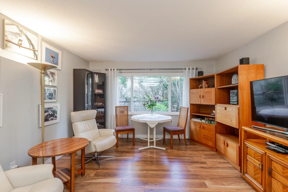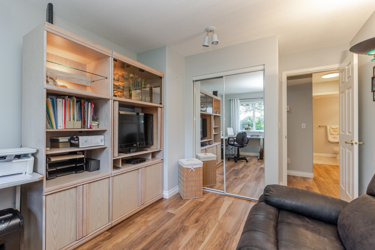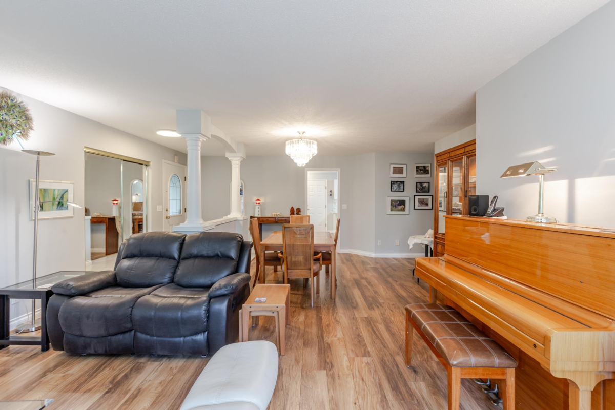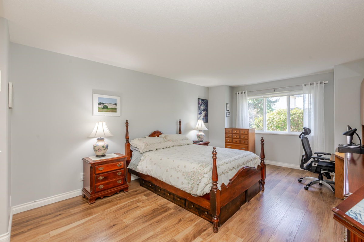 END UNIT! DOUBLE GARAGE! NO STAIRS! over 1550 SQ FT of Light airy living space. NEW WHITE KITCHEN CABINET DOORS,with QUARTZ COUNTERS, NEW TILE, SINK, TAPS,and Armstrong CUSHIONSTEP, HIGH END VINYL FLOORING in KITCHEN, BATHS AND LAUNDRY. BEAUTIFUL "APPALACHIAN HEMLOCK" LAMINATE FLOORING,in the MAIN AREAS, NEWER PAINTING and BLINDS.HOT WATER ON DEMAND, ECO KING COMBI BOILER in 2023."3" ZONE IN FLOOR HOT WATER HEATING KEEPS YOUR FEET WARM IN WINTER, and COOL IN THE SUMMER. 2 HUGE BEDROOMS, 2 FULL BATHS,FORMAL LIVING AND DININGROOMS OVERLOOKING GREEN SPACE a QUICK 2 SECOND WALK TO THE CLUBHOUSE, LUXURY LIVING at an AFFORDABLE PRICE! POOL,HOTTUB, GYM,PUB, PARTY ROOMS, 3 GUEST SUITES, RV PARKING FOR YOUR TOYS. Age restriction one owner must be 55+, 2 dogs or cats, 15" high at the shoulder.