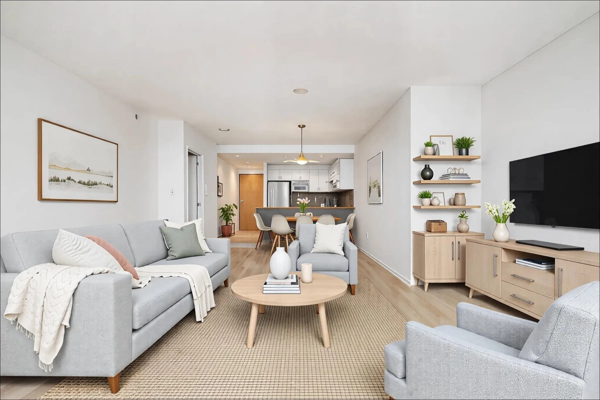 This pristine 1-bed, 1-bath condo in the popular Quay area of New Westminster offers urban elegance. With an open concept layout, stunning granite kitchen countertops, stainless steel appliances, and vinyl laminate flooring, it’s a true gem. Steps away from the Skytrain station, Quay Boardwalk, and Market, you’ll enjoy Sunday strolls along the riverwalk, surrounded by amazing restaurants and cafes.