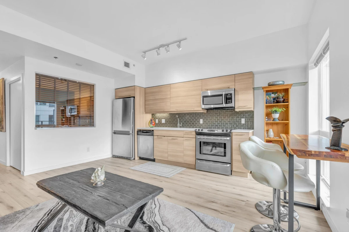 Located in the heart of NV, at Bewicke Ave. and Marine Dr. 700 Marine, is a concrete boutique development that boasts high ceilings, large balconies and mountain views. This junior 1 bed, 1 bath features an open and bright living space, situated on the quiet side of the building. With A/C, high-end stainless steel appliances, and quartz countertops, family size washer /dryer this unit has it all. The large floor plan offers ample space for work, relaxation, dining, and entertaining, while the oversized balcony provides great outdoor space. Enjoy the convenience of a central location, with secure parking, a storage locker, bike room and rooftop deck with a personal garden plot. Pets and rentals are allowed, making this a spectacular opportunity for a first time buy or rental investment.