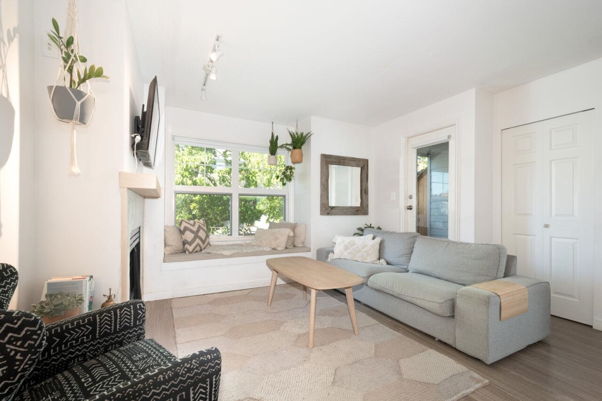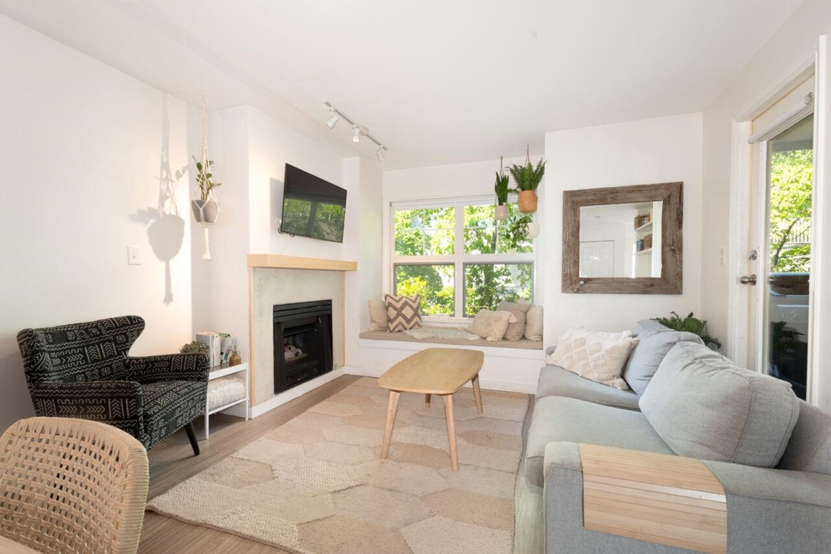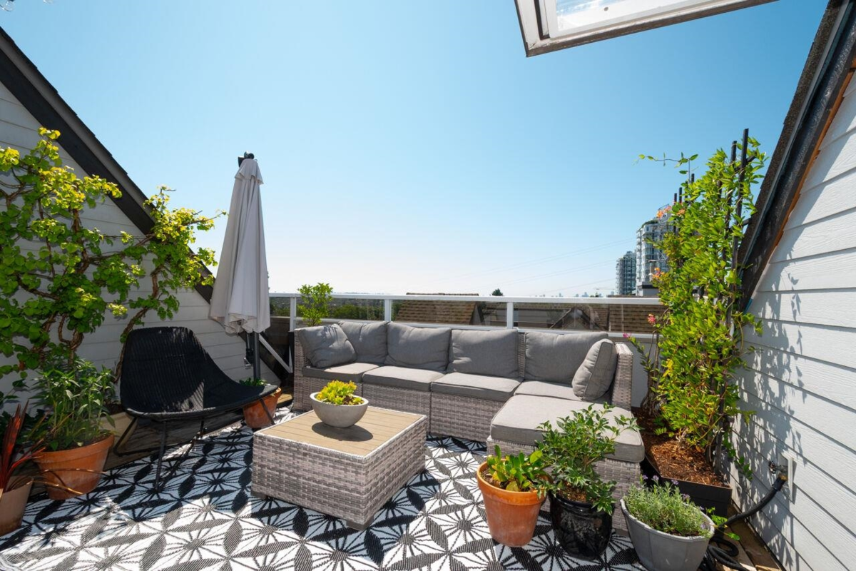 Rarely available with THREE levels of living and entertaining, this tastefully renovated 2 bed/2 bath townhouse has everything you need in a prime Burnaby Heights location. A functional split-level floorplan, updated kitchen/bathrooms, wide plank laminate flooring, a cozy gas fireplace, fresh paint, plus a 250+ square foot PRIVATE PATIO with incredible city and mountain views. Proactive, well run strata with newer windows, balconies, railings, roof, landscaping, and rainscreening with Hardi-plank exterior. One parking + one storage locker. Pet/rental friendly. Super central to many great Heights shops and cafes, Kootenay Loop, Brentwood, Confederation Park, and the PNE.