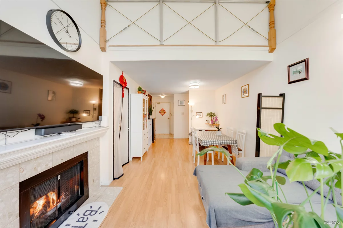Exceptional location in the heart of Richmond with unbeatable convenience. Everything you need is right at your doorstep—steps to Lansdowne Centre, T&T, Walmart, Kwantlen University, restaurants, and daily amenities. Close to public transit with easy access to bus routes and the Canada Line, making commuting a breeze. This well-kept top-floor unit features a bright east-facing exposure with a 17-foot ceiling in the living area and a gas fireplace (strata fee includes gas), offering a house-like feel. Separate kitchen with eating area and access to the balcony. Spacious primary bedroom with ensuite, plus an upper-level bedroom opening to a private rooftop patio, perfect for summer enjoyment. Interior updates in 2021 include kitchen appliances, washer and dryer, flooring, and fresh paint.