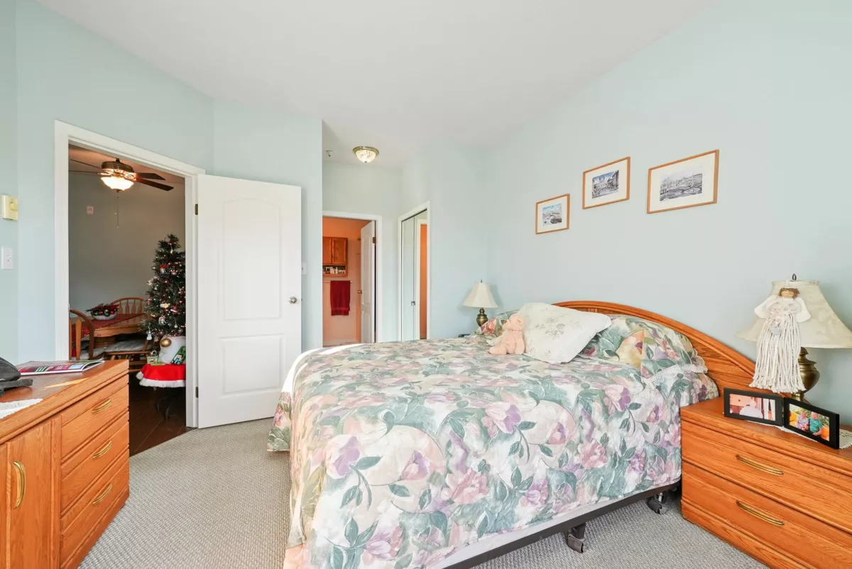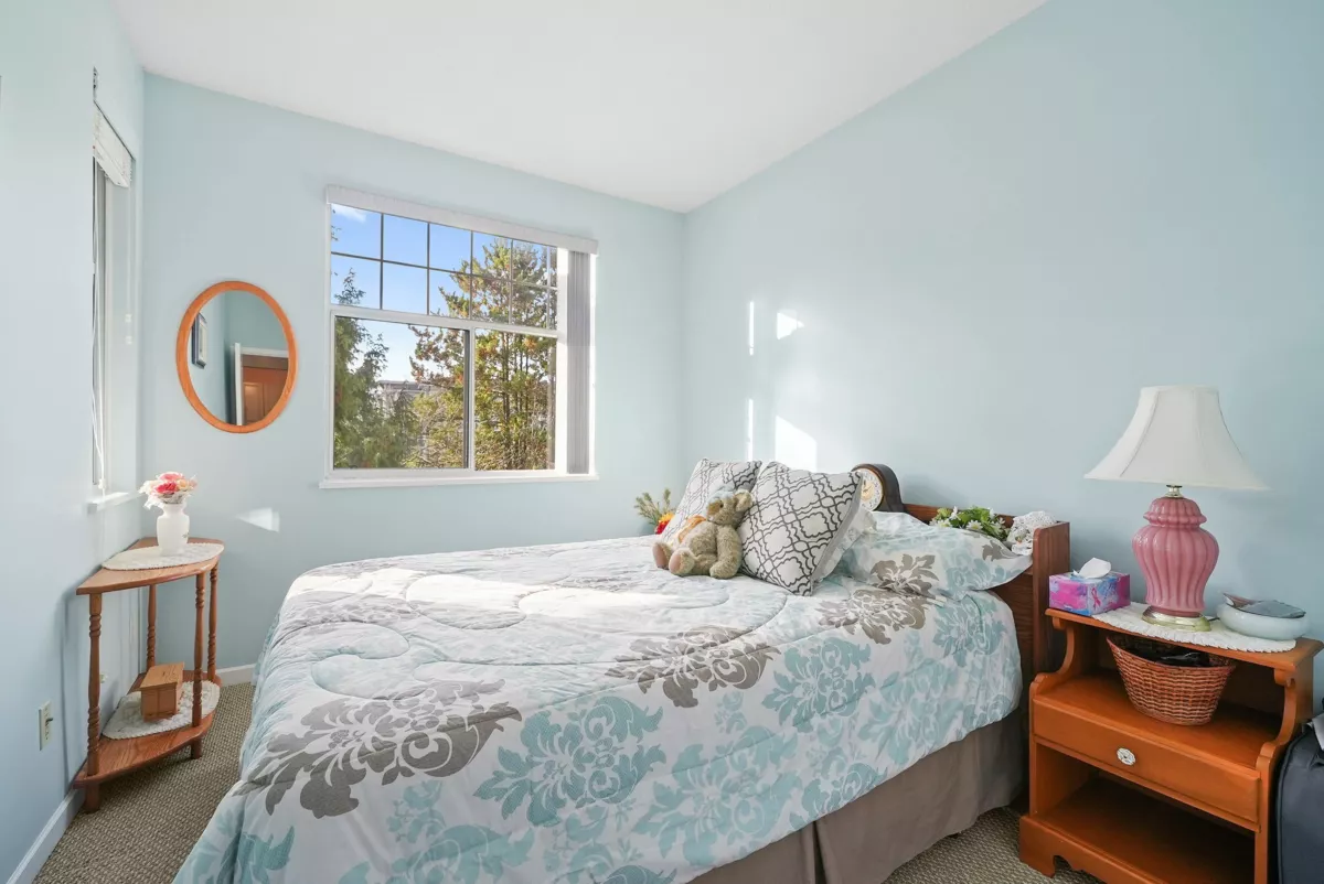 BRIGHT & COZY Top Floor 2Bdrm/2Bth 1050+SF Condo located in sought after IVY LEA AT THE MEADOWS! This well-kept home offers 9' ceilings giving a more roomy feel and lots of natural light. Kitchen presents SS appliances, double sinks, tiled backsplash + ample cupboards. Open living/dining area shows beautiful wide-plank laminate floors & gas fireplace. Primary is complete w/walk-in closet & 4pc ensuite w/soaker tub PLUS fits a KING bed too! Second Bdrm is conveniently located on the opposite side of the Primary--allowing for Privacy. Generous sized laundry room too! Enjoy your southwest facing covered patio w/space for your BBq & comfy patio furniture. Close to shopping & steps to Dumais Park with a playground. You won't want to miss this GEM!