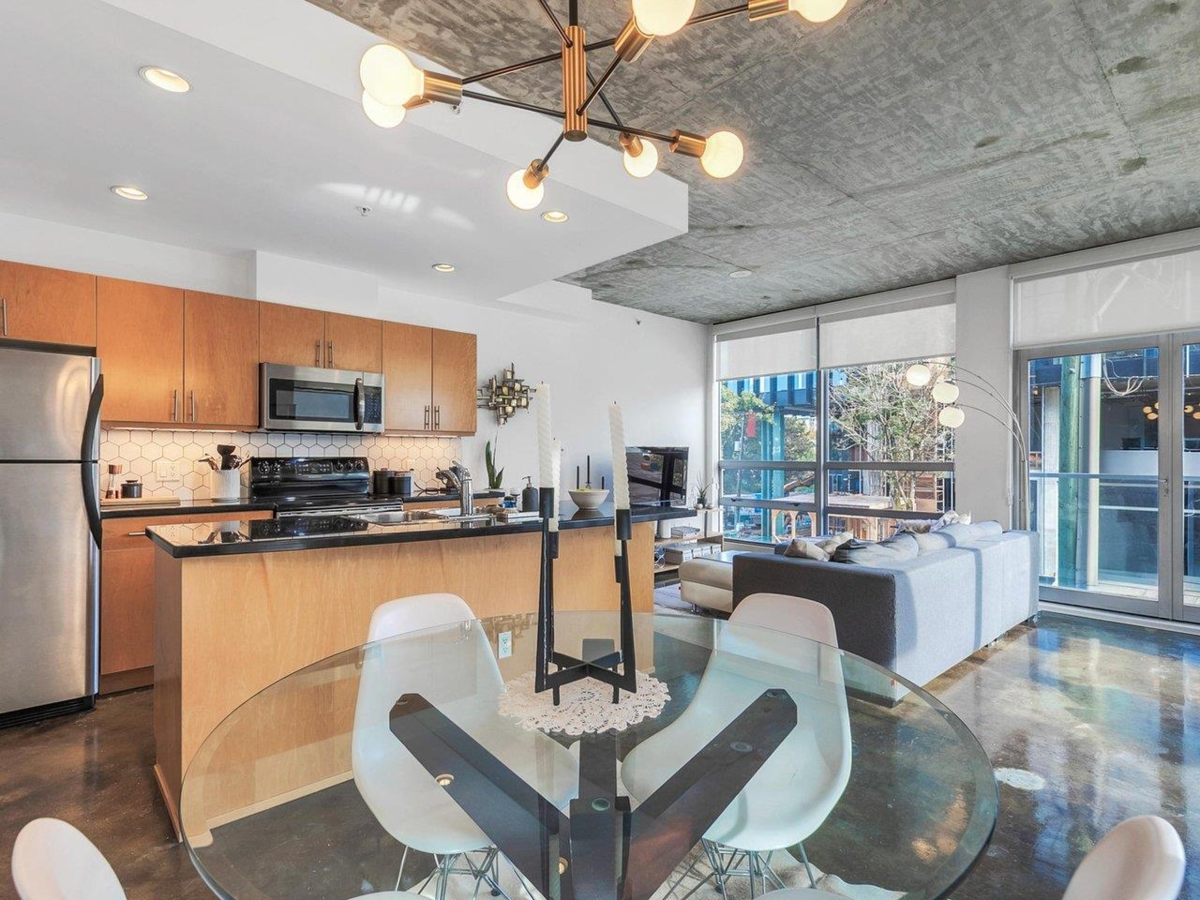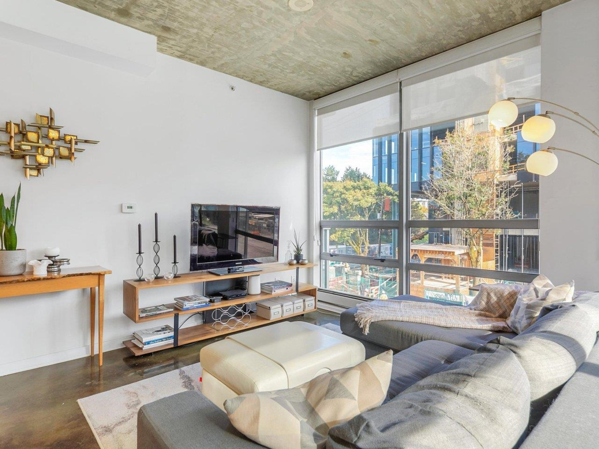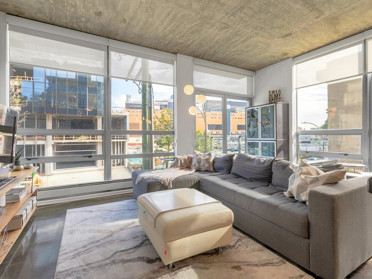 Outstanding investment opportunity! Rarely available loft-style corner home in the sought-after Left Bank building. Offering 2 bedrooms and 1 bathroom, this bright and airy residence showcases polished concrete floors, overheight ceilings, and an open-concept layout that extends seamlessly to your private covered balcony. Located directly across from the future St. Paul’s Hospital, this property is ideally positioned for long-term growth. Just steps to the SkyTrain (Science World Station), Seawall, parks, restaurants, and sporting events. Well-managed building is pet friendly (2 pets allowed). Located on the quietest corner in the building, away from the viaduct and Main Street. 1 secured parking. An exceptional opportunity for both homeowners and investors.