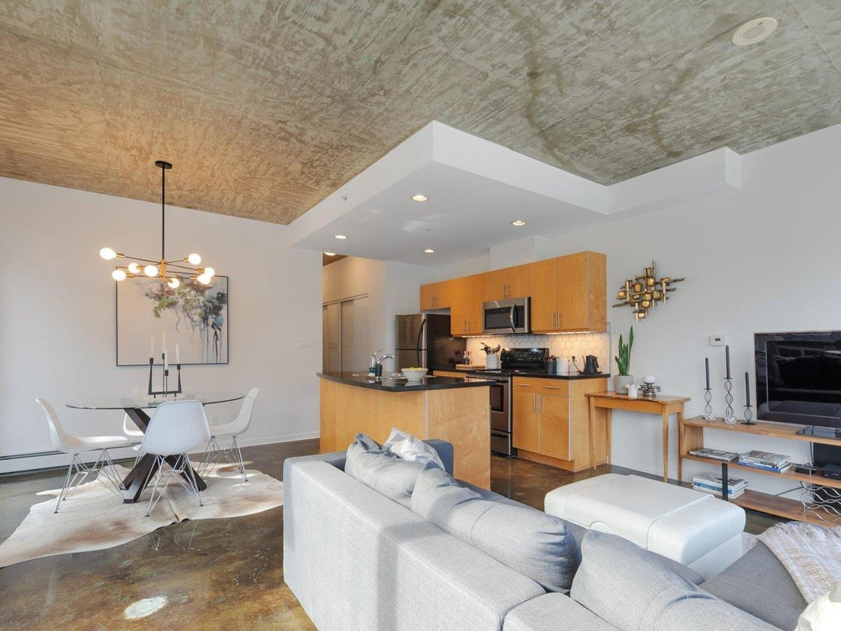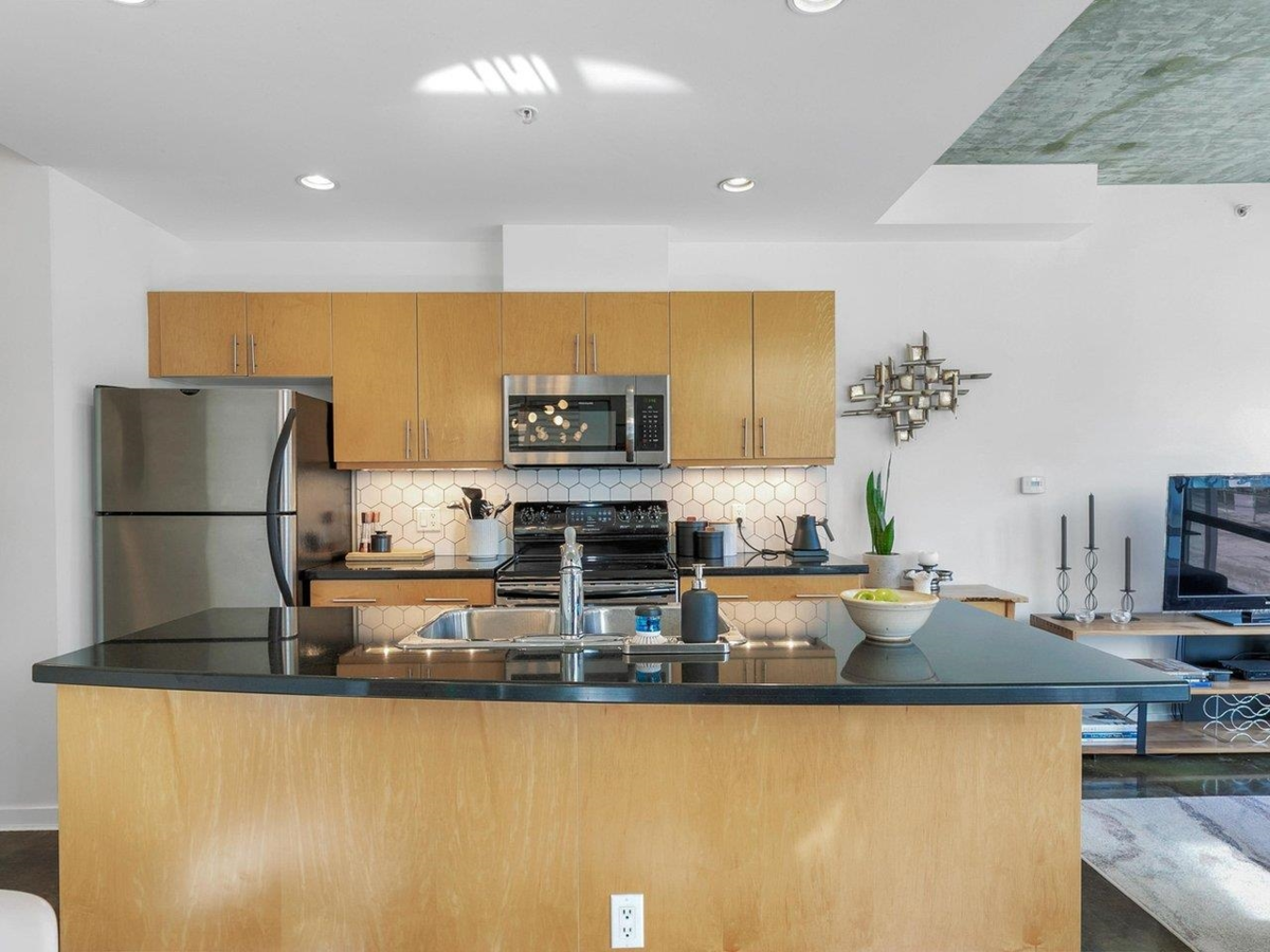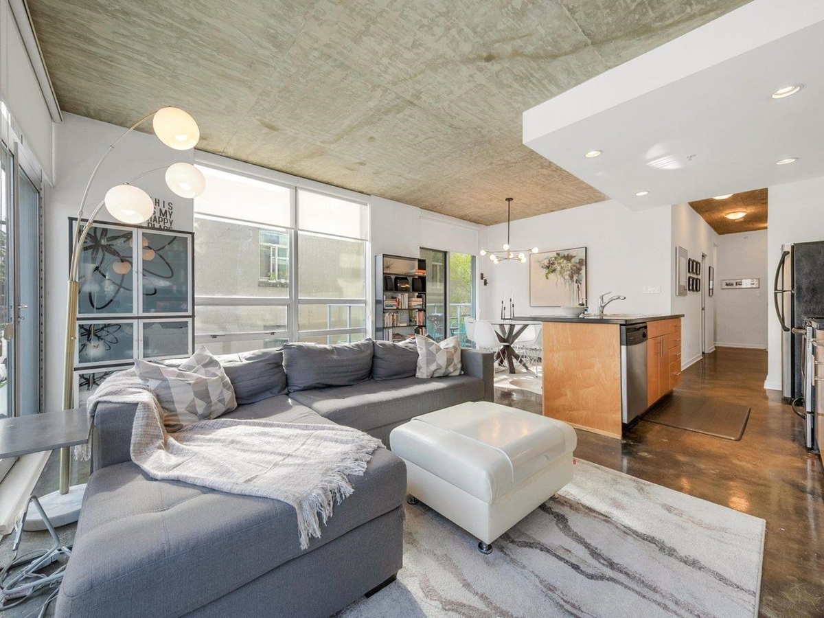 Outstanding investment opportunity! Rarely available loft-style corner home in the sought-after Left Bank building. Offering 2 bedrooms and 1 bathroom, this bright and airy residence showcases polished concrete floors, overheight ceilings, and an open-concept layout that extends seamlessly to your private covered balcony. Located directly across from the future St. Paul’s Hospital, this property is ideally positioned for long-term growth. Just steps to the SkyTrain (Science World Station), Seawall, parks, restaurants, and sporting events. Well-managed building is pet friendly (2 pets allowed). Located on the quietest corner in the building, away from the viaduct and Main Street. 1 secured parking. An exceptional opportunity for both homeowners and investors.