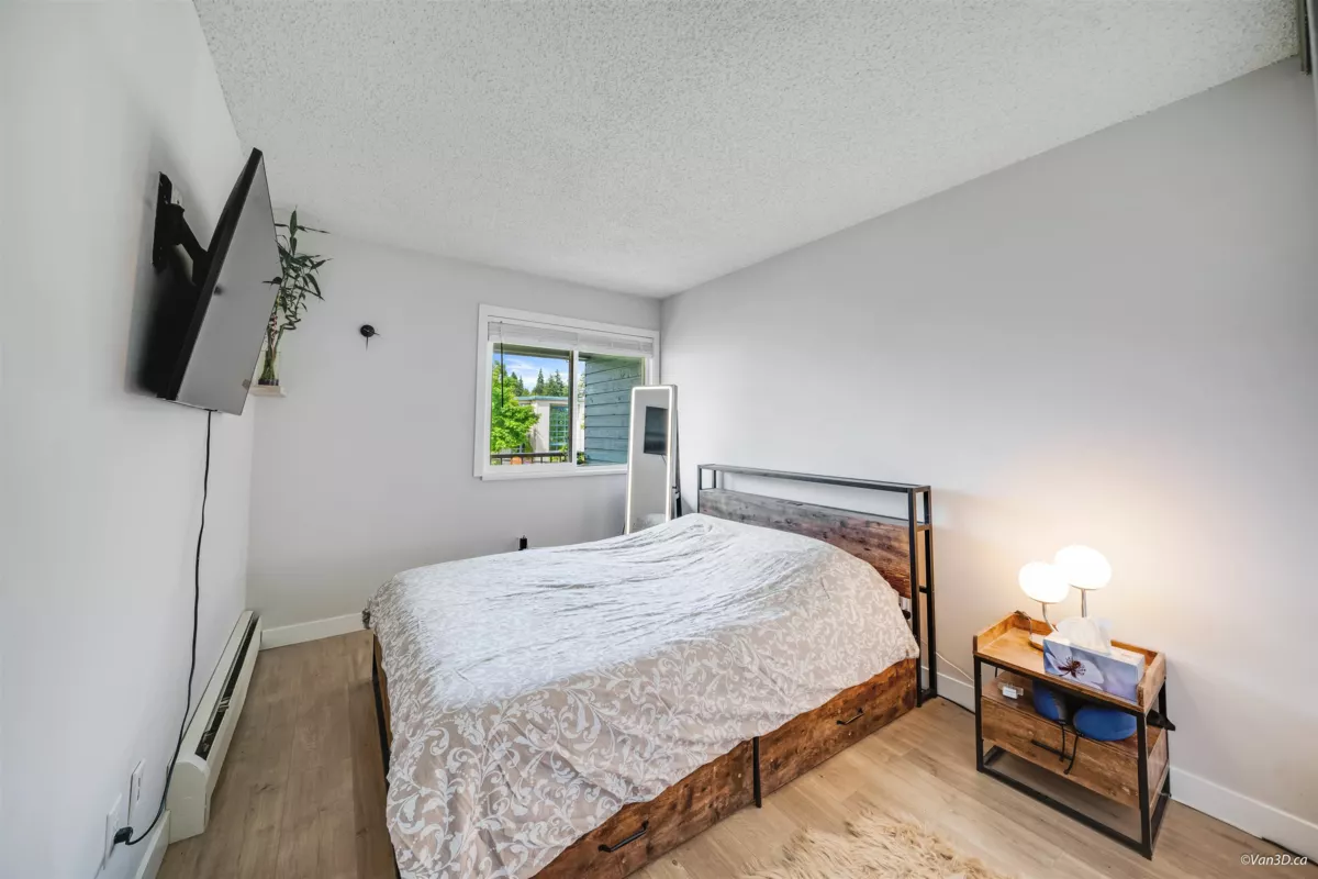 Top-Floor Bright Unit with In-Suite Laundry & Dishwasher! Rare top-floor, bright unit in King Albert featuring an efficient floor plan, fully renovated bathroom, in-suite laundry, and dishwasher. Stylish updates include new laminate flooring, modern kitchen cabinets, countertops, baseboards, blinds, and a retractable screen door. The seller has been using an additional parking stall (unassigned), adding extra convenience. The building also has future redevelopment potential for medium-density, making this a smart investment opportunity. Prime location, steps to shopping, dining, schools, Blue Mountain Park, and just minutes to Lougheed SkyTrain and SFU. Includes 1 parking stall and storage locker.