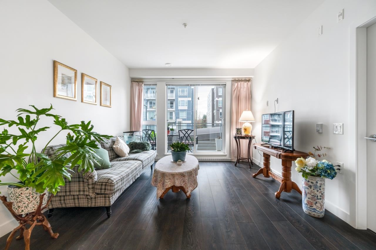 This East facing unit is a rarely find spacious one bedroom and den, located in one of the three 6-story apartment buildings of HQ Dwell, built around a central courtyard and amenity building that includes a fitness centre, party room, lounge and ample outdoor space, by local popular developer Porte Homes.Open concept interior featuring 9 FT ceilings, wide plank laminate flooring, gourmet kitchen with Caesarstone quartz countertops, soft-close cabinetry, Carrera tile back-splash & full size appliances. Nearby schools: Forsyth Road Elementary and Guildford Park Secondary School. Walking distance to Service Canada Centre and three parks. Short drive to Surrey Central, Surrey City Hall, Surrey Libraries,Guildford Town Centre, Gateway Skytrain Station and Surrey Memorial Hospital.