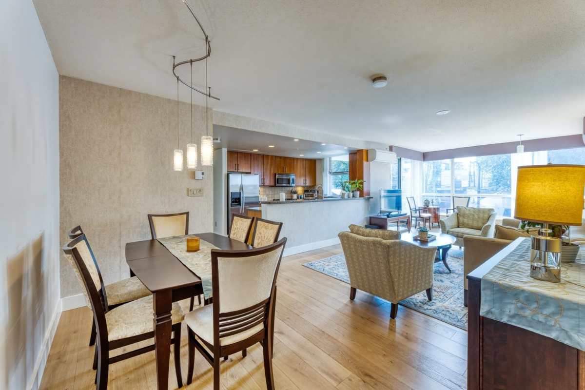 Welcome to Verona of Portico, where modern elegance meets an unbeatable location! This rare 2-bedroom, 2-bathroom corner unit has been meticulously updated with engineered wood flooring, and upgraded appliances, including a new washer/dryer, dishwasher, air conditioning and wine fridge. Enjoy spacious, open-concept living with stone countertops, a balcony gas hookup, and two premium parking spots with a dedicated Level 2 EV charger. The Bosa-built building now features a Cutting-Edge Leak Detection and automatic water shutoff system, monitored via a mobile app. Steps from Granville Island, South Granville’s boutiques, and the Seawall. This home offers the perfect blend of luxury, convenience, and lifestyle. Book your private viewing today!