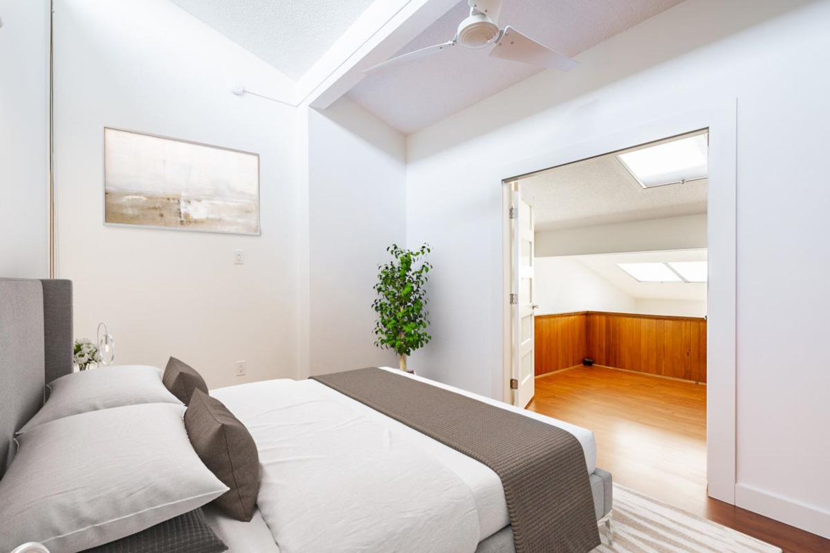 Welcome to this hidden gem – a stunning 2-bedroom, 1-bathroom loft in the heart of Kitsilano, located on the quiet side of the building. Bathed in natural light with an airy, open feel, this spacious loft boasts high ceilings and has been beautifully renovated. Skylights throughout flood the space with sunlight, while ample storage adds to its functionality. The updated kitchen features sleek stainless-steel appliances, along with beautiful counters and cabinetry that perfectly complement the inconspicuous loft design. The bathroom, recently updated, offers a touch of luxury. Enjoy outdoor living on the 100+ sq ft balcony. Just steps from shops, eateries, and entertainment!