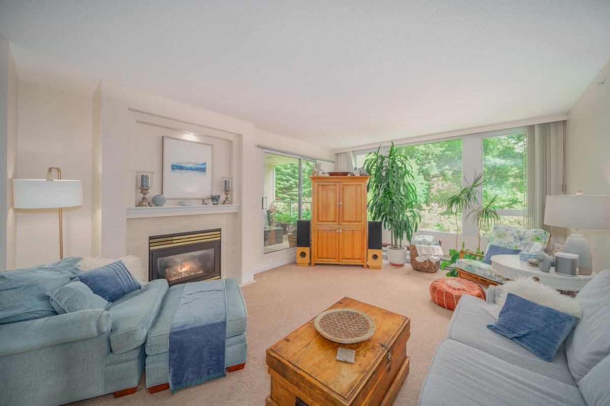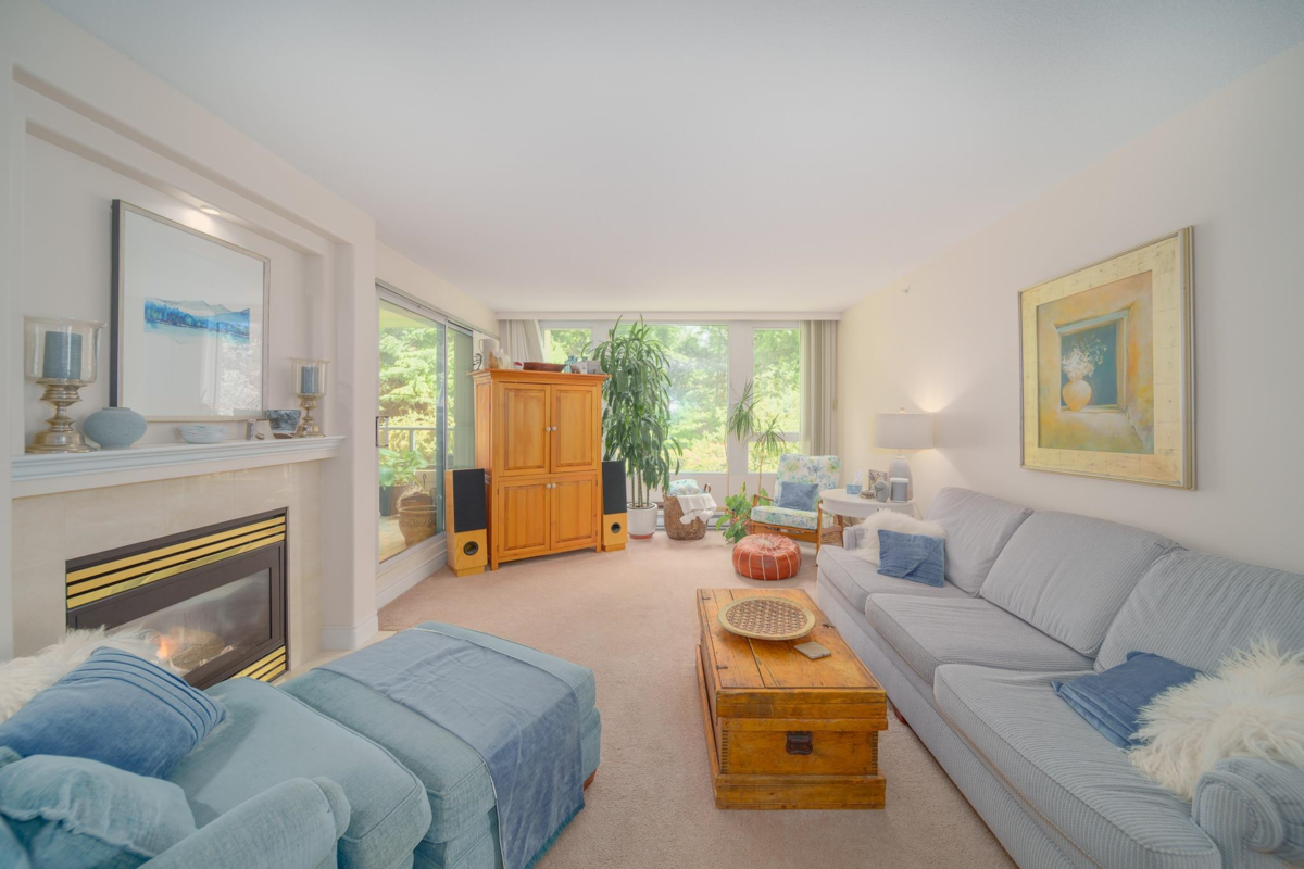 The Chatham at Hampton Place. An incredible opportunity to own in this exceptional CONCRETE building at UBC. Enjoy beautiful views of the lush gardens from every window in this spacious 2 Bedroom home of 1,279sf. Generous room sizes with plenty of natural light, gas fireplace and covered patio. This homes comes with insuite laundry, TWO parking stalls and secured storage locker. Excellent amenities with caretaker, visitor parking, social lounge, indoor pool and guest suite. This one has it all! Centrally located to all the great conveniences of campus and offering a peaceful and tranquil setting.