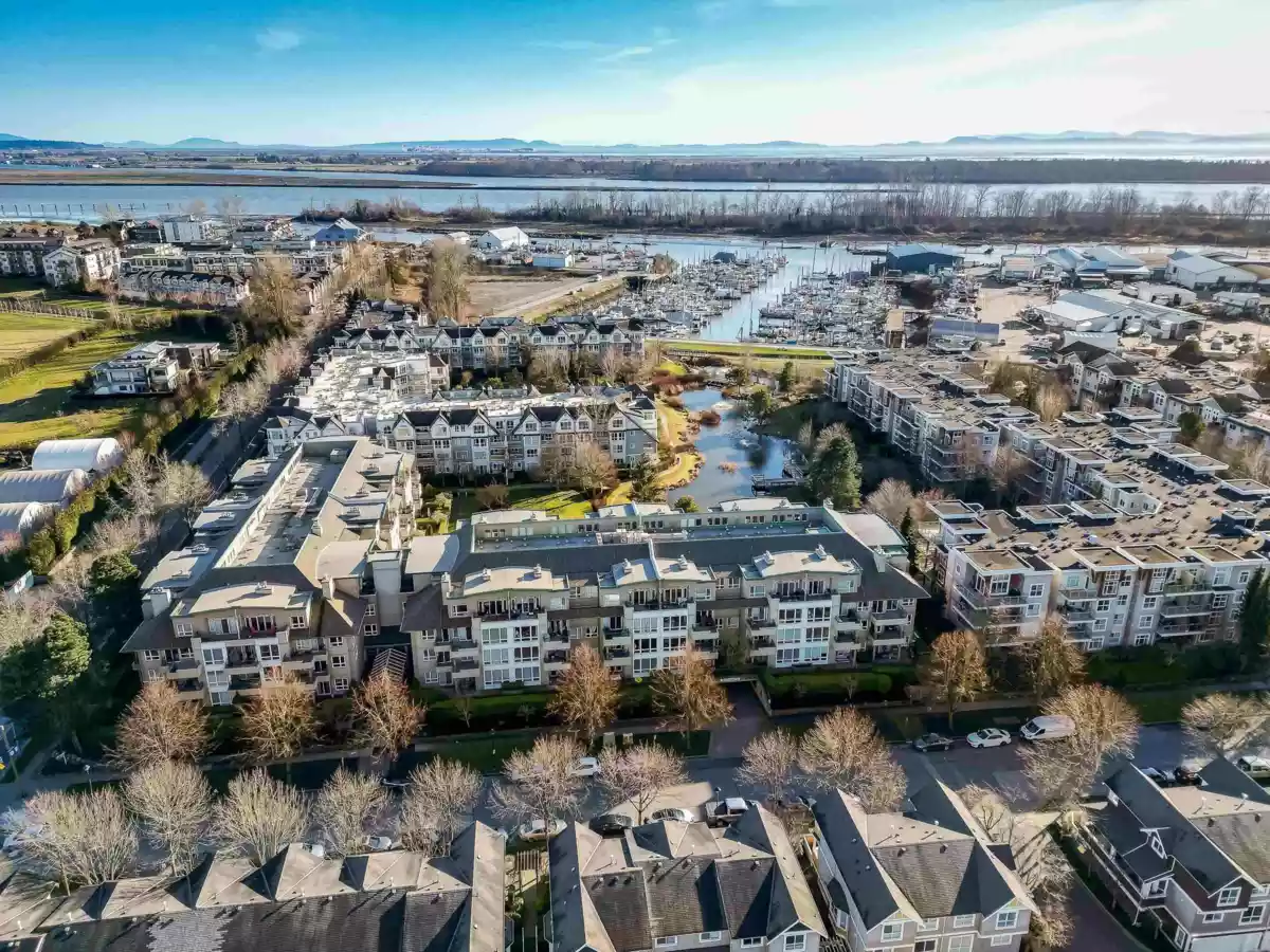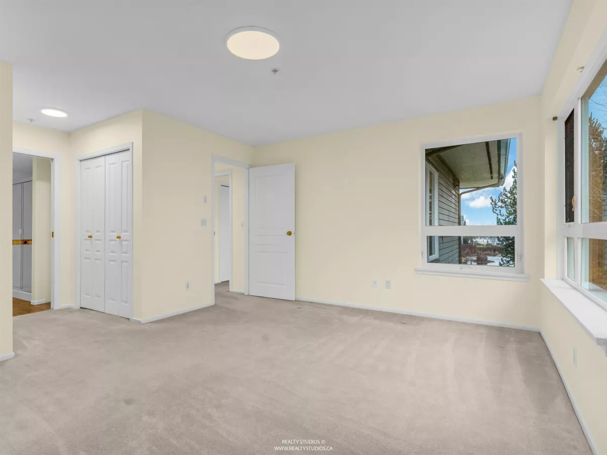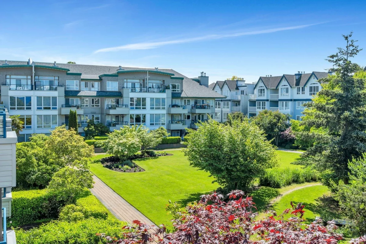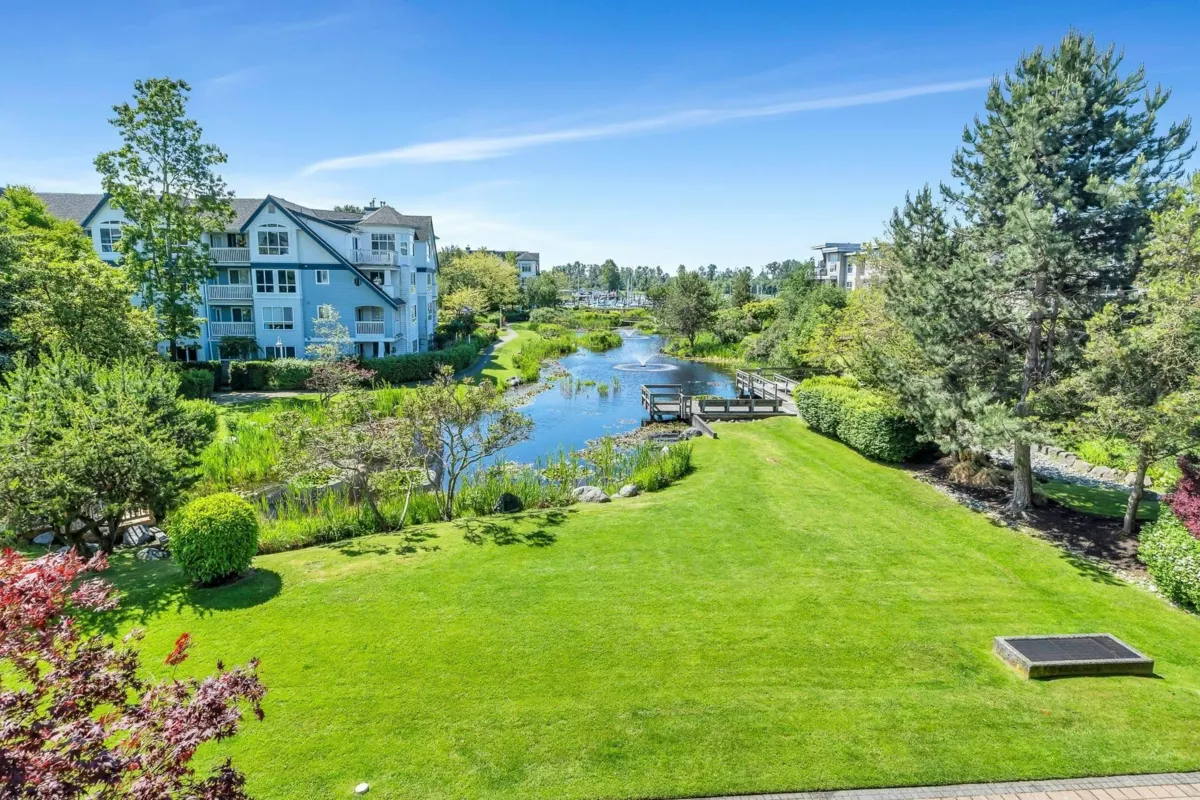 Spacious CORNER UNIT with the BEST VIEWS IN STEVESTON -- overlooking a serene pond, landscaped courtyard, and the Fraser River from EVERY WINDOW! With room for house-sized furniture, this unit is in pristine original condition, offering modernized lighting and a fresh coat of paint. Snuggle up next to the cozy gas fireplace, and enjoy the convenience of in-floor radiant heat -- both included in the strata fees. Unit offers easy elevator and stairwell access, in this well-managed, rainscreened building with guest suites, a new roof, updated common areas, and modernized elevators. Steps to the boardwalk, dyke trail, shops, cafés (including Diplomat Bakery), and restaurants in Steveston Village. Two parking stalls included!