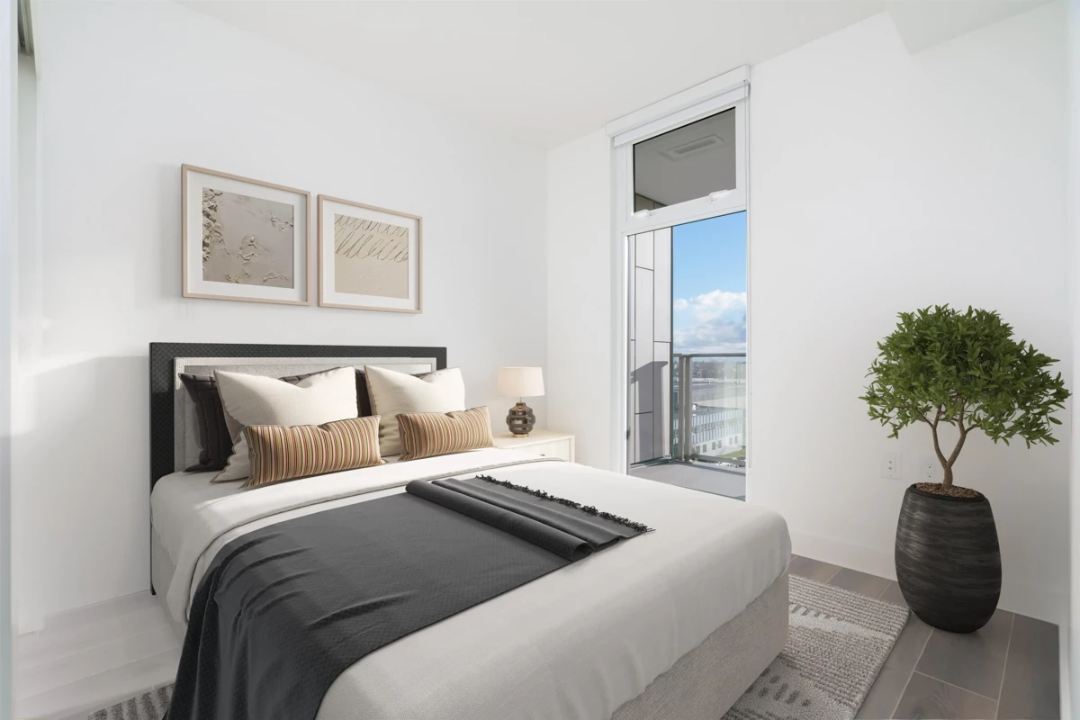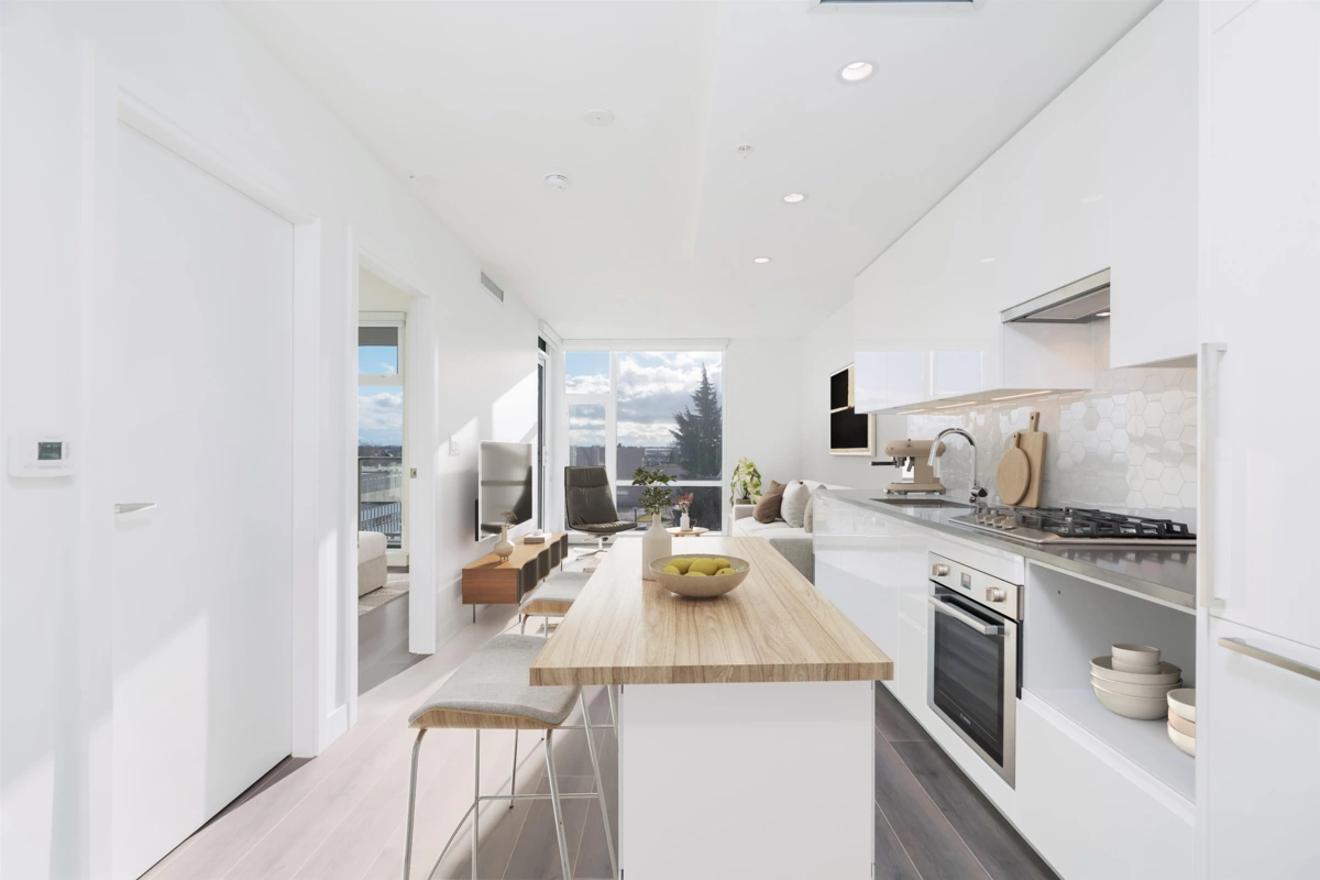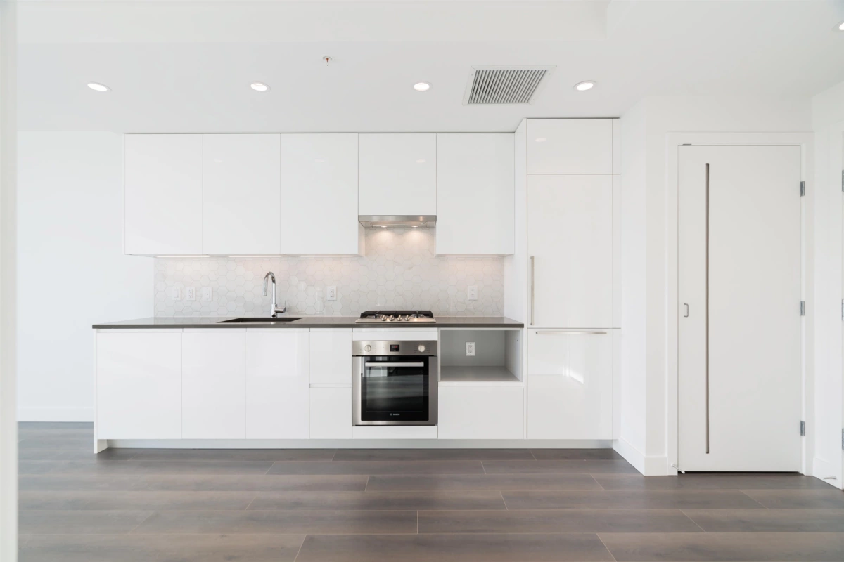 FRASER COMMONS AT FRASER AND MARINE - BRIGHT SOUTH FACING 1 BEDROOM + DEN/FLEX in the Fraser Commons community! This thoughtfully designed home offers tasteful interiors incl. lam flrs, large windows, Bosch premium appliance package w/a built-in bottom-freezer refrigerator, integrated dishwasher, stainless steel oven, gas cooktop and pull-out hood fan. The exclusive amenities offer generous park and plaza space tucked away from the street, a beautiful rooftop terrace with gardens, greenery, and ample seating, A 4,700 square foot daycare with a large outdoor play area, A modern fitness facility for residents' use, A multipurpose room with shared kitchen for entertaining/events, shops + cafes. 1 STORAGE LOCKER.