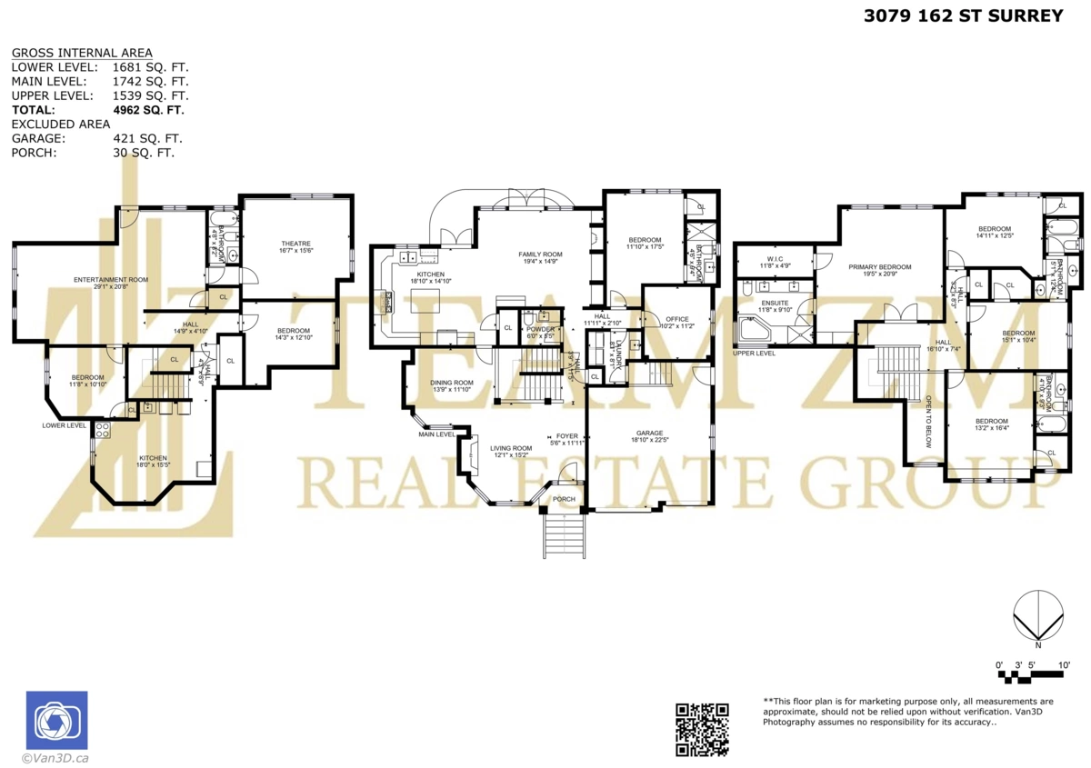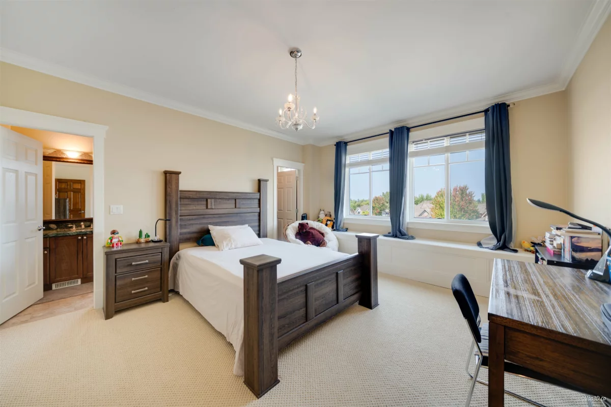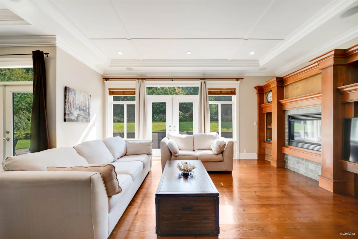 Nestled in a quiet cul-de-sac, this stunning home sits on a massive 11,717sqft lot with a beautifully landscaped, south-facing backyard. Quality built with an exceptional layout, it boasts 10-ft ceilings on the main floor and 14-ft vaulted ceilings in the living room, complemented by classic 7-inch wide plank flooring. The gourmet kitchen features granite countertops, high-end stainless steel appliances, and a built-in pantry. Offering two master bedrooms—one conveniently located on the main floor—all upstairs bedrooms come complete with walk-in closets and ensuites. Enjoy premium amenities including a games room, media room, gym, home sound system, and full house A/C. Located in a highly desirable South Surrey neighborhood, close to Southridge private school, shopping, recreation