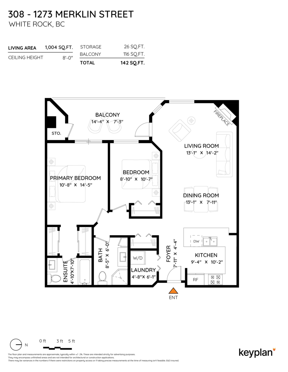 RAINSCREENED, No Age Restrictions & In-Suite Laundry! Welcome to this beautifully renovated 2-bedroom, 2-bath home at 1273 Merklin Street in the heart of White Rock! This quiet inside unit offers 1,004 sqft of stylish living, featuring an updated kitchen, new floors, modern lighting, and stainless steel appliances. Cozy up by the gas fireplace—gas is included in the strata fee. Enjoy peace of mind in a fully rainscreened building with newer windows, balconies, and doors. The spacious layout includes 2 large storage areas—one conveniently off the balcony—and 1 secure parking stall. Walk to shops, restaurants, transit, and the beach. A perfect home for downsizers, professionals, or those seeking a move-in-ready coastal retreat!