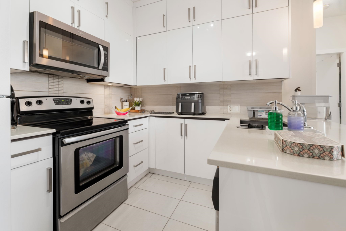 Experience elevated urban living in this renovated 2-bed, 1-bath corner condo in the heart of Surrey Central. Bright and modern, this high-rise unit offers an open and airy layout with spacious bedrooms and stylish finishes. Renovation highlights: New accent wall Upgraded fridge and dishwasher Only unit in the building with a full kitchen Remodeled bathroom vanity Conveniently located near Surrey Central SkyTrain, Walmart, King George Blvd, Highway 1, and New Westminster — perfect for modern urban living.