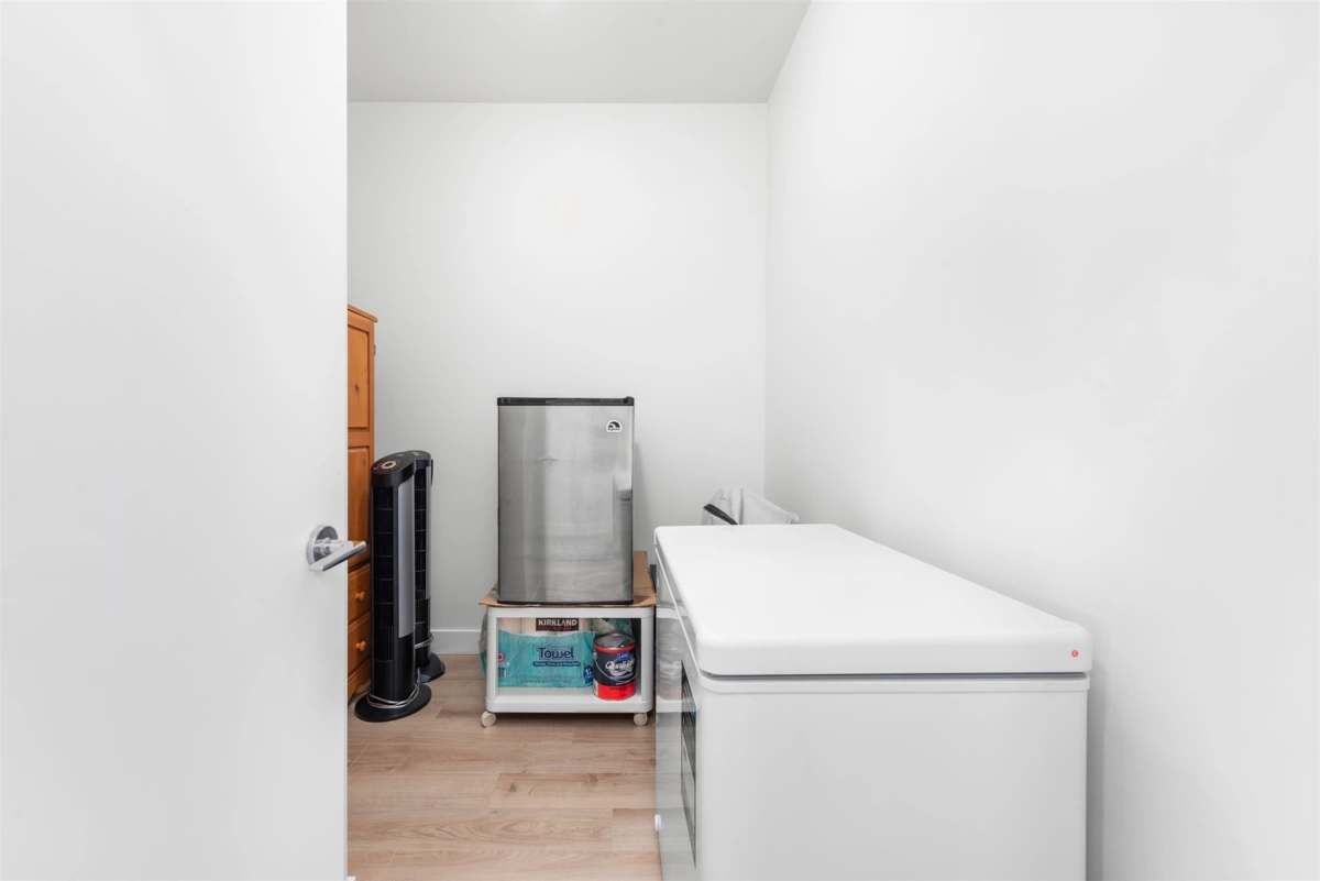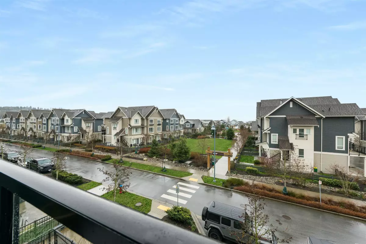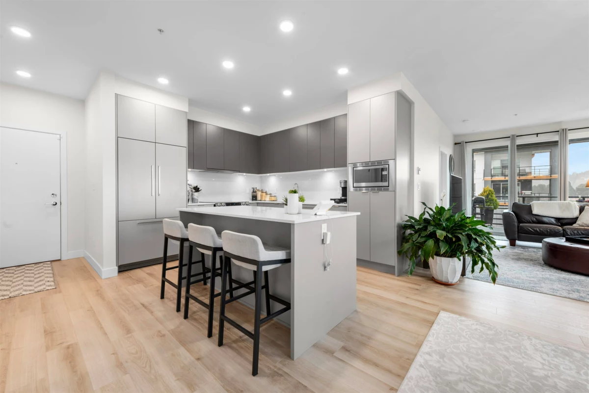 Welcome to Peregrine North at Tsawwassen Shores by Aquilini Development, discover this exquisite 2 bed, 2 bath + den corner unit, one of the largest and most desirable floorplans in the complex. Spanning 1,084 sqft, this unit features a spacious 240 sqft wrap-around patio with serene west-facing park, water and mountain views. The chef's L-shaped kitchen with an island is surrounded by panoramic windows, inviting abundant natural light and enhancing the open feel. Large living and dining area with 9" ceilings and upscale bathrooms, the unit offers modern, luxurious living. Residents have exclusive access to The Nest Clubhouse, which includes a spectacular fitness centre, chef’s kitchen, outdoor fireside lounge, meeting rooms, and a billiards room. 2 parking stalls, large storage locker.