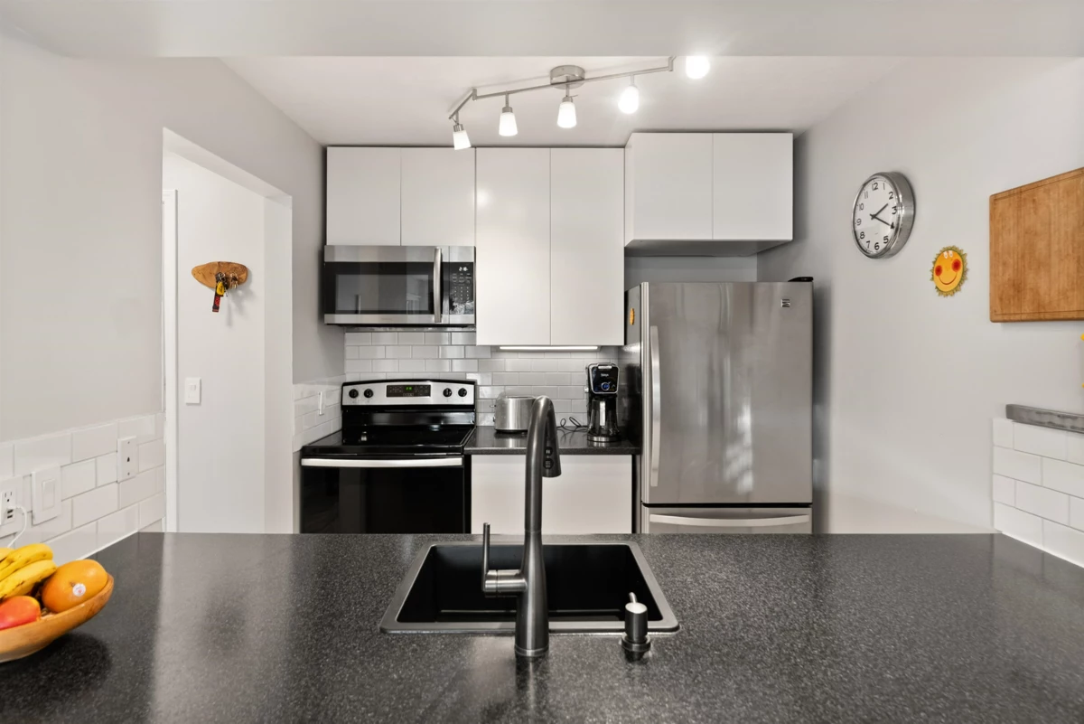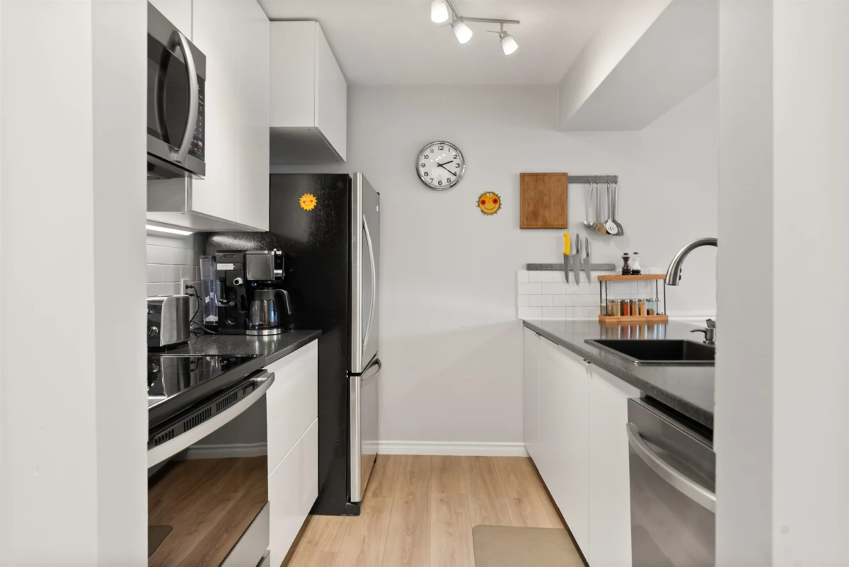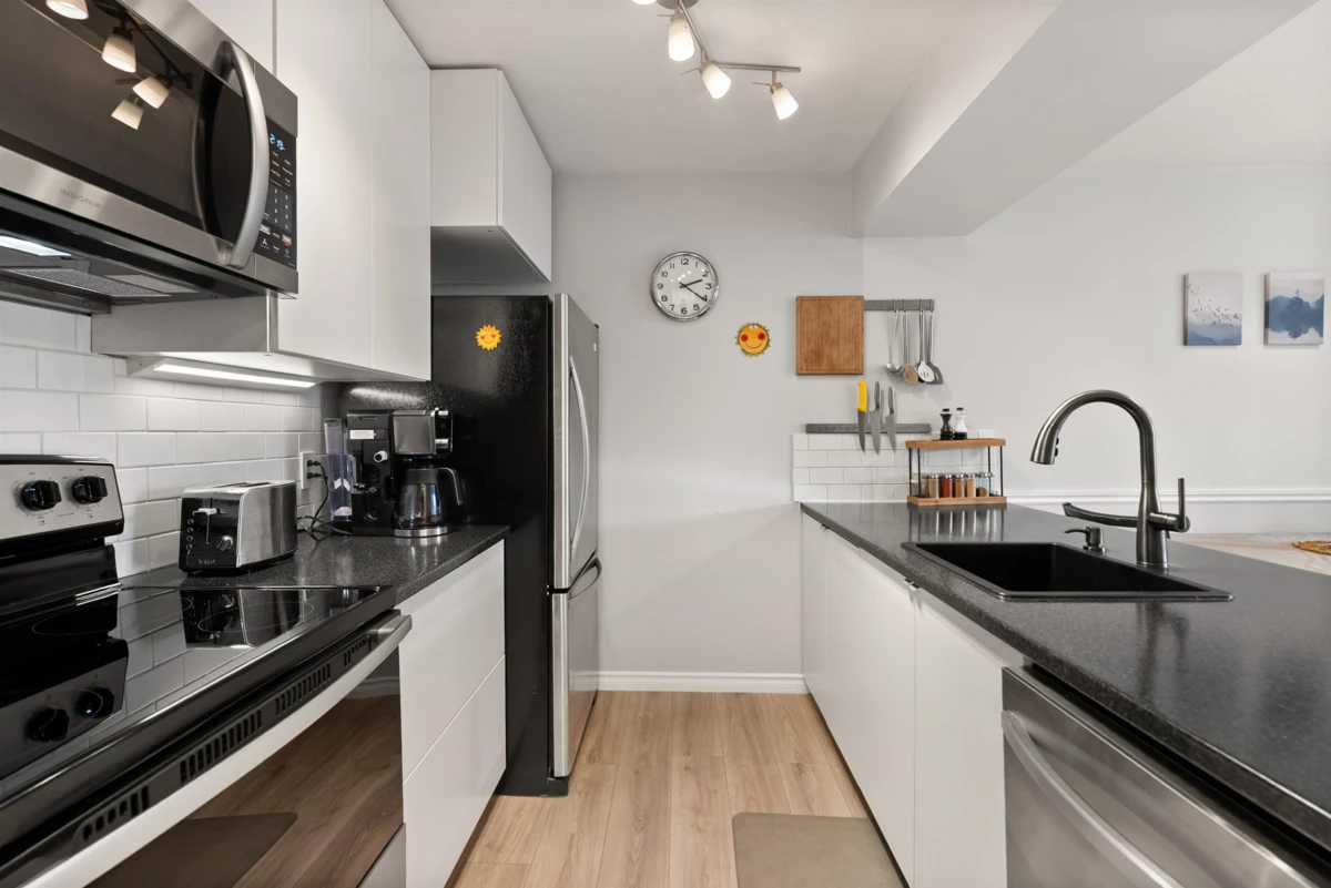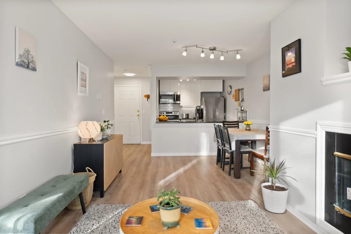 Bright, clean, and move-in ready 2 bed/2 bath condo offering 822 sq ft of comfortable living in a well-located Port Coquitlam building. Enjoy an updated kitchen with newer appliances, refreshed bathrooms, and updated flooring throughout for a modern, low-maintenance feel. The open living/dining area is welcoming and functional, with great natural light that makes the home feel airy and inviting. Two well-separated bedrooms provide flexibility for families, roommates, guests, or a dedicated home office. Convenient in-suite laundry completes the package. Walk to downtown PoCo shops, restaurants, parks, trails, and everyday services, with transit close by for easy commuting. A great option for first-time buyers, downsizers; a turnkey property in a central, walkable location.