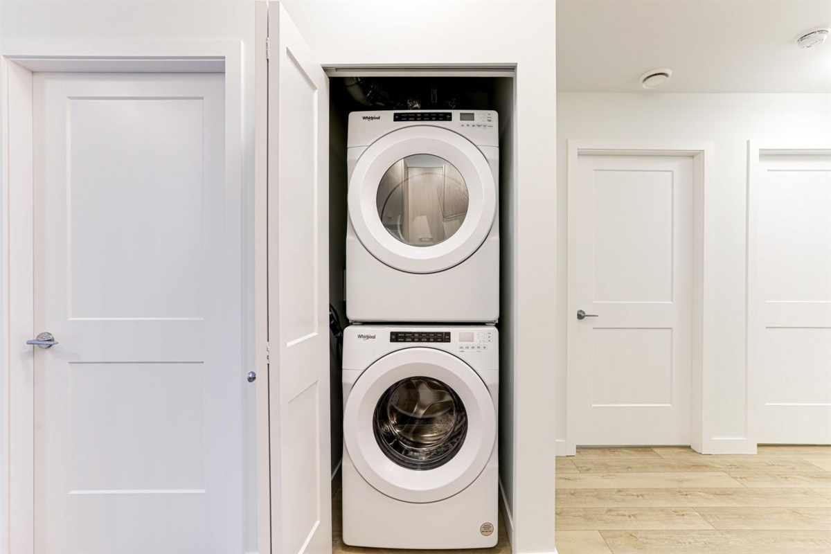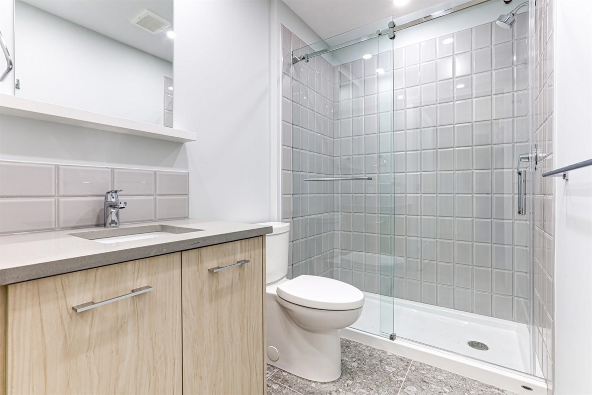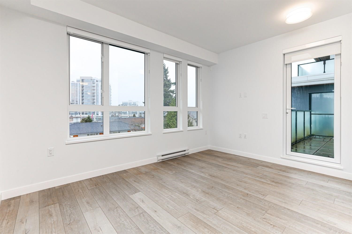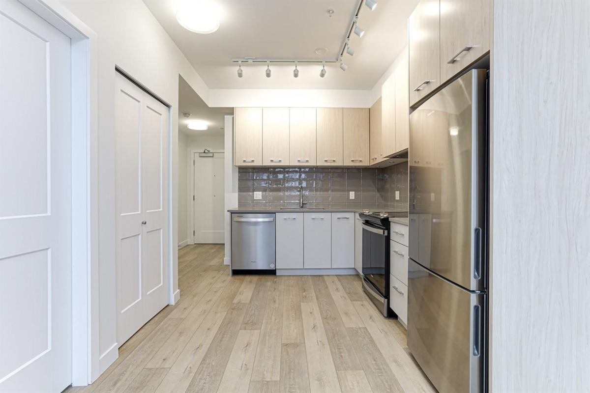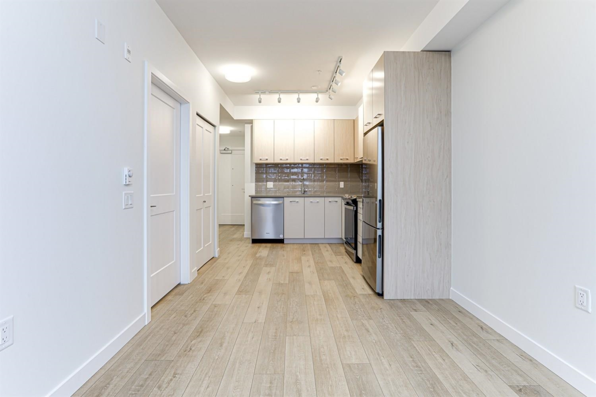 Welcome to Clarendon Heights a 4 storey mid rise building by local developer, Fully Homes that completed in 2023. The brand new unit is centrally located, tucked away off busy Kingsway and only a 3min drive or 15 min walk from Nanaimo & 29th Ave station. This upper floor home has 2 bed, 2 bath & a large den. The open floor plan measuring 798sf offers a modern and warm Scandinavian feel. The suite has quartz countertops, unglazed porcelain backsplashes, chrome & stainless steel appliances in the kitchen. The warm, modern & timeless feel welcomes its new owner to add their personal touch creating a unique home with a North exposure and peek a boo views. This home comes 1 EV roughed parking and 2 bike storage lockers.