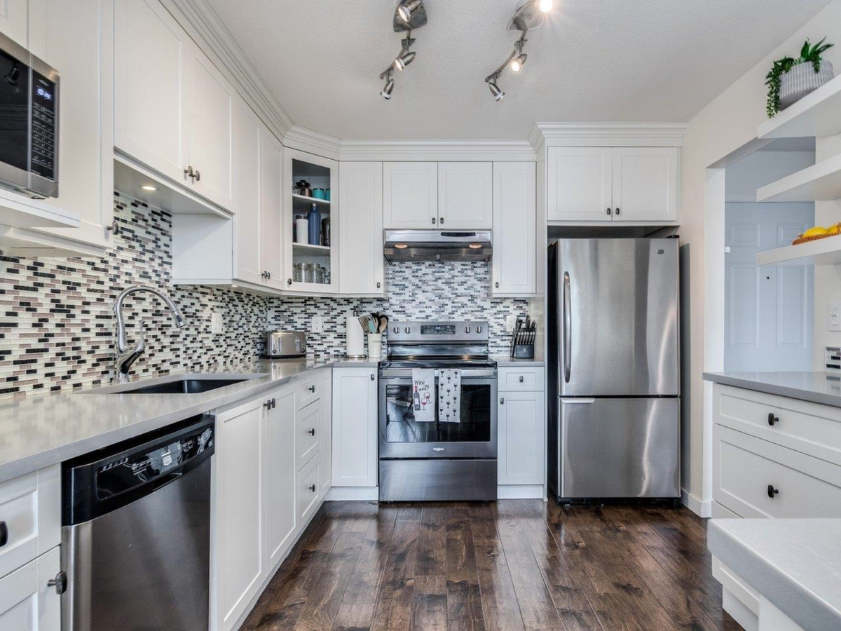 BEAUTIFUL TOP UNIT WITH STYLE. Welcome to you private sanctuary! This stunning 2 bedroom, 2 bath top unit condo boasts 1,128 square feet of thoughtfully designed living space, soaring high ceilings and an abundance of natural light that pours in through expansive windows. Perched on the top floor, this home offers a bright and airy open-concept layout, perfect for both relaxing and entertaining. The spacious living and dining area seamlessly connects to a sleek, modern kitchen, creating a natural flow throughout. Tall ceilings amplify the sense of space while stylish finishes provide a contemporary yet comfortable ambiance. The primary suite features ample closet space and a private ensuite, while the second bedroom offers flexibility. DON'T MISS OUT, call for a private showing.