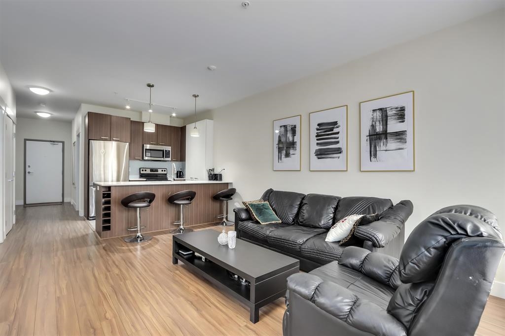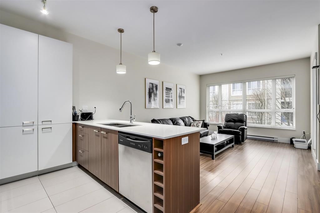 Welcome to Valore on the Park! Rarely available, this spacious corner 1 bedroom + den has over 700 SQ/FT of living space. The unit has a perfect layout with a semi en-suite bathroom, his/hers closets, stainless steel appliances, built in wine storage, soft close cabinets, 9 Foot ceiling, in suite laundry, and more. The unit features a good sized den, which can be used as a jr bedroom/guest room or be used as an office. Enjoy your morning coffee on your large, private, covered balcony. The complex has a nice garden, Bike storage and a gym. 2 pets allowed. The unit comes with 1 parking and 1 locker as well. The location can't get better than this! Close to Transit, West Coast Express, Schools, Gates Park, Lougheed Highway, PoCo Trail, and more! Call for your private appointment!