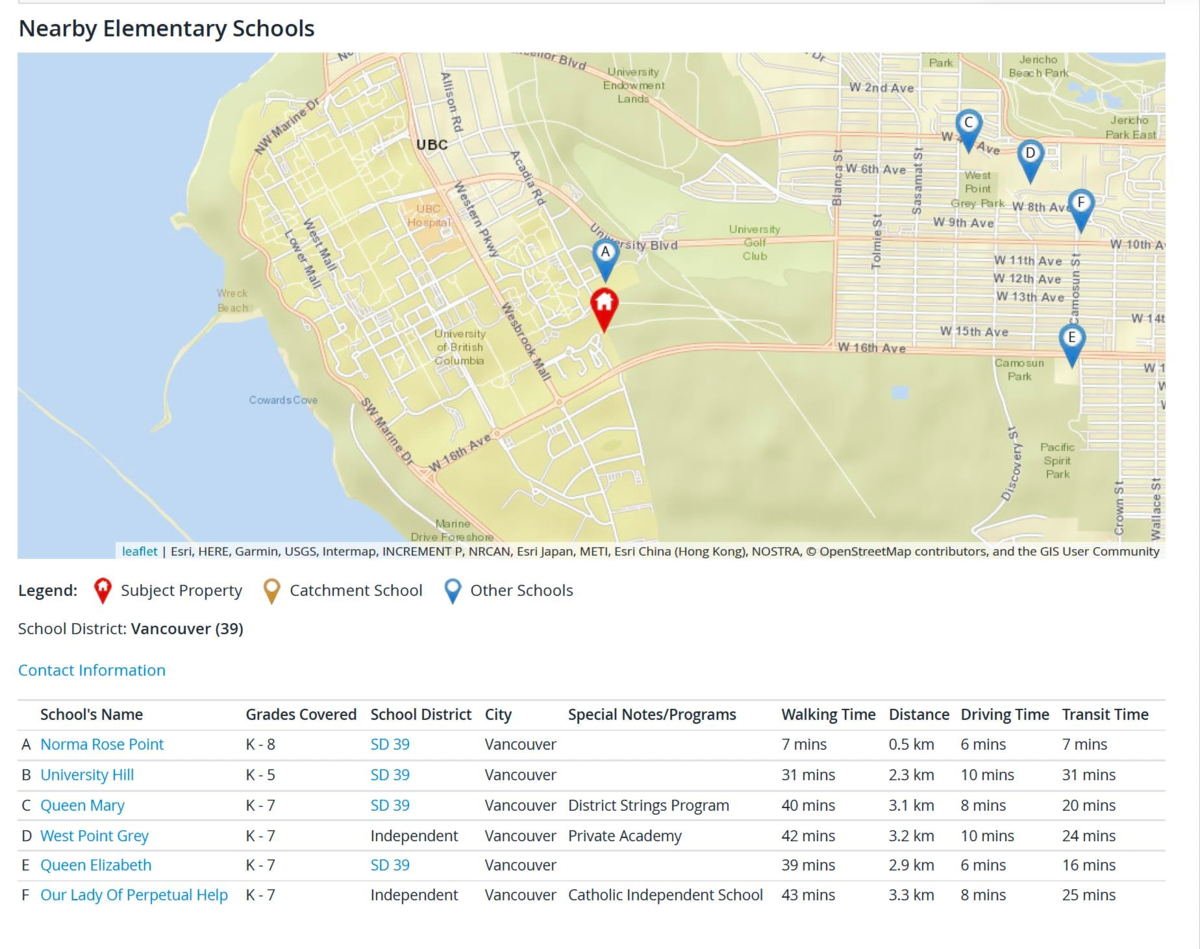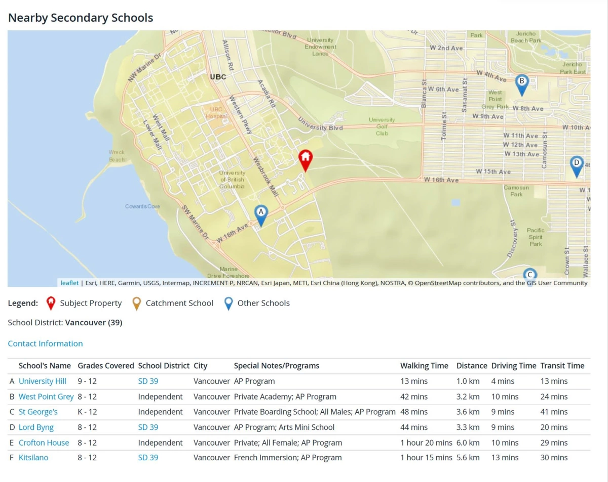 Information includes BC Government Open License data; school details change often and are offered solely as general guidance.