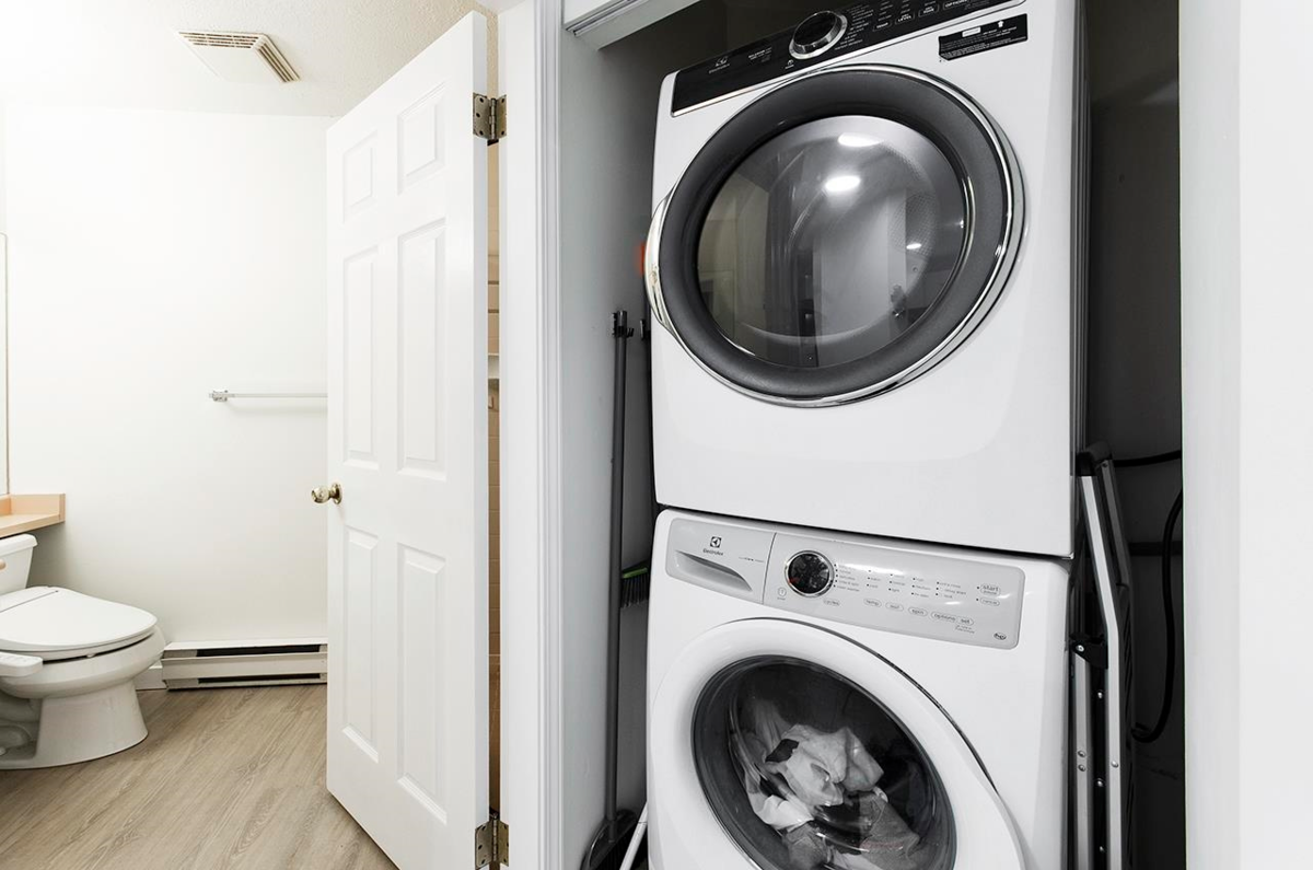 Spacious penthouse SE-facing 2-bedroom, 2-bathroom home offering 956 sq ft of well-designed living space, centrally located on General Currie Road. This renovated unit includes one parking stall and one storage locker. Enjoy a generous 144 sq ft balcony overlooking a peaceful greenbelt, with BBQs permitted. Conveniently located close to transit, Garden City Elementary and Plamer Secondary.