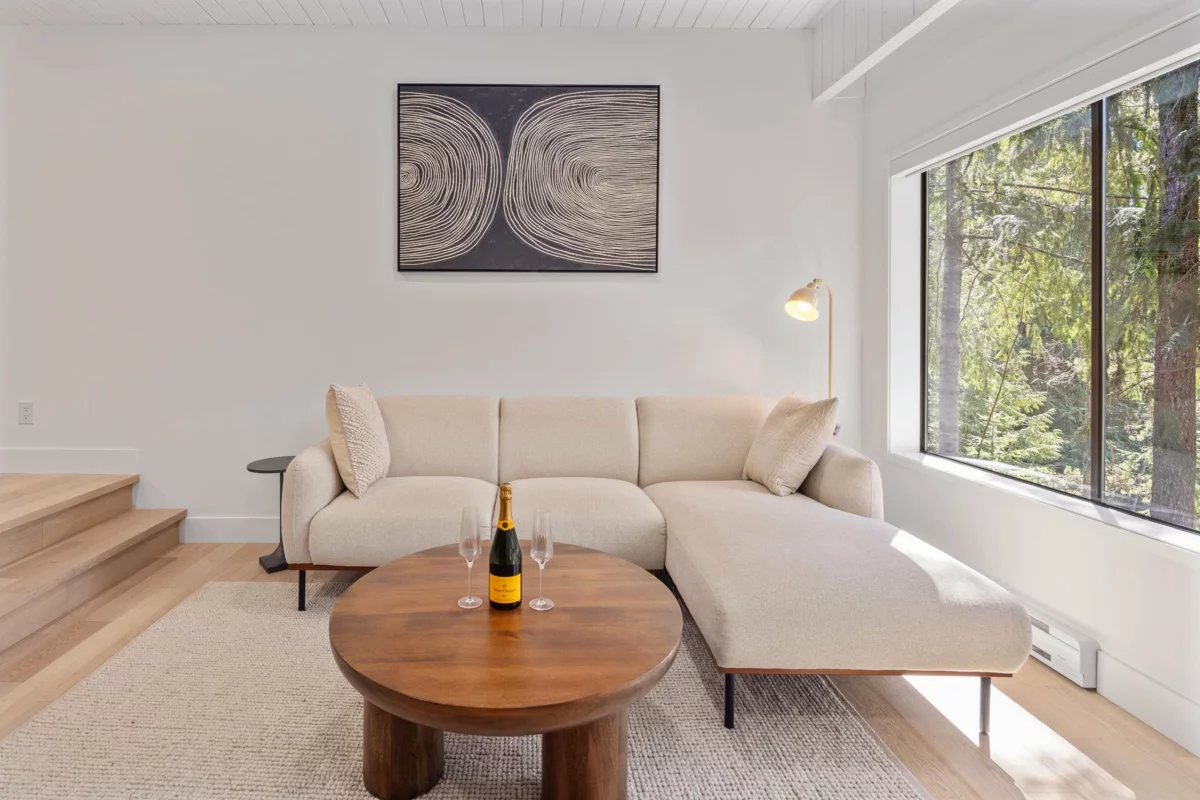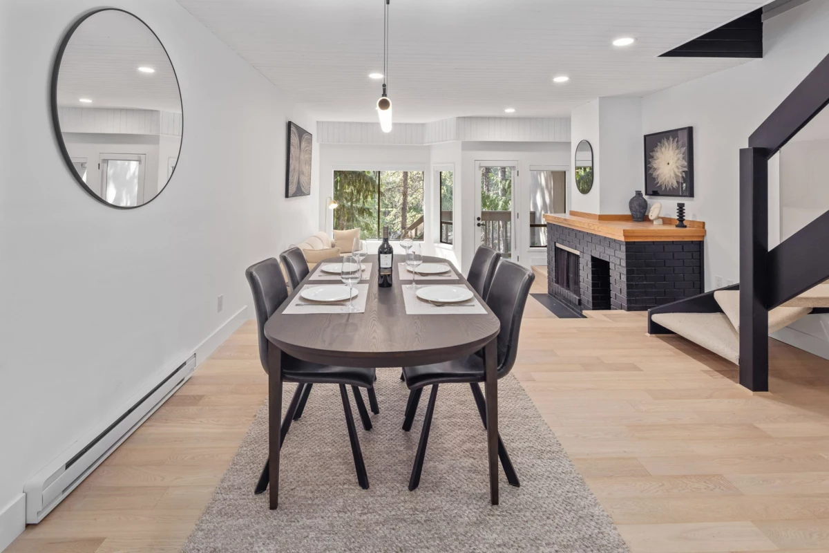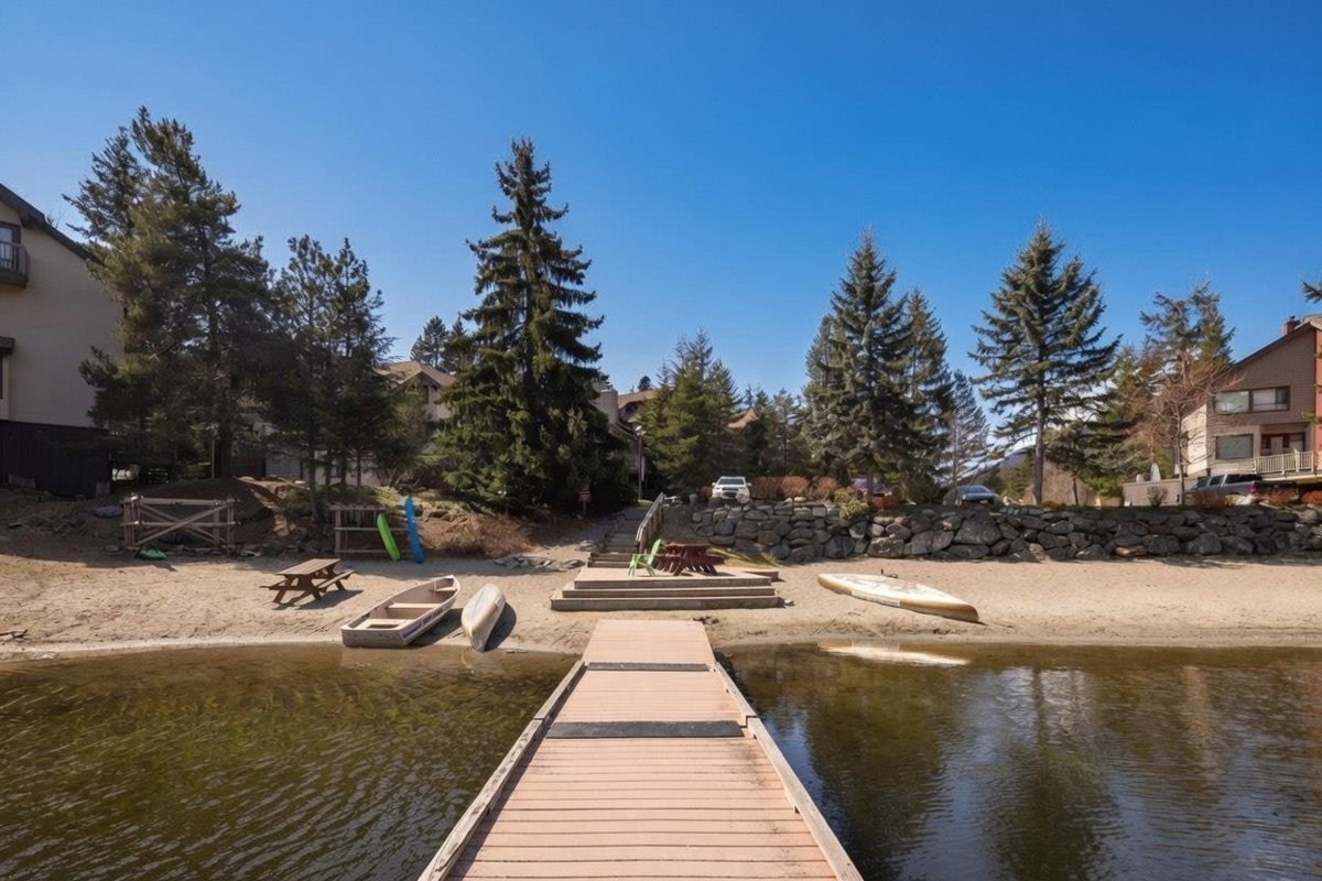 Set on the shores of Alpha Lake, this exquisitely renovated 3-bed, 2-bath townhouse in Twin Lakes offers a perfect blend of luxury and alpine serenity. White oak hardwood floors flow through an open living space anchored by a striking wood-burning fireplace. The custom kitchen with oak cabinets and Caesarstone countertops is designed for effortless entertaining. Step onto your deck to take in breathtaking inlet views. Spa-inspired bathrooms feature heated floors, quartz countertops, a soaker tub, and private sauna. Twin Lakes offers a private beach, dock, outdoor pool, tennis court, and ski shuttle to the gondolas. Just 5 minutes from Creekside, this is the ultimate year-round retreat or weekend getaway. Embrace the Whistler lifestyle, surrounded by nature and adventure at your doorstep.