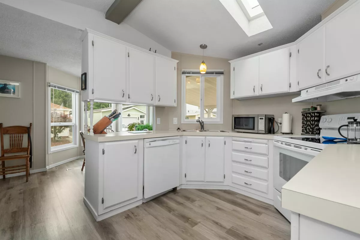 Welcome to Rainbow Estates, a beautifully maintained 40+ community in the heart of Chilliwack. This sought-after complex offers a clubhouse, RV parking, and is conveniently close to shopping and the hospital. Step inside to a bright, well-kept single wide featuring an open layout, modern finishes, and updated flooring and paint. Enjoy outdoor living with a large covered patio, a handy 10x10 workshop, and a wonderful garden space perfect for relaxing or entertaining. A fantastic opportunity in a welcoming, well-cared-for community!