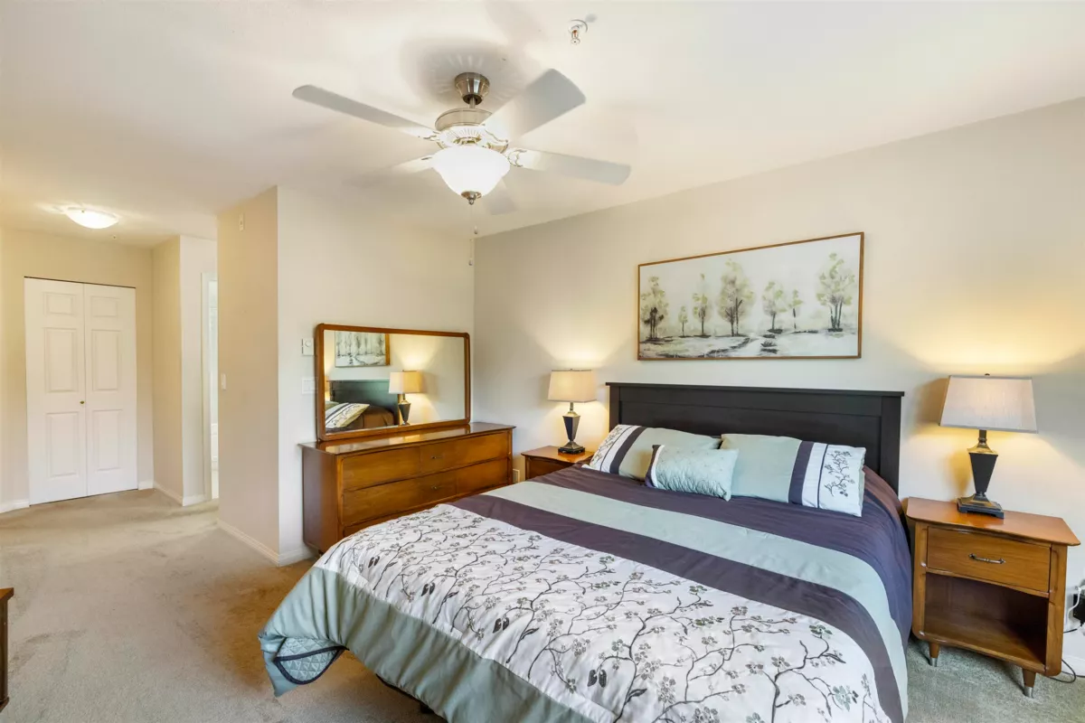 Welcome to the SANDS 2 in desirable South Surrey! This spacious corner unit offers over 1,200 sq ft of bright, open living with 2 bedrooms and 2 full baths. Meticulously maintained and ultra clean, the home features a smart floorplan with generous room sizes and plenty of natural light. Enjoy a private covered balcony, perfect for morning coffee or evening relaxation. Strata fee includes gas fireplace & hot water. Well maintained building includes 1 underground parking stall and storage locker for added convenience. Just steps from Southpoint Shopping, restaurants, transit, and quick access to Hwy 99 for easy commuting. A fantastic opportunity for downsizers, first-time buyers, or anyone looking for a well-kept home in a prime location. A great place to call home!