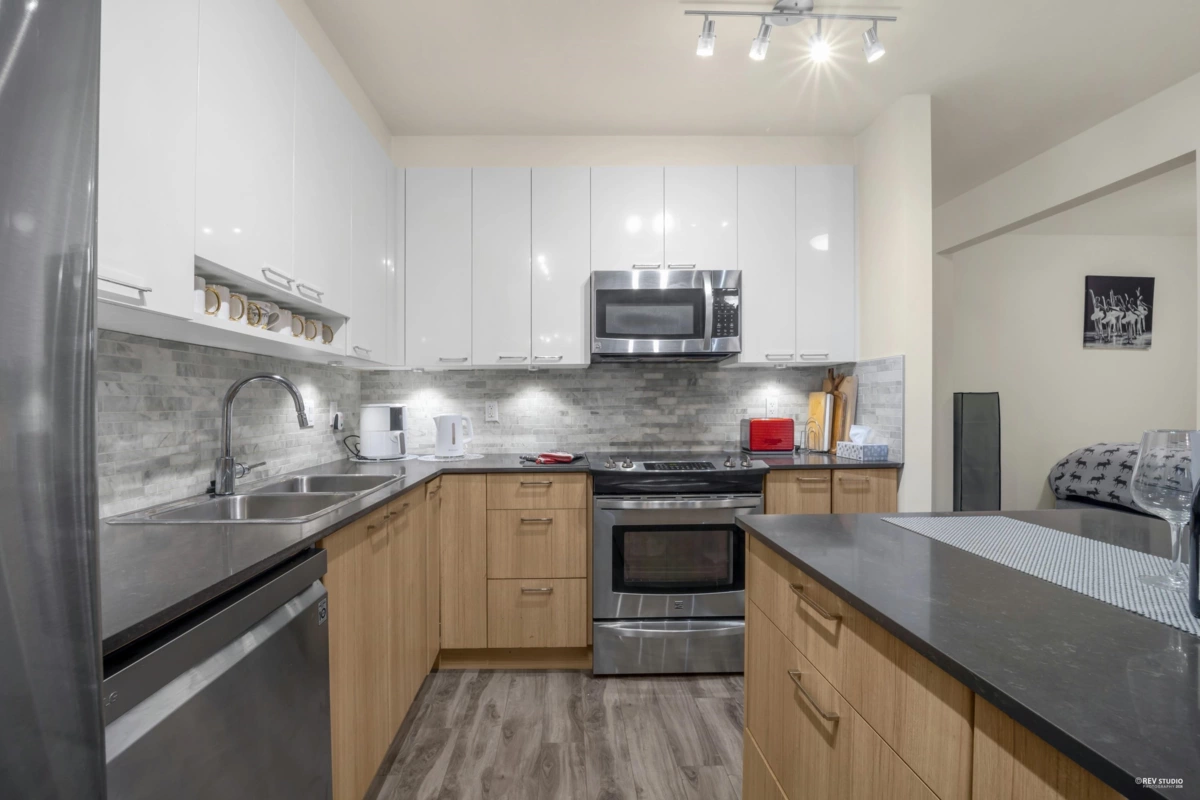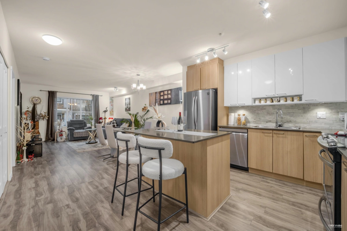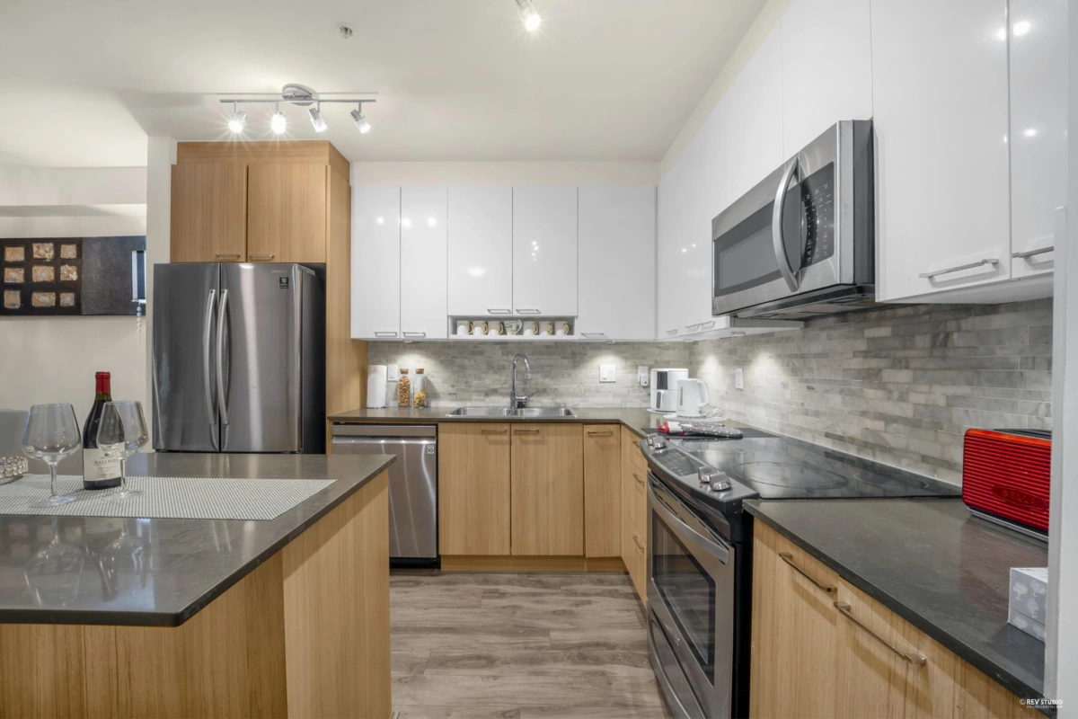 Welcome to this bright and modern 1-bed + junior suite condo in Maillardville, Coquitlam! Just minutes from IKEA, Hwy 1, and Braid SkyTrain, this home offers exceptional convenience. Features include an open layout, sleek kitchen with quartz counters and stainless steel appliances, updated laminate flooring, and large windows. The junior suite is ideal as a home office, guest room, or nursery. Enjoy a private balcony, 4-piece bath, in-suite laundry, 1 parking, locker, gym, and amenities room. Pet-friendly and rentals allowed. Steps to shops, dining, and parks!