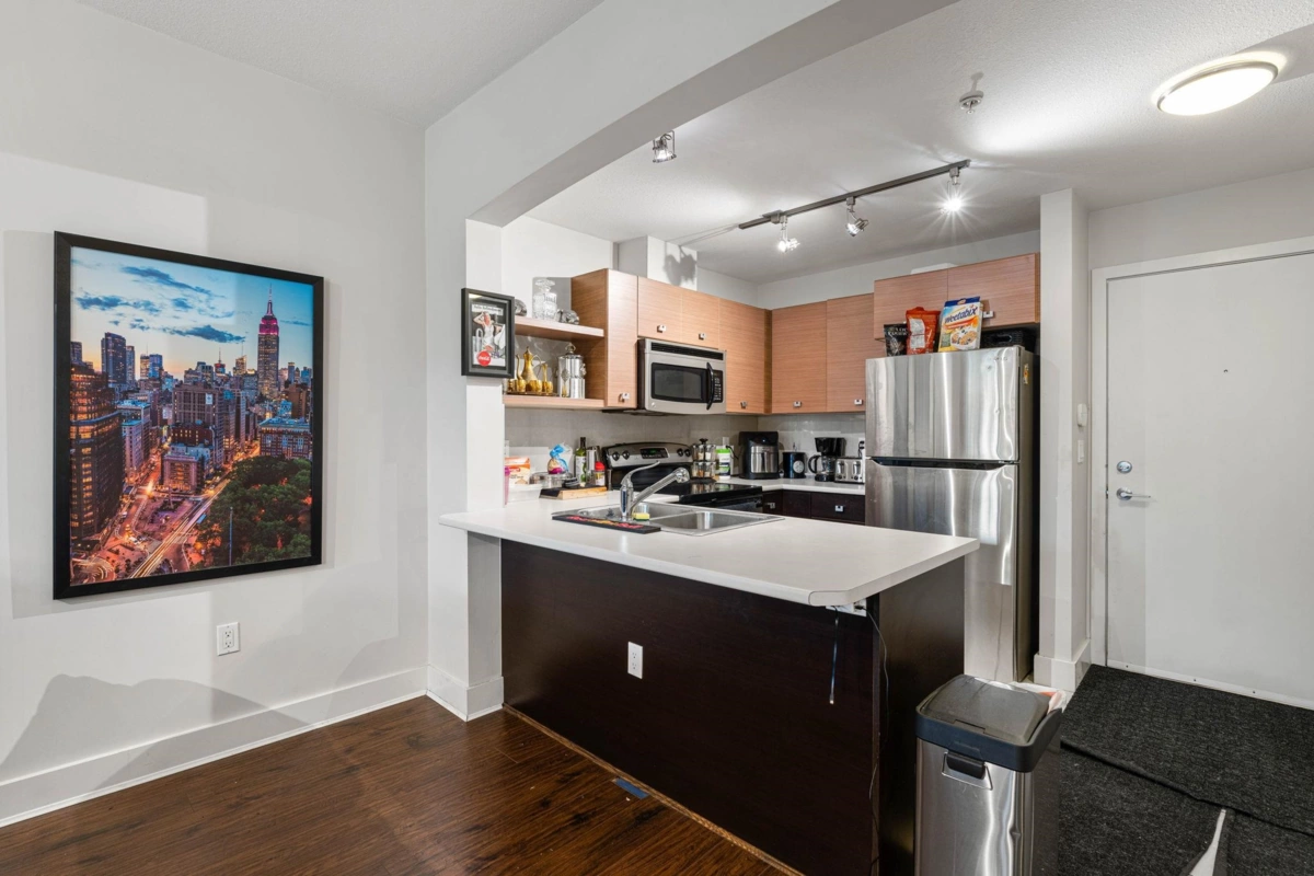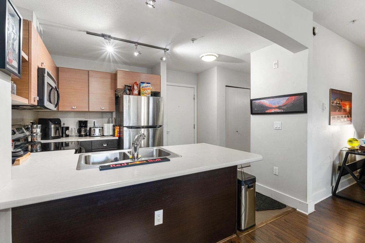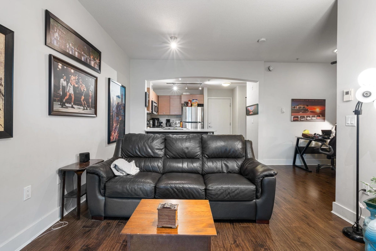 Opulent living at Salus, crafted by Adera Development. This 1 bed/den offers generous & inviting spaces, complete with a/c, ss appliances, and ample storage, spanning over 650sqft, with an abundance of natural light. Expansive rooftop patio, with a cozy fireside area/bbq space. The amenities are unparalleled, boasting a clubhouse with a full kitchen, pool table, lounge, and library/reading room. Experience luxury with a heated outdoor saltwater pool, infrared saunas, steam rooms, soothing hot tub, fully equipped fitness centre, tranquil yoga room, or indulge in spa treatments at the massage facilities. Situated within walking distance to transit, Kwantlen University, shopping, restaurants, and more. An excellent investment opportunity or or an ideal choice for first-time homebuyers.