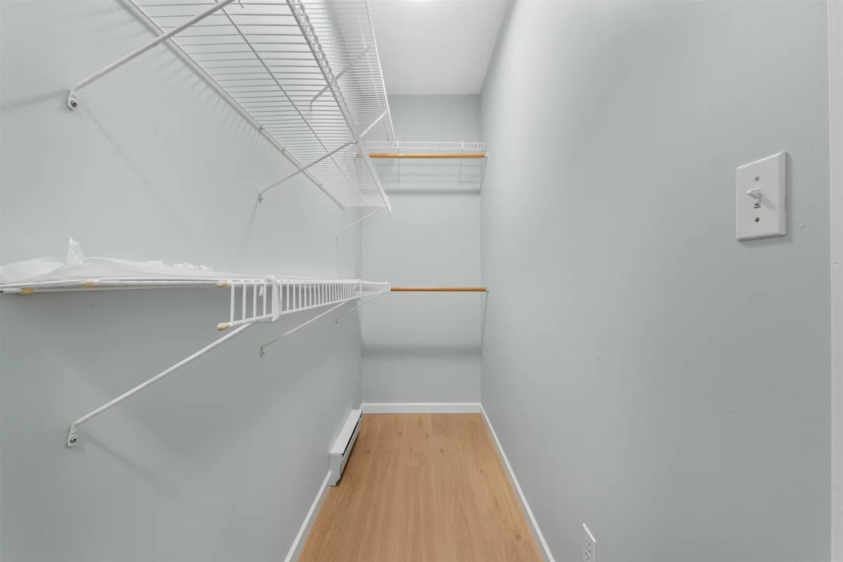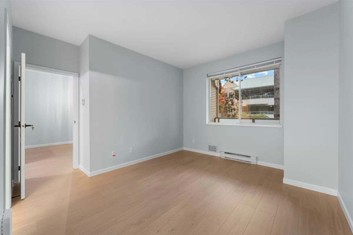 Beautifully Maintained 1-bdrm Corner Unit in Prime Burnaby's South Slope, featuring new laminated wood flooring and fresh paint throughout. Large bedroom includes a walk-in closet, offering plenty of storage space. The building has updates in recent years, including roof, piping, hallway carpets, and exterior balconies/decks. Nestled in quiet South Slope neighborhood, this home is just steps from greenbelt trails, parks, SkyTrain station, Recreation Center, bus routes, and local food markets — an ideal blend of convenience and tranquility. 2 parkings, 1 locker, ample visitor parkings. Perfect for first-time buyers or downsizers seeking comfort, location, and value! Come see it yourself. open: Sun Nov 16, 2-4pm.