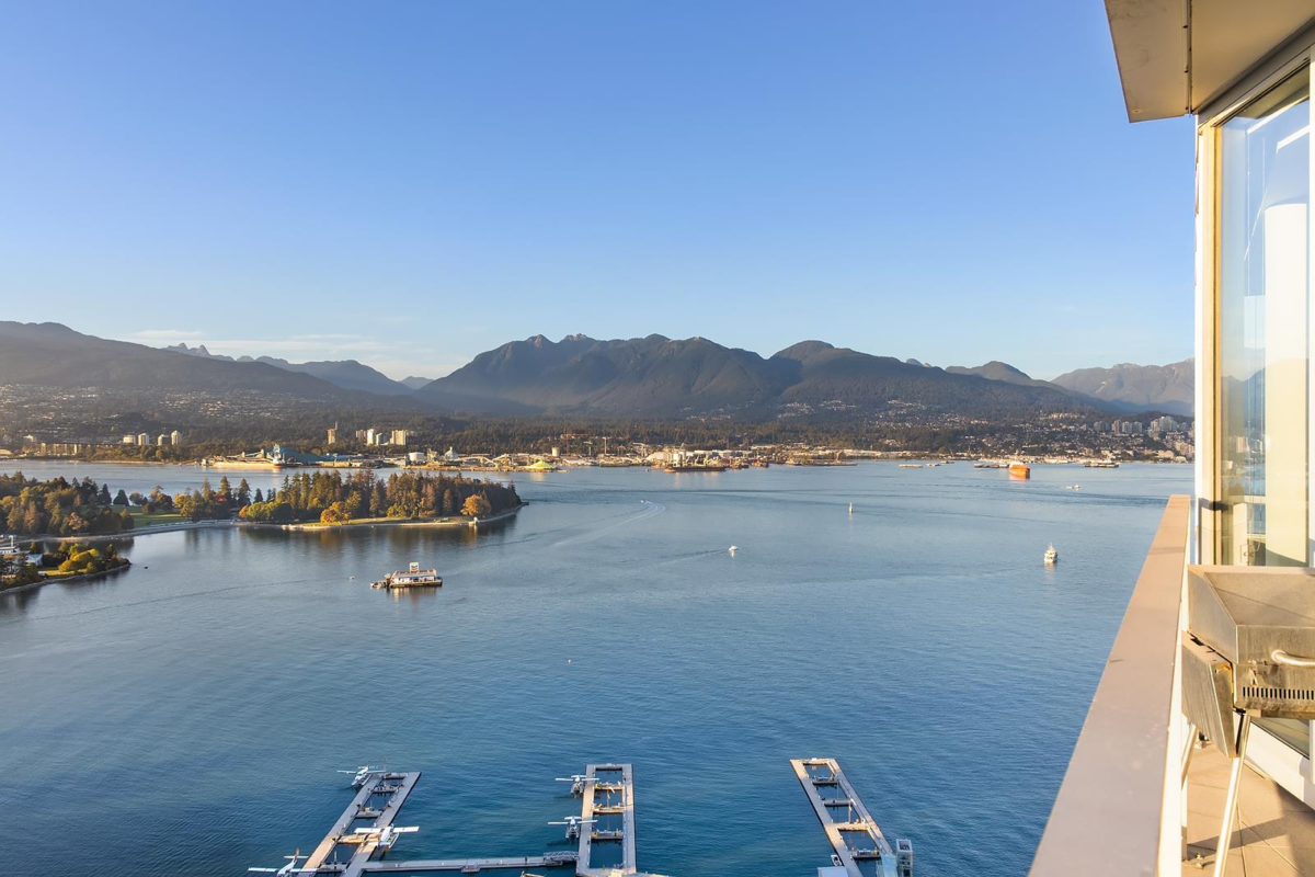 RARELY AVAILABLE “02” FLOOR PLAN AT ROGERS TOWER! This very special corner residence offers unobstructed water and mountain views from English Bay to the North Shore Mountains, capturing both sunrises and sunsets. With over 2,000 sq. ft., this bright 2 bed + den home features an open floor plan, 9ft ceilings, and floor-to-ceiling windows showcasing panoramic views of Stanley Park, Lions Gate Bridge, Harbour Inlet, and city skyline. The gourmet kitchen is equipped with top-of-the-line stainless steel appliances, range top, oversized fridge, wine rack & cooler. Spacious primary suite, generous living/dining areas, and Coal Harbour’s most prestigious waterfront address. Amenities include 24hr concierge, 3 high-speed elevators, and steps to the seawall, parks, shops, and restaurants.