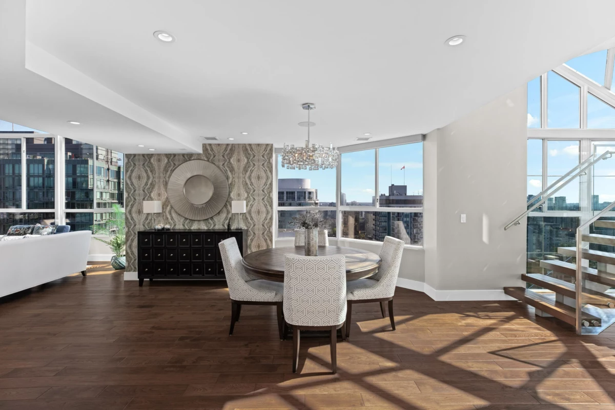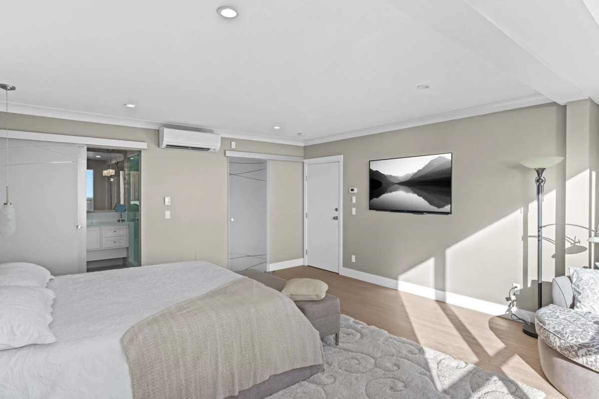 Welcome to this double level 1/2 floor Penthouse in the quiet West End. Offering both Northern/Southern water & mountain views, #3102 is highly versatile offering two completely different experiences. With entertaining on the ground level, you have a seamlessly open concept floor with outdoor vistas to both bodies of water. From the Chefs gourmet kitchen with abundance of storage, thermadore appliance package, 6-top bar seating and accordion patio door. To the soaring 17'6ft formal living room ceiling height & your piano atrium opening directly up to the 2nd level library, the entertaining level does not disappoint. All three generously sized bedrooms are up and offer ensuites (primary with steam shower), your formal reading nook & complete home automation (lights/blinds) & much more!