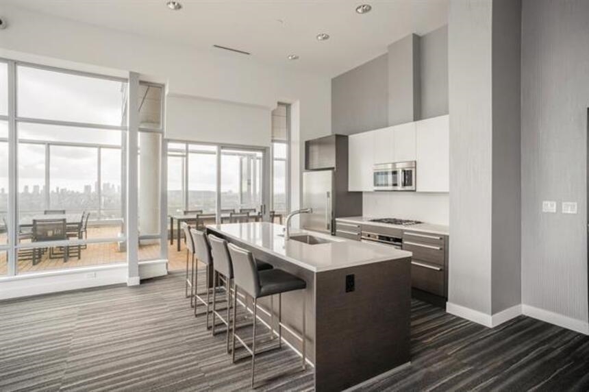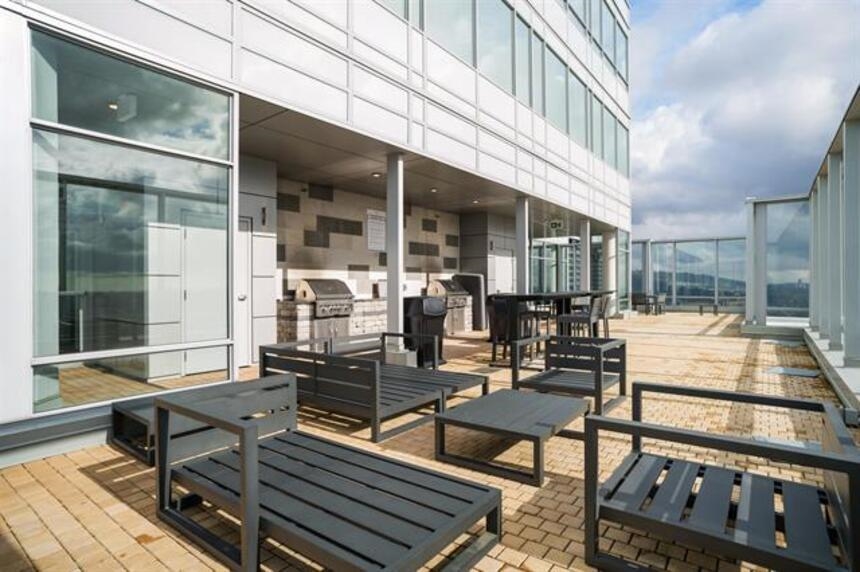 Altus at SOLO District. This NORTH facing corner unit 1-bed + den (HUGE den) comes with an optimal layout & gorgeous views from 31 floors up! Lots of features including stainless steel appliances, loads of natural light, a gas range, & a geothermal heating/cooling system for year-round comfort. Enjoy the 100+ sqft balcony, offering AMAZING VIEWS of the North Shore Mountains, Brentwood & west to the downtown Skyline. Amazing amenities such as a concierge service, fully equipped gym, basketball court & a 360-degree rooftop patio/party room. Located just steps from Brentwood Mall, Skytrain & tons of other top-notch amenities. Pets, rentals, parking & locker. Do not miss out!