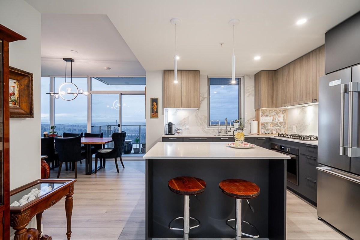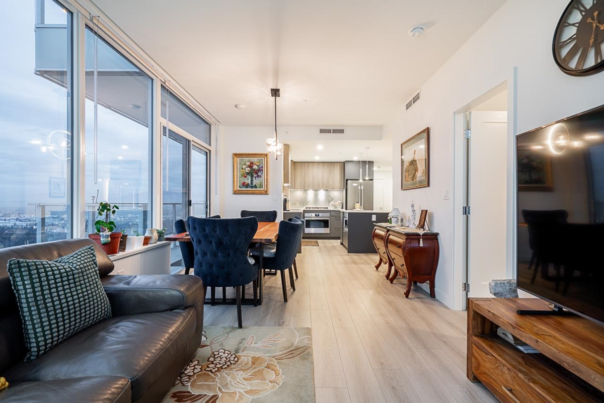 Welcome to The Towers! This bright and modern 2 Bed+ Den Corner Unit is the epitome of urban living with an amazing unobstructed panoramic view. The view dances through the seasons—blushing with spring’s awakening, deepening into summer’s lush embrace, burning in autumn’s gold, and finally resting beneath winter's quiet veil. Bathed in natural light, it features high-end appliances, Air-Conditioning, and an efficient layout that maximizes space and functionality. Located in a well-built concrete high-rise, the unit comes with TWO parking stalls and a storage locker for added convenience. Situated in a prime location close to schools,shopping,and transit, you'll have everything you need right at your doorstep. Enjoy access to incredible building amenities, including a lounge, gym and more!