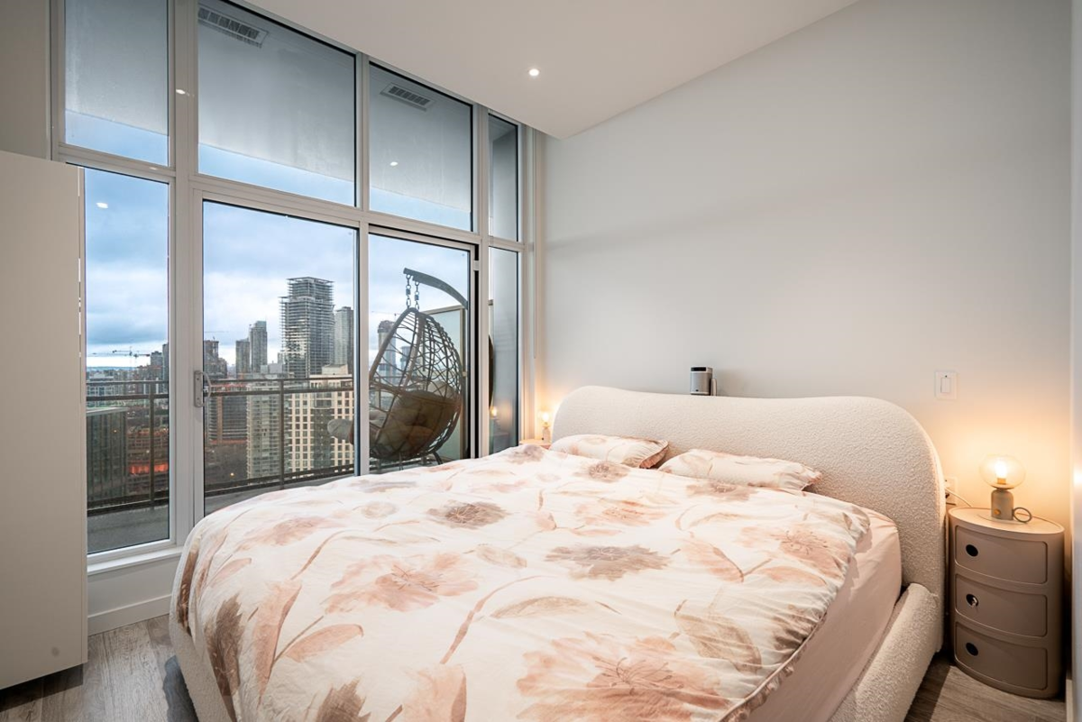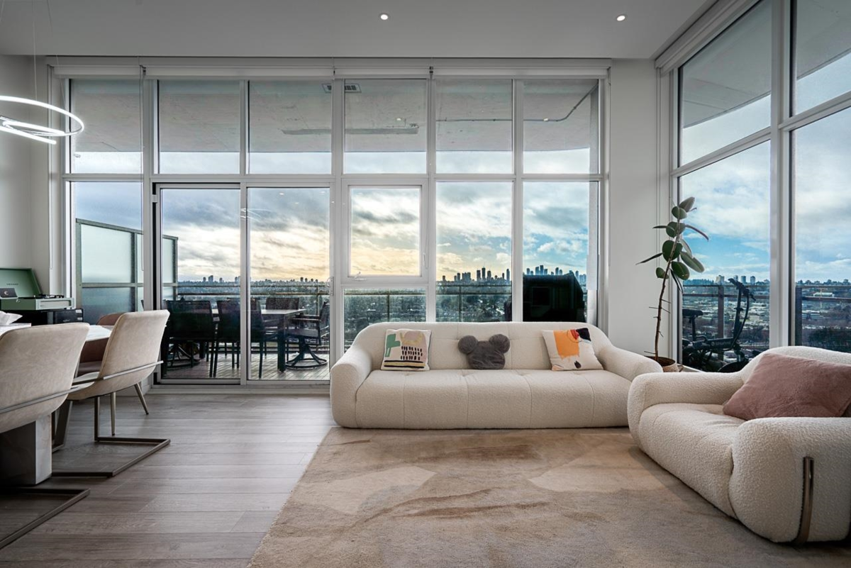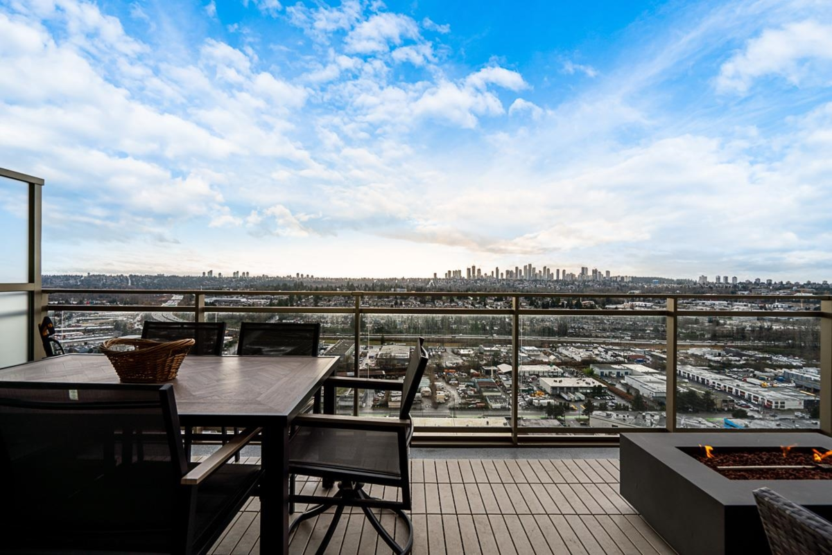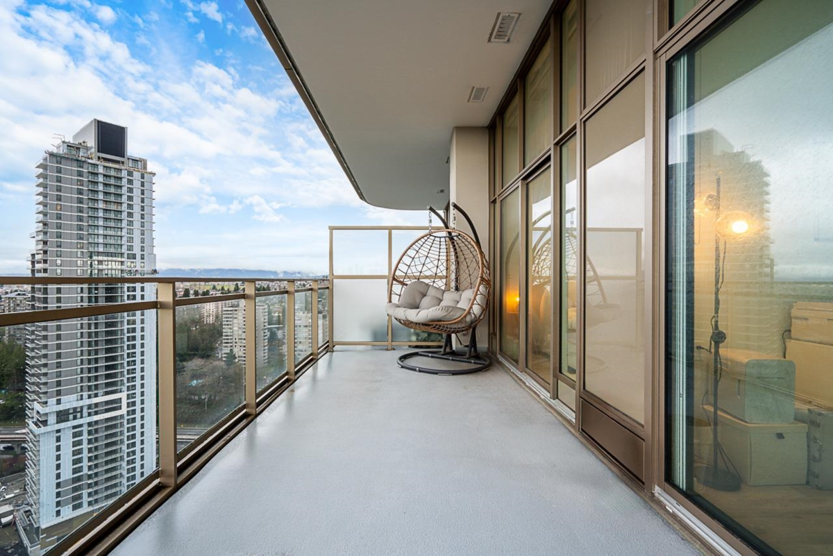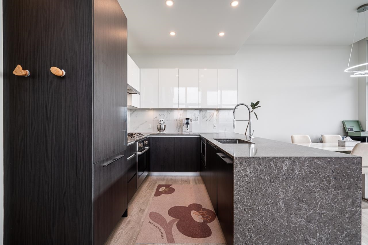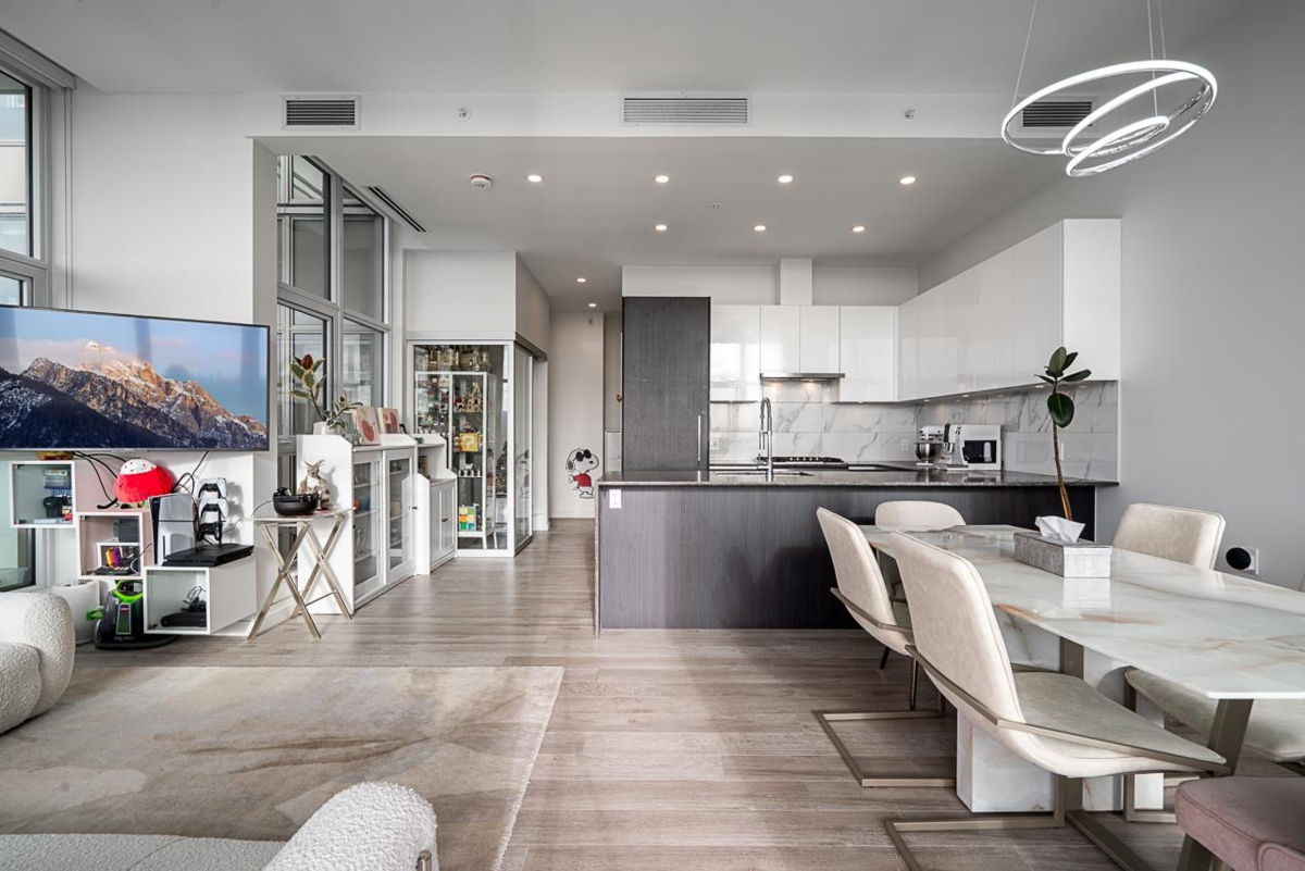 Luxury living in the stunning ETOILE sub-penthouse by Millennium Development, S/W facing with unobstructed views of Mount Baker and Metrotown. This elegant 2 bed, 2 bath plus den home features 10.8 ft ceilings, floor-to-ceiling windows, air conditioning, and refined modern finishes. The chef-inspired kitchen offers a waterfall island, Bosch appliances, and quartz countertops, complemented by spa-like bathrooms. Enjoy a 240 sq ft covered balcony with heated floor and ceiling. Over 37,000 sq ft of rooftop amenities include fitness centres, lounges, steam rooms, a 50 ft pool, hot tub, and BBQ area. Steps to Holdom SkyTrain, shopping, dining, Burnaby Lake, Christine Sinclair Community Centre, and Burnaby Tennis Club. Side-by-side parking, locker, Modo car share. Pets and rentals allowed.