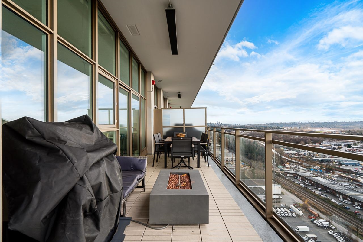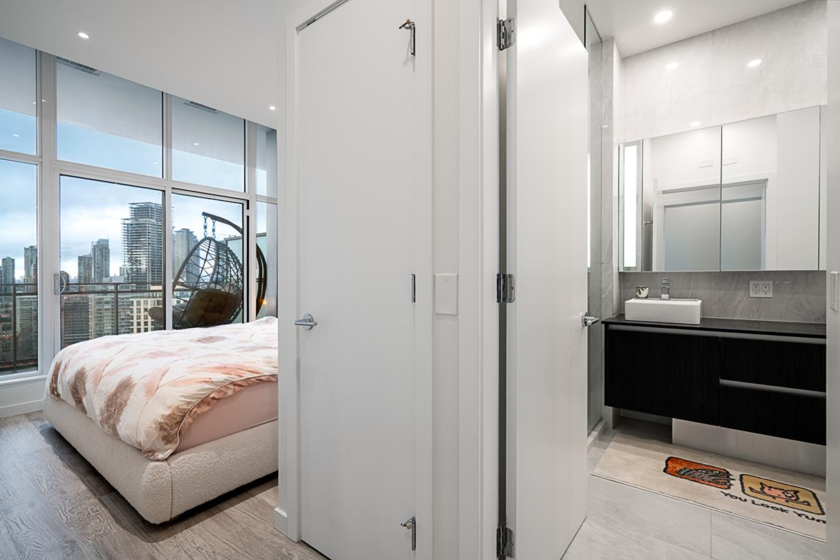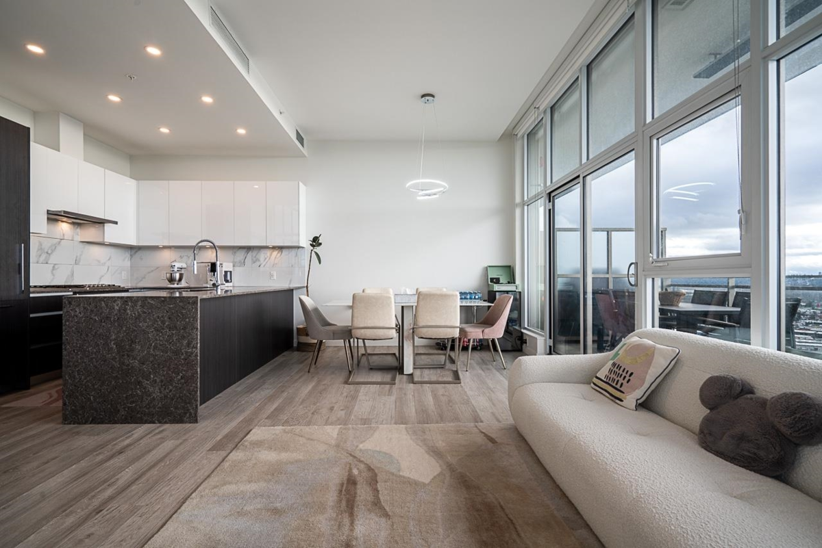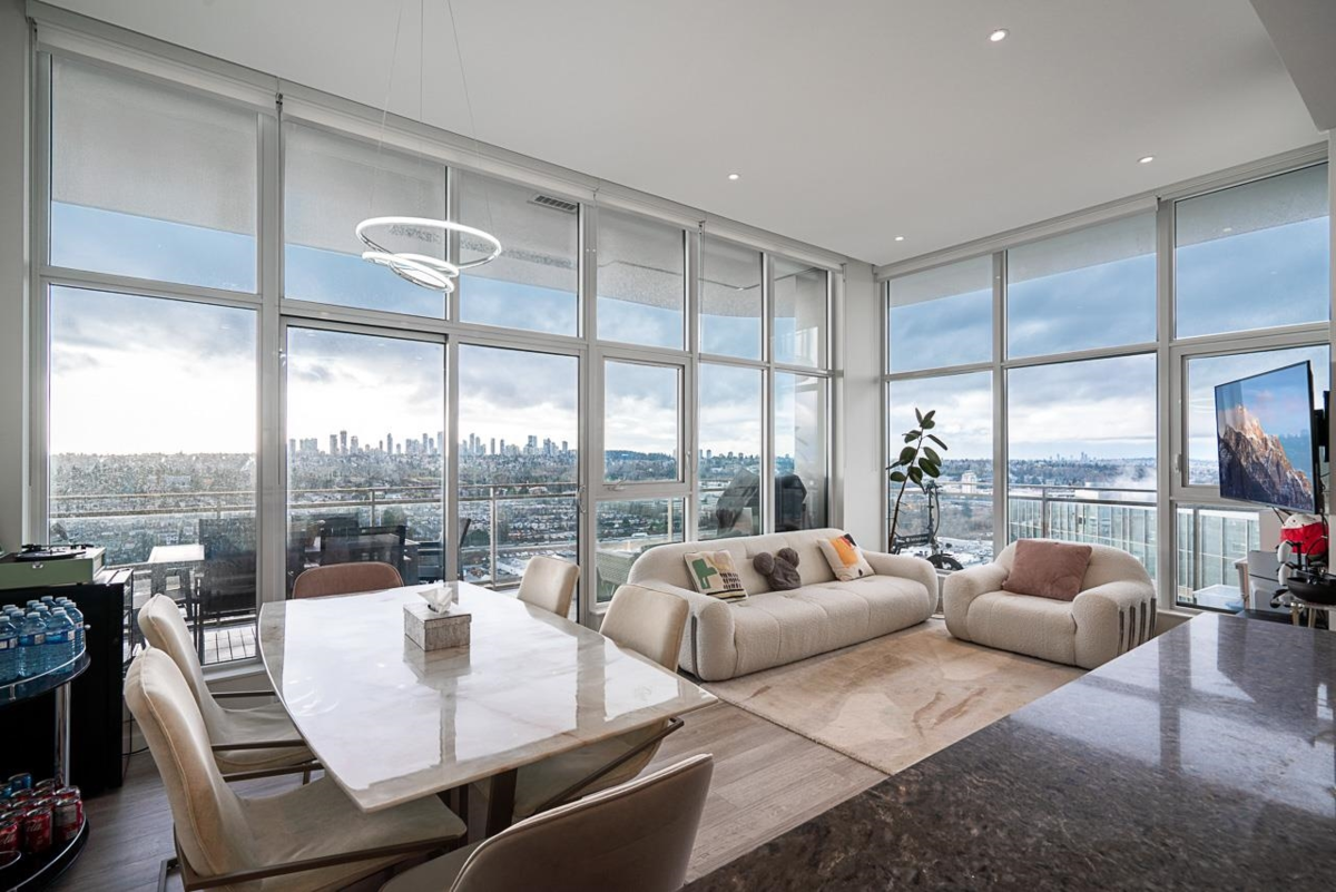 Luxury living in the stunning ETOILE sub-penthouse by Millennium Development, S/W facing with unobstructed views of Mount Baker and Metrotown. This elegant 2 bed, 2 bath plus den home features 10.8 ft ceilings, floor-to-ceiling windows, air conditioning, and refined modern finishes. The chef-inspired kitchen offers a waterfall island, Bosch appliances, and quartz countertops, complemented by spa-like bathrooms. Enjoy a 240 sq ft covered balcony with heated floor and ceiling. Over 37,000 sq ft of rooftop amenities include fitness centres, lounges, steam rooms, a 50 ft pool, hot tub, and BBQ area. Steps to Holdom SkyTrain, shopping, dining, Burnaby Lake, Christine Sinclair Community Centre, and Burnaby Tennis Club. Side-by-side parking, locker, Modo car share. Pets and rentals allowed.
