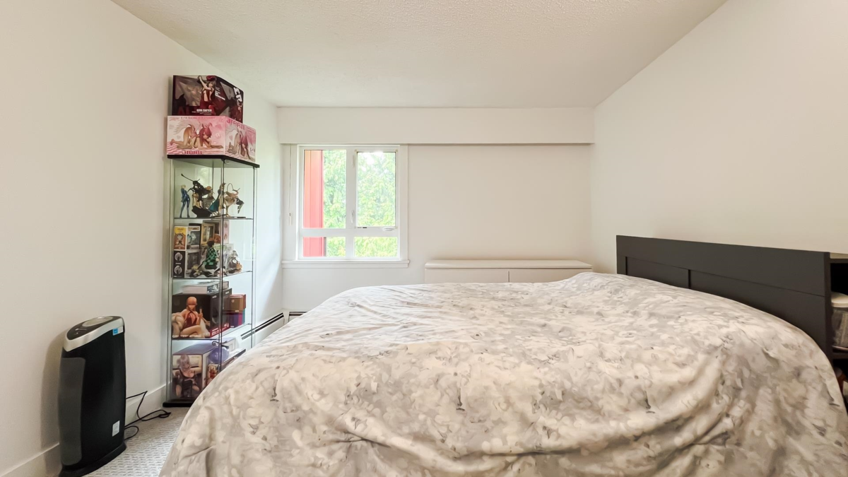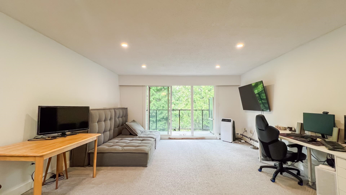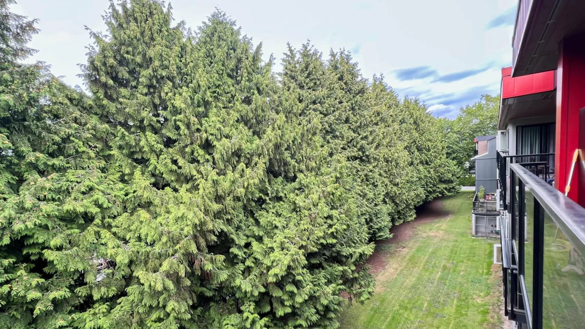 Daniels Manor - the best value in the East Cambie neighbourhood! This bright and spacious top-floor 801 sqft one-bedroom unit is a quiet inside home featuring a functional floor plan, a large living room, generously sized bedroom that easily fits a king-size bed, and a large balcony with a serene treed view. Renovations completed in 2021 include a new bathroom, light fixtures, carpet, fresh paint, and countertops. The building has undergone extensive updates, including the building envelope, rain screen, roof, elevator, boiler, balconies, windows, sliding door, fencing and landscaping. The strata fee covers hot water and heating. One parking stall and one storage locker are included. Convenient location in a serene suburban setting beside Albert Airey Park and playground.