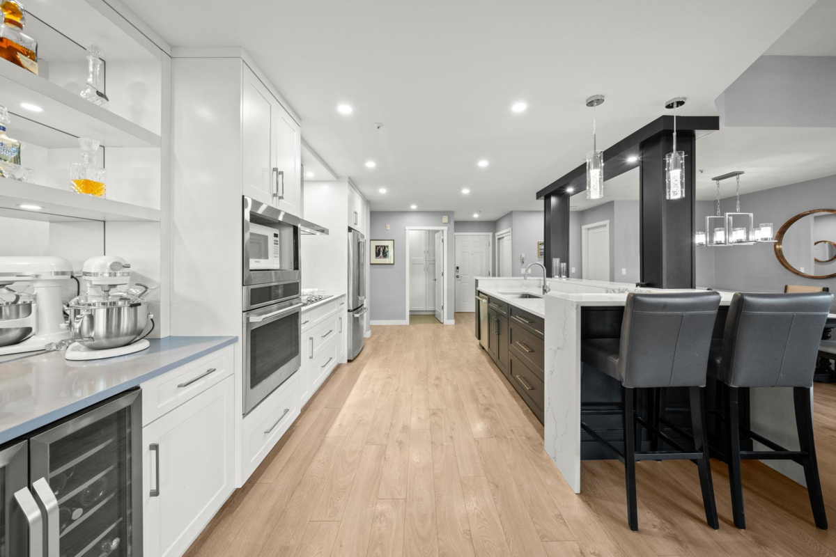 Stunning top-floor corner home in the heart of Lynn Valley. This beautifully renovated unit offers the perfect blend of style, comfort, and location. At the heart of the home, a chef’s kitchen features an oversized island ideal for entertaining, complemented by rich hardwood flooring throughout. Soaring vaulted ceilings and a cozy gas fireplace create a bright, inviting living space, while thoughtful separation between bedrooms ensures privacy. Spacious primary with spa-inspired bathroom, walk-in shower, and makeup vanity. Step outside to the large, covered patio—perfect for morning coffee or evening relaxation. Includes 2 parking stalls and a locker. Just steps from Lynn Valley Village, the mall, and world-class hiking and biking trails.