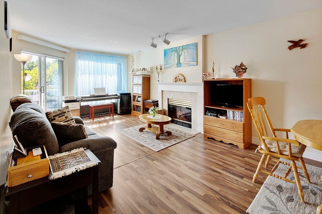 Top-floor comer unit offers two bedrooms and two bathrooms, positioned in the heart of Coquitlam town center. Conveniently walkable to the sky train, shops, restaurants, schools, and recreational facilities. Embrace the beauty of Lafarge Lake and the convenience of nearby coffee shops. This well-maintained two-bedroom comer unit features abundant windows, a well designed kitchen and spacious living room. Enjoy in-suite newer laundry and a cozy gas fireplace. The spacious balcony opens to the quiet side of the building. Includes I secured parking spot, 1 storage locker, and pet-friendly arrangements.