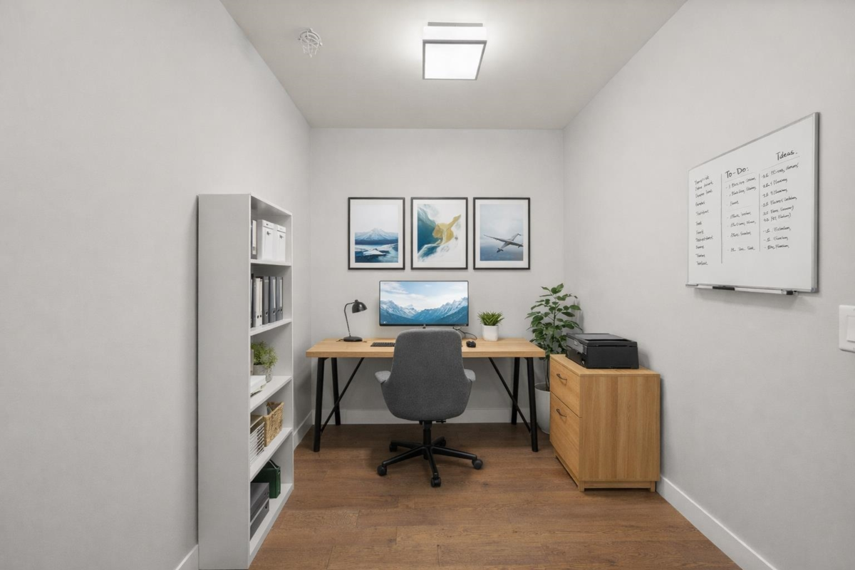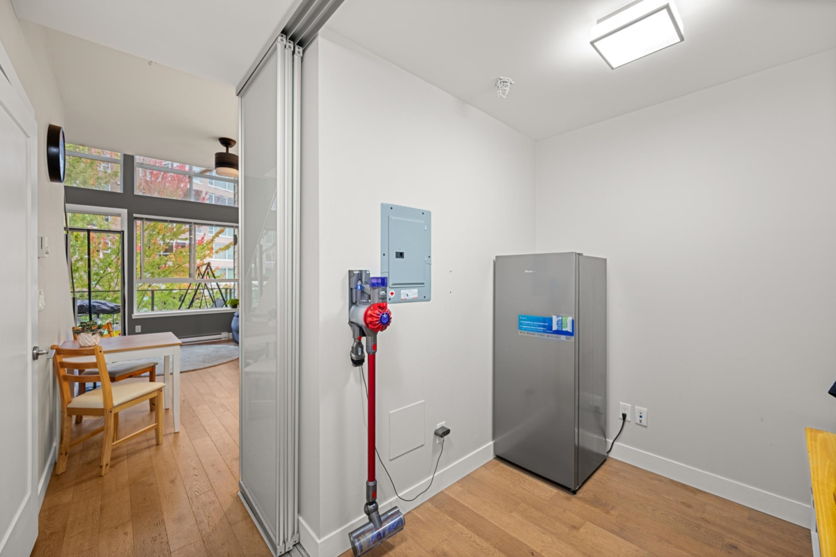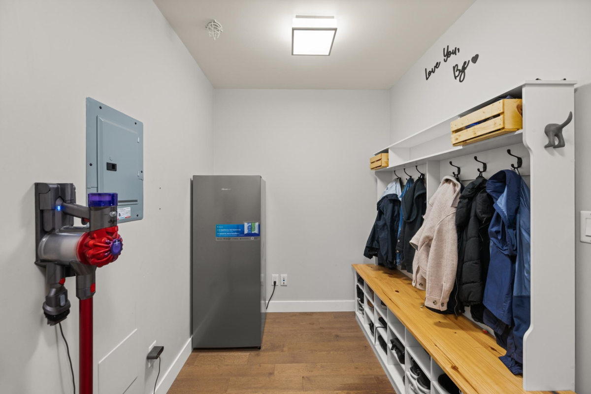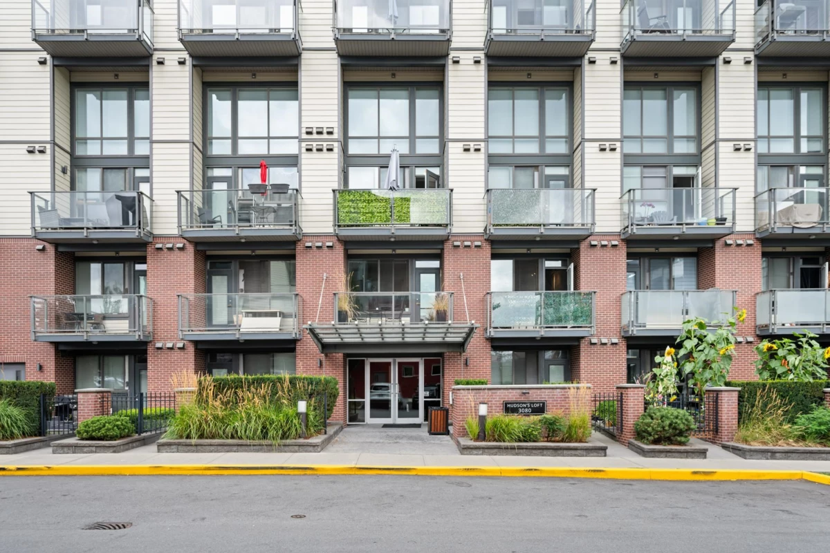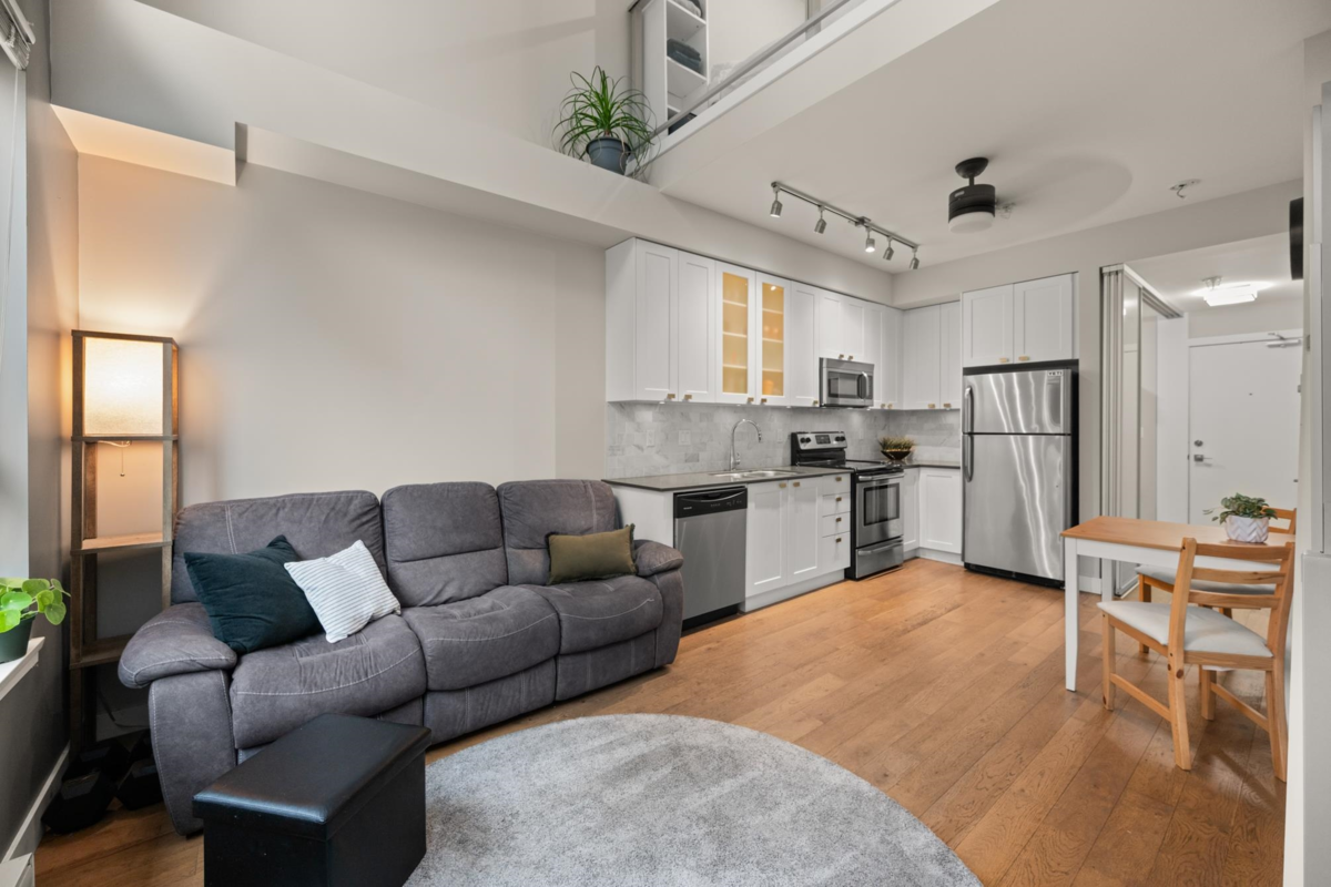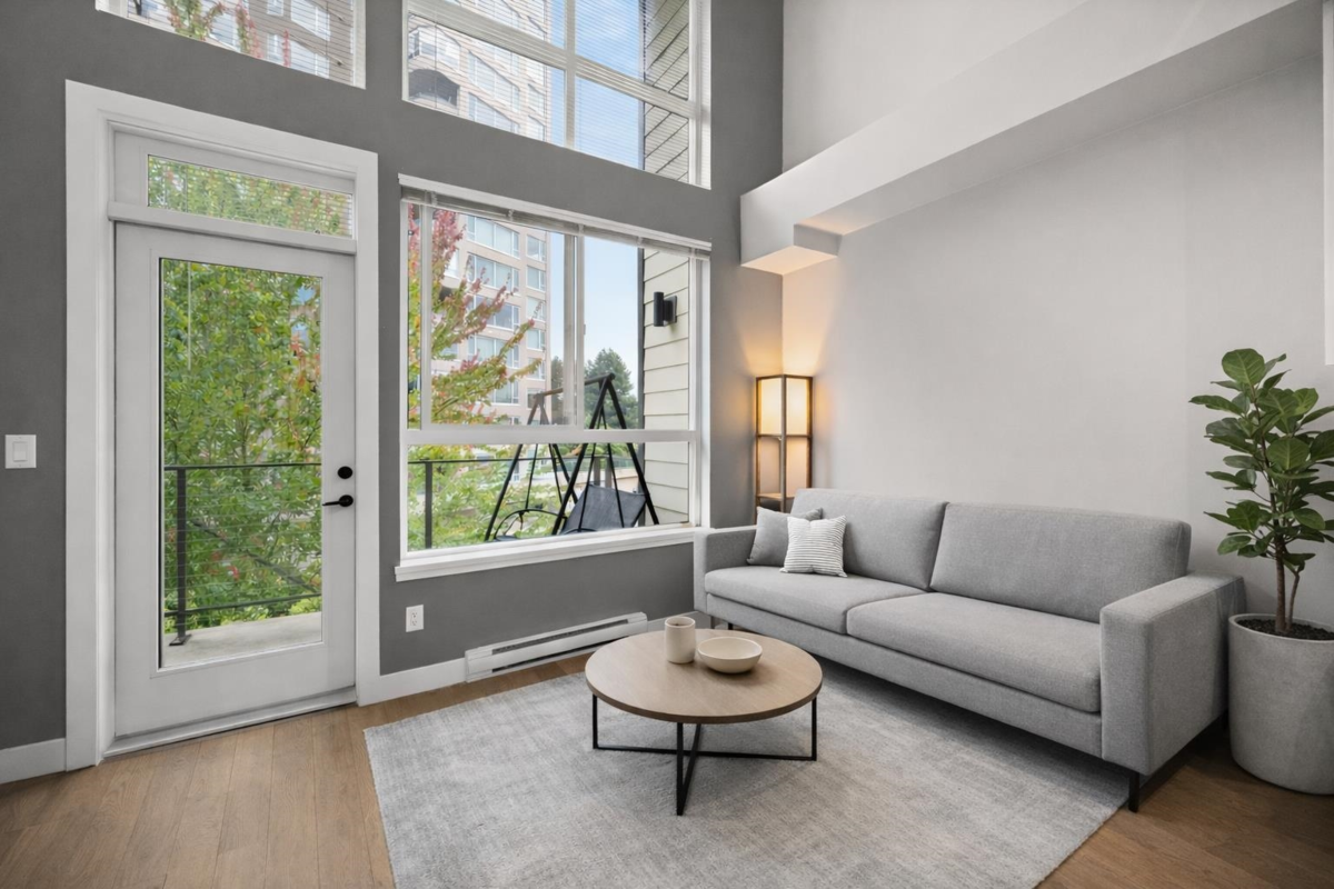 HUDSON'S LOFT in Abbotsford's Central Park Village — where modern design meets community living. This inviting 1 bed + den LOFT offers soaring 18-ft ceilings, stunning north-facing windows, and new flooring upstairs. The open layout blends comfort and style, while the den makes the perfect home office, additional storage or welcoming entryway. You have a conveinent half-bath in the entry and spacious pantry under the stairs. Steps to coffee shops, Trading Post Brewery, Cora's breakfast, every day amenities and trails just steps from your door. Includes 1 parking, 1 storage, and 2 pets allowed, LARGE DOGS & BULLY BREED FRIENDLY! There's even a designated dog park in between the two buildings. Discover your space to live, work, and connect at Hudson’s Loft.