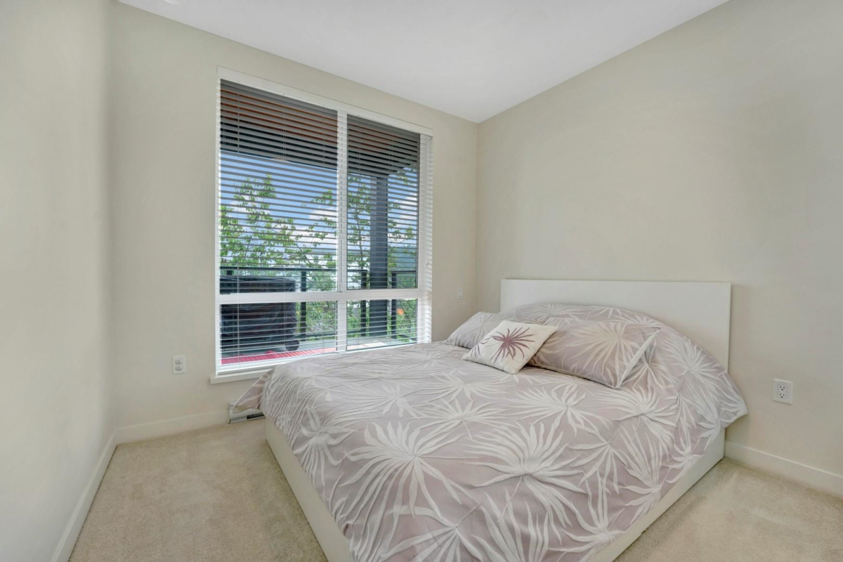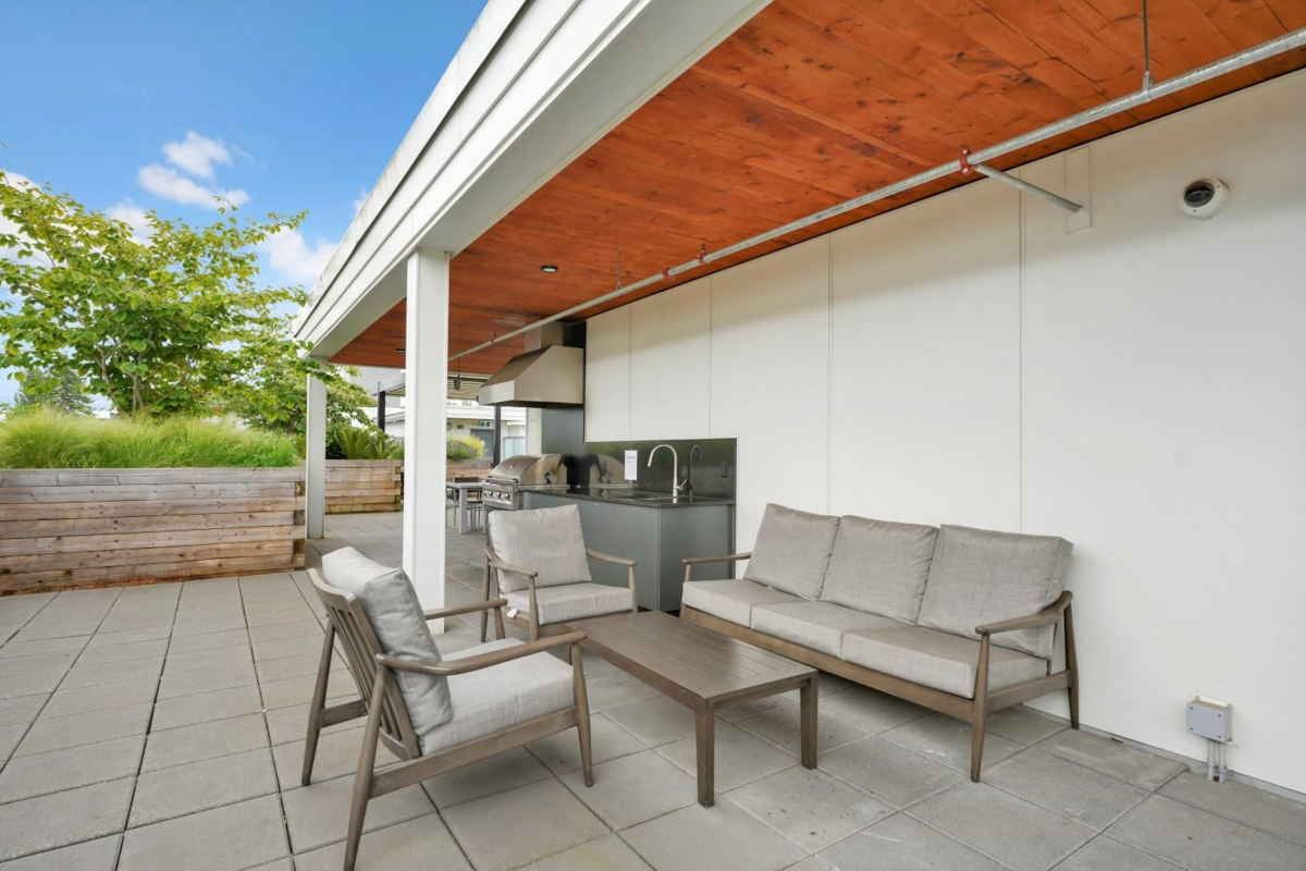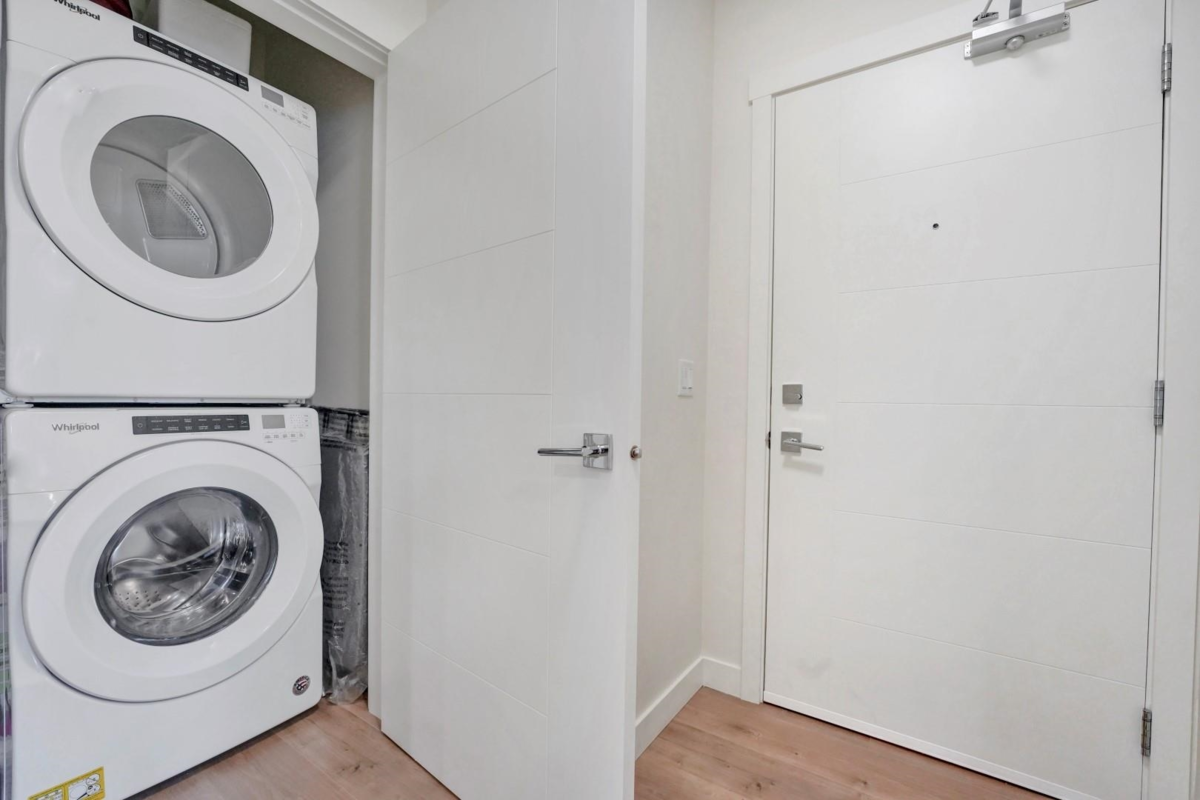 Bright CORNER unit at Duet by Adera, a modern mid-rise in the heart of Burquitlam. This 2-bedroom, 2-bath home features extra windows for abundant natural light, enhanced privacy, and an airy open-concept layout—a great home for upsizers or first-time buyers. Built with innovative CLT construction for improved comfort and sustainability. The sleek kitchen offers quartz countertops, island, premium KitchenAid stainless steel appliances, ample cabinetry, and pantry. Spacious primary bedroom with walk-through closet and ensuite. Enjoy a large private patio ideal for relaxing or entertaining. Amenities include rooftop terrace with BBQ, social lounge, fitness centre, and children’s playground. Steps to Burquitlam SkyTrain, shops, parks, schools, YMCA. Includes 1 parking and 2 storage locker