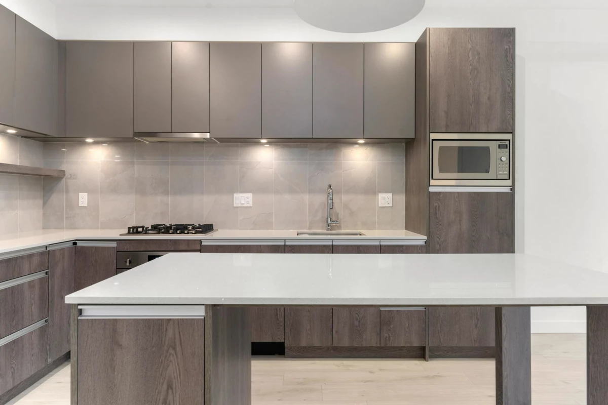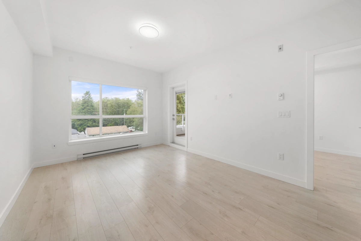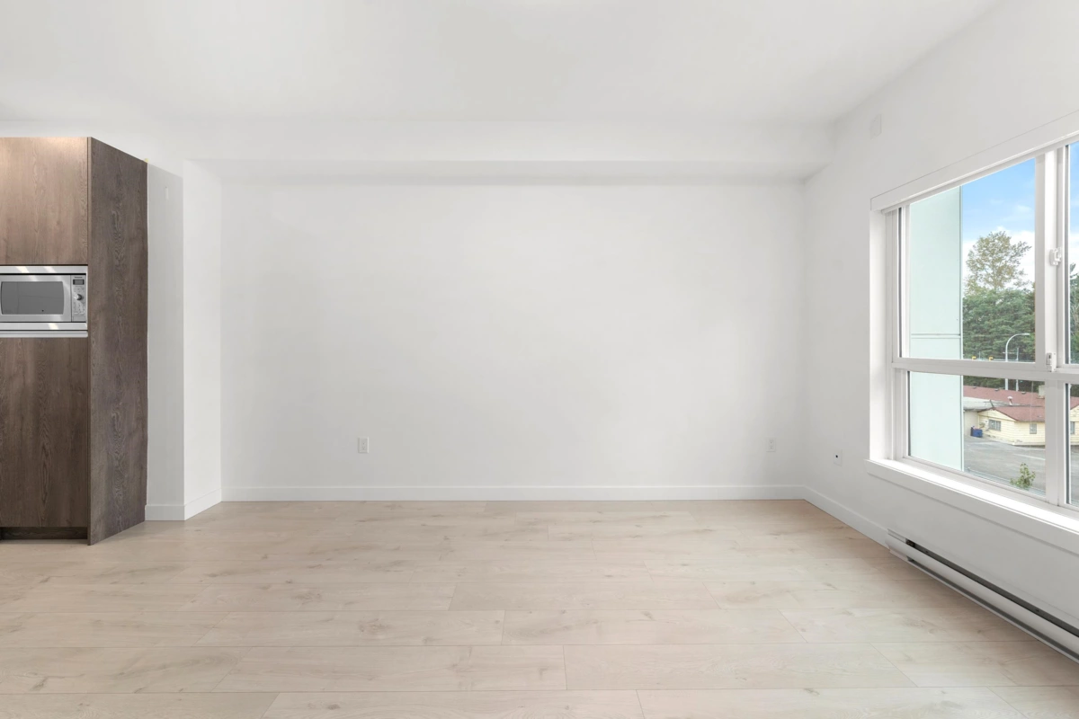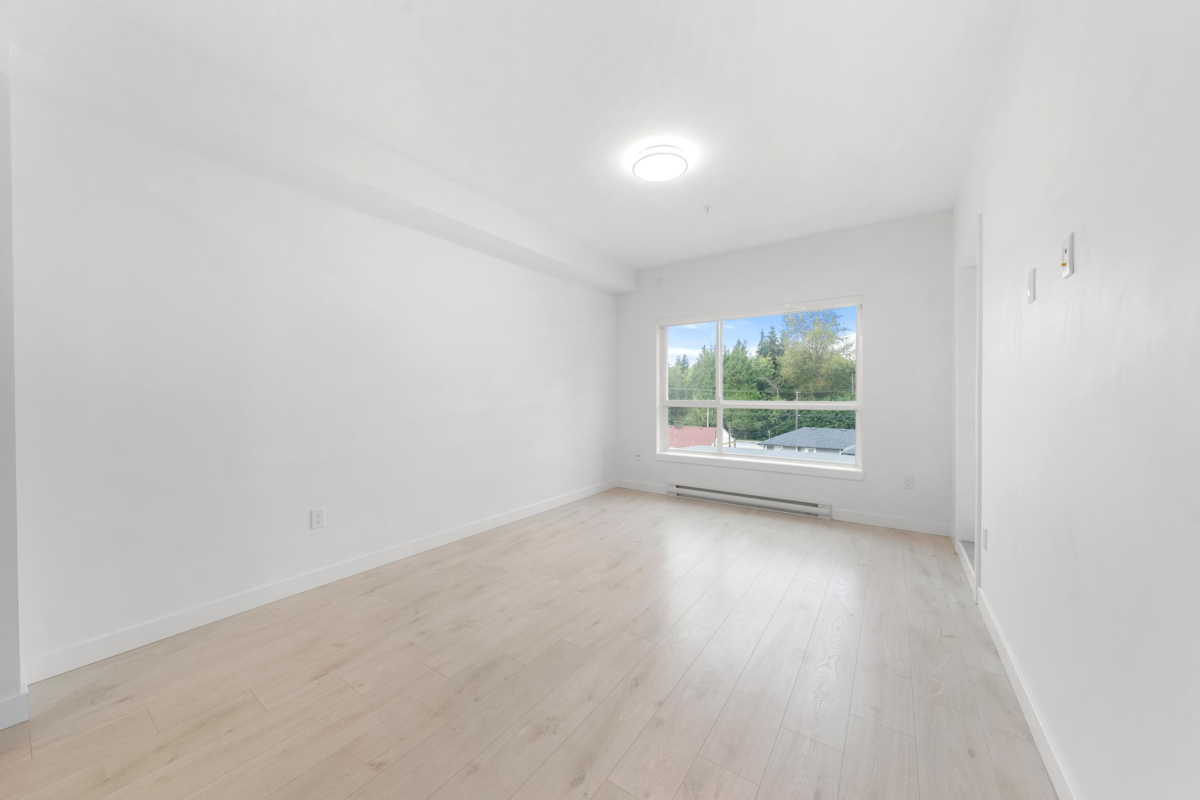 LIKE NEW! Great value at this well appointed 1 bedroom condo. The home features high ceilings, a large kitchen with tons of counter and storage space, stainless steel appliances, and island with a smart built-in dining area. Enjoy a large living room and good sized bedroom with space for a king, large windows and 8'10" ceilings throughout. The balcony is covered, great for year round use. This suite is a semi-end unit, no shared wall on the East side. The suite comes with 1 XL parking stall, 1 storage, and an assigned bike stall. All this located conveniently by Guilford Town Centre and Central City Shopping! Pets and rentals welcome, come view today! Vacant and ready for immediate occupancy!