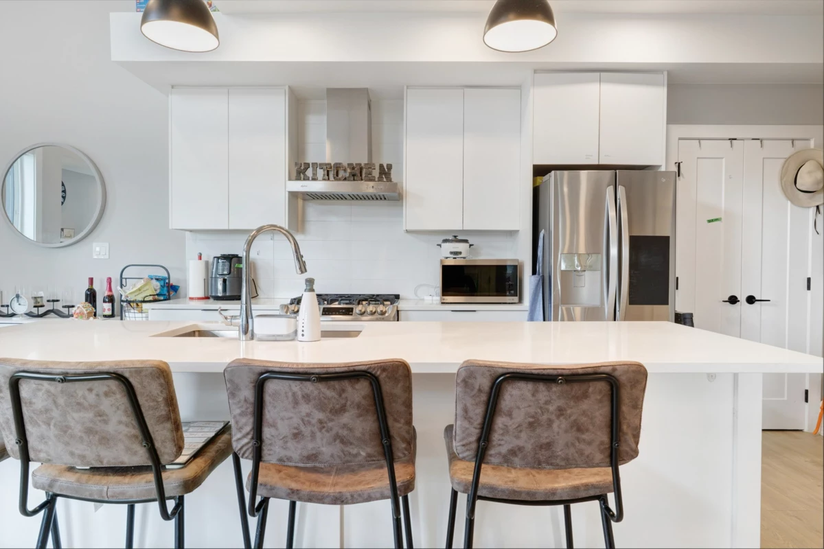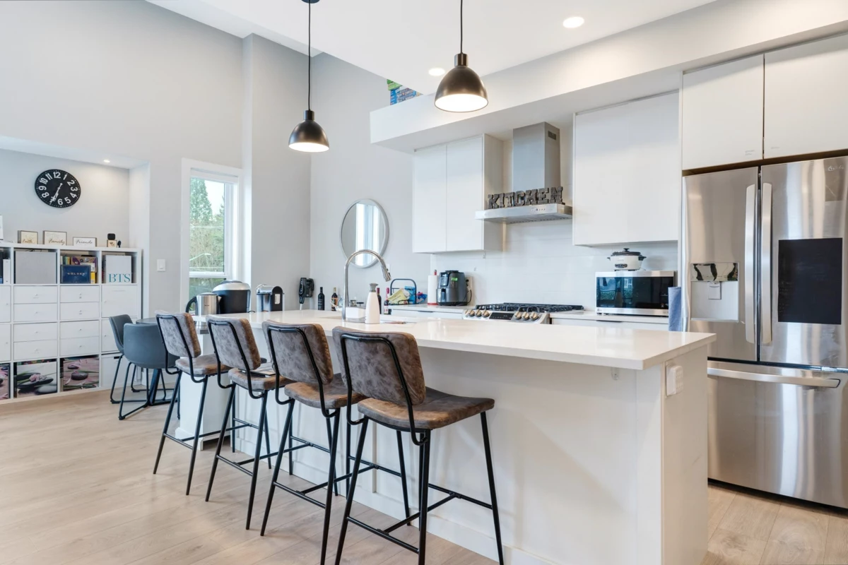 Welcome to Luxe at Sullivan Station! Experience luxury living in your energy-efficient new home. This stunning top-floor corner unit offers 2 large bedrooms, 2 bathrooms, and over 1,000 sq.ft. of bright, open-concept living with high ceilings and elegant finishes. The chef-inspired kitchen boasts s/s Energy Star appliances, a gas range, quartz countertops, and high-gloss cabinetry. The spacious living area features a media wall and opens to a south-facing balcony. The primary bedroom includes a walk-in closet and ensuite with double sinks. Enjoy laminate flooring, air conditioning powered by the Rinnai energy-efficient heating & cooling system, on-demand hot water, and low-emission windows. Includes:2 parking stalls + storage locker. Steps from shopping, dining, and schools!
